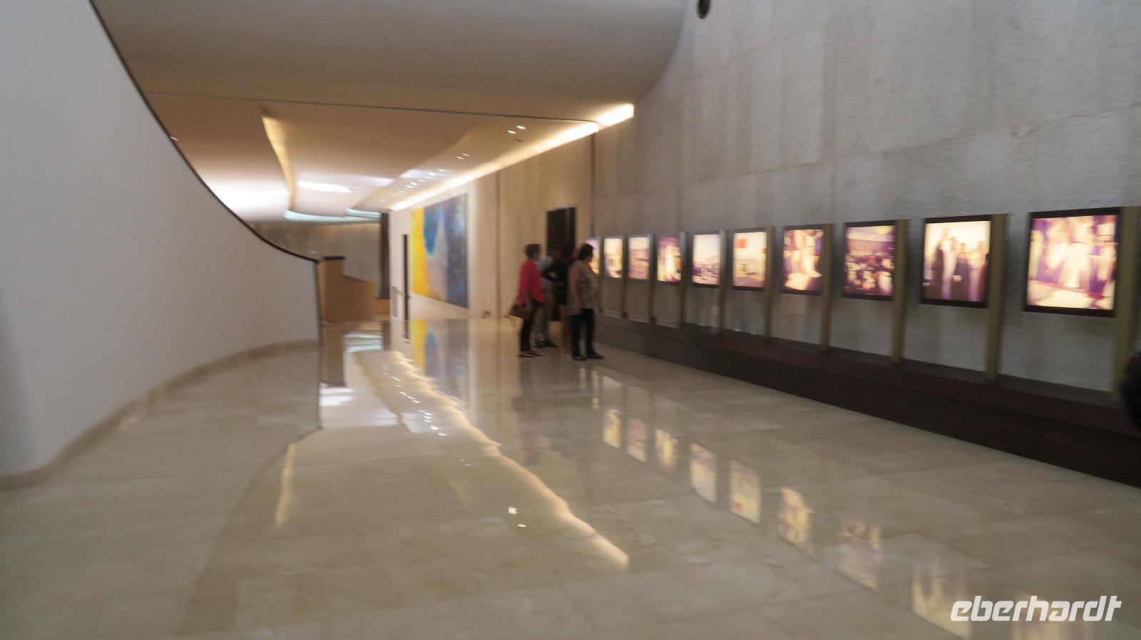 Nach dem Jahreswechsel müssen wir nun endlich erst einmal ausschlafen. Wer möchte, für den steht das Frühstück bereits ab 06:30 Uhr bereit aber wer bitte schön, möchte um dieses Zeit schon etwas essen? Auch für diesen ersten Tag im Jahr 2018 haben wir Freizeit ausgeschrieben und wie ich am Abend erfahre, war auch ein Reisegast im „Frame", DEM neuen Wahrzeichen Dubais, das erst seit heute geöffnet hat. Dies ist ein überdimensionaler Rahmen, in dem sich im unteren Teil ein Museum befindet. Mit einem Lift erreicht man schließlich den oberen Teil des Rahmens und hat von hier eine wunderbare Aussicht auf Dubai. Und ähnlich wie im CN-Tower in Toronto gibt es einen Glasboden, über den man in schwindelerregender Höhe laufen kann.
