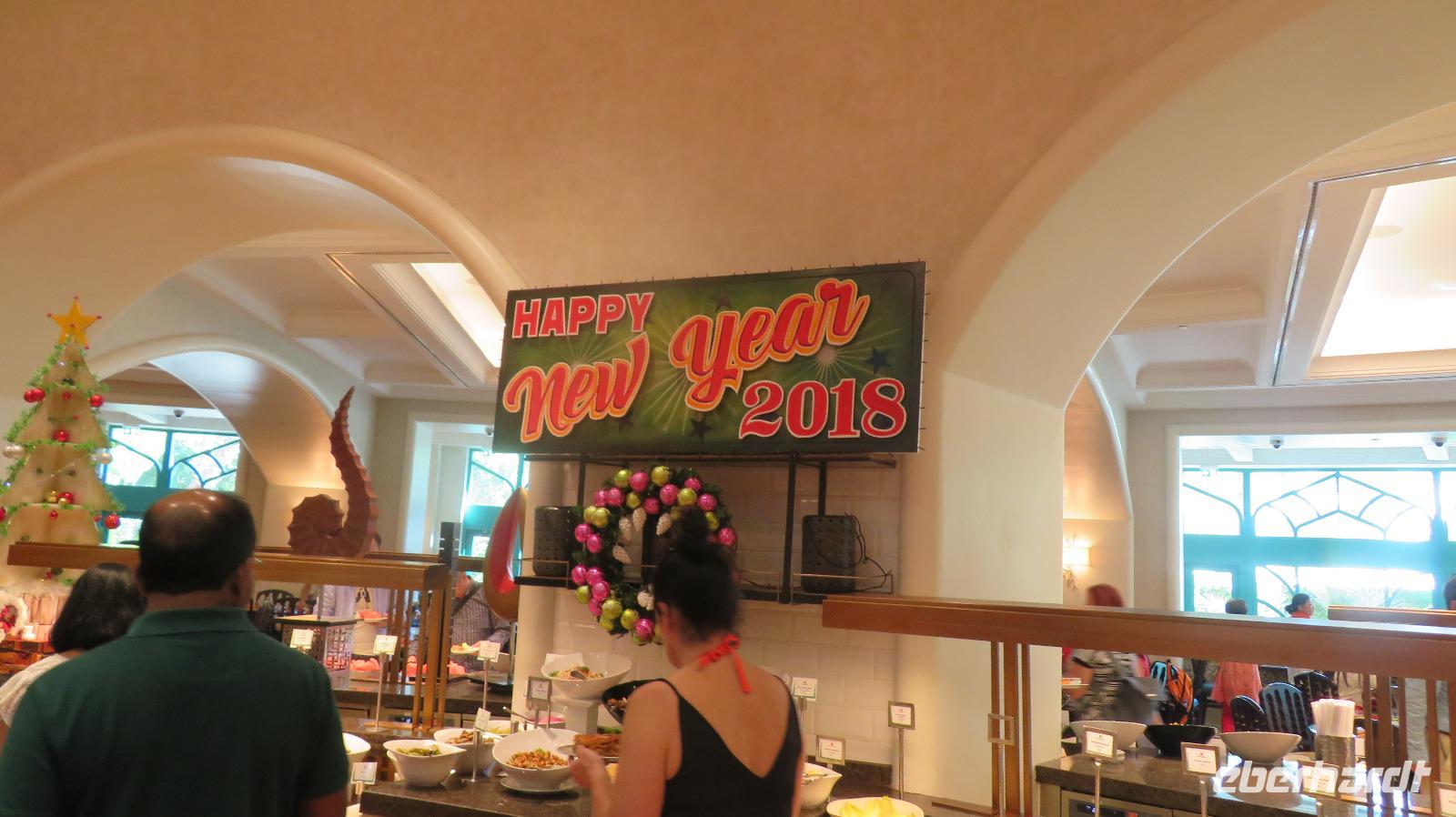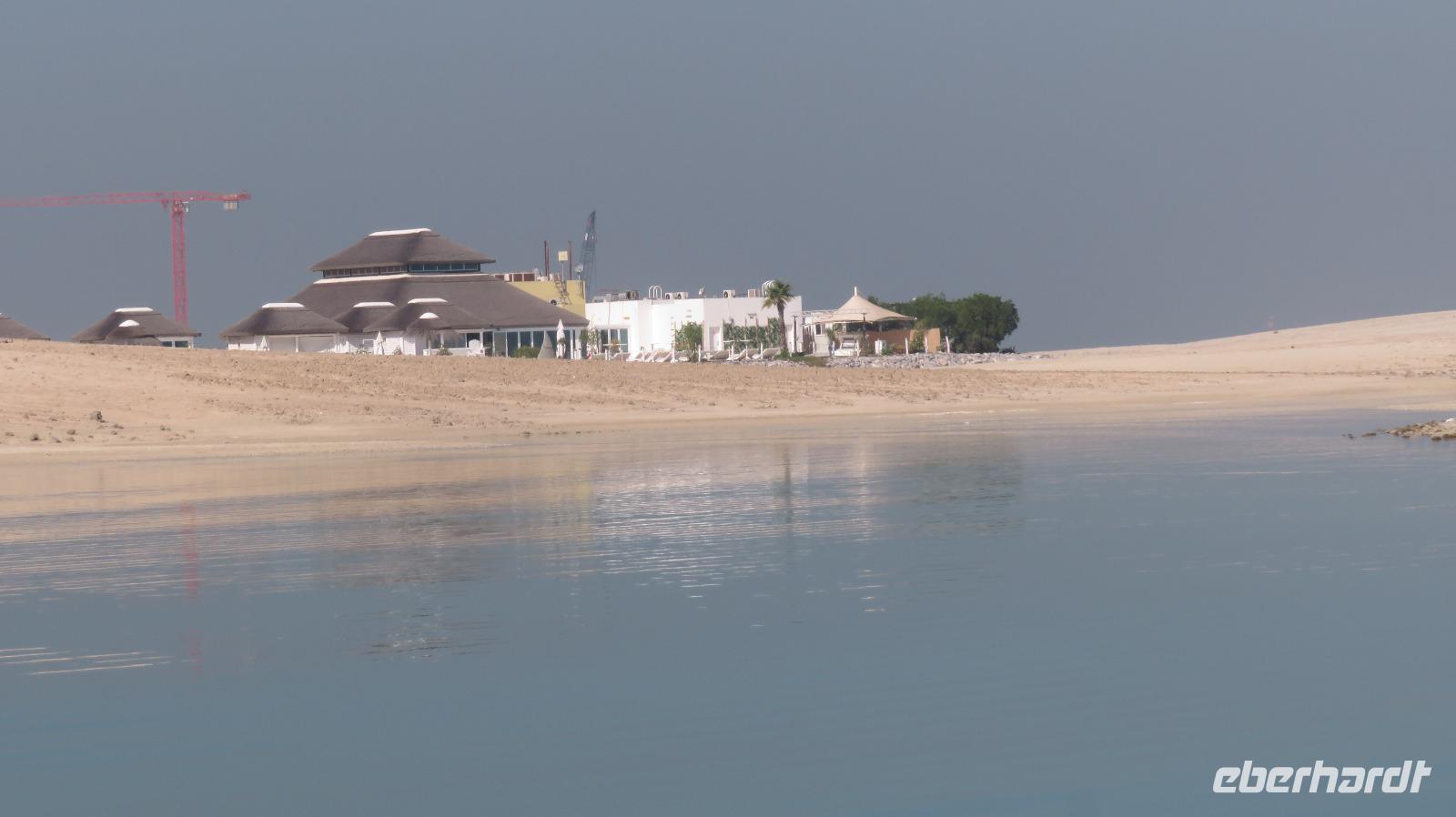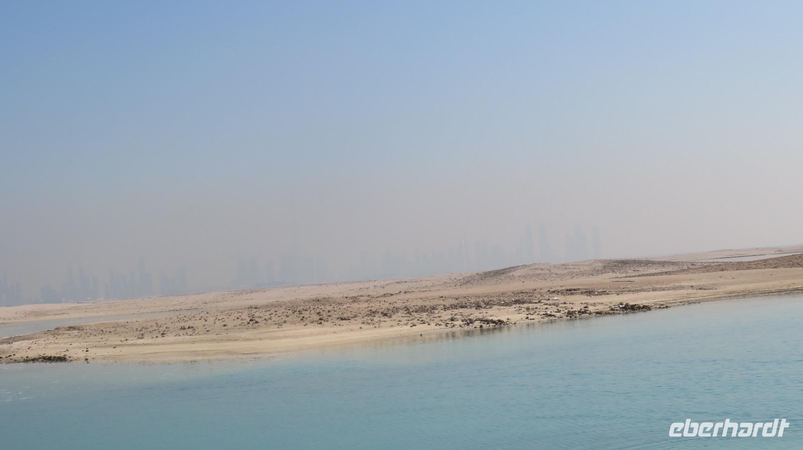 Heute heißt es erst einmal Ruhe und Durchatmen - der erste Tag mit Freizeit steht auf dem Plan. Wem das aber nichts so richtiges ist, kann an dem fakultativen Ausflug nach Lebanon Island teilnehmen, ein Part der neuen Dubai World. Wir treffen uns nach dem Ausschlafen in der Lobby, bepackt mit Badesachen und Pass. Unser Chauffeur und Anja bringen uns zum Hafen, wo uns Anja in die vertrauensvollen Hände des Skippers übergibt. Wir nehmen auf einem Boot Platz. Als dann auch alle anderen Touristen, die an diesem Tag an den privaten Strandclub auf Lebanon Island, an Bord sind, verlassen wir den Hafen. Aber nicht ohne an einem offiziellen Offiziersschiff der V.A.E. zu halten und unsere Pässe dort abzugeben - wie eine offizielle Ausreise aus Dubai. Nun nehmen wir Kurs auf Dubai World und nach rund zwanzigminütiger Fahrt erreichen wir schließlich Lebanon Island und damit den ansässigen privaten Strandclub. Als wir die Insel betreten werden wir erst einmal mit einen alkoholfreien Getränk begrüßt. Im Anschluss zeigt uns der für uns verantwortliche Boy die kleine Inseln, bestehend aus privaten Bungalow, die man mieten kann, Liegestühlen mit Sonnenschirmen und Tischen als auch ein Gebäude, in dem sich eine Bar befindet und wo man Internet empfangen kann. Vor diesem Gebäude befinden sich die Umkleidekabinen und ein Pool. Zwischen den Bungalows gibt es auch ein Volleyballfeld und wer möchte, kann hier auch mit überdimensionalen Figuren Schach spielen - also alles in Allem eine ruhige Oase. Natürlich bekommen wir hier auch Handtücher, die wir nicht extra aus dem Hotel oder sogar von zuhause mitbringen mussten. Wir belegen Liegen, die zusammen stehen und lassen die Sonne auf uns scheinen. Leider ist es bei unserer Ankunft diessig, so dass wir zu diesem Zeitpunkt keinen Blick auf die Dubaier Skyline erhaschen können. Unser Boy bringt uns die Speise- und Getränkekarte und so probieren wir uns an (leider überteuerten) Bier, Mojitos oder Pina Coladas. Nach rund drei Stunden auf der Insel mit schlafen, reden und baden heißt es so langsam wieder, unsere Sachen zusammen zu packen und den Rückweg nach Dubai Stadt anzutreten. Langsam verzieht sich auch der Smog und wir bekommen zum Abschied von Lebanon Island noch unseren gewünschten Blick auf die Stadt. Wir verlassen die Insel und erhalten unsere Pässe zurück. Auf dem Festland wartet bereits unser Bus auf uns, der uns zurück zum Hotel bringt. Nun bleibt uns noch ausreichend Zeit, uns auf den Silvesterabend vorzubereiten, sei es mit ein wenig schlafen, Duschen oder was auch immer. Um 20:00 Uhr treffen wir uns wieder mit der gesamten Gruppe in der Lobby und ich muss sagen, meine Gruppe hat sich für den letzten Abend im Jahr 2017 richtig fein gemacht. Mit dem Bus erreichen wir das Pier 7 in der Dubai Marina. Für uns ist der Platz im oberen Restaurant Atelier M reserviert und so nehmen wir an der langen Tafel auf der Terrasse Platz. Von hier haben wir einen guten Blick auf die Marina und das Treiben Drumherum. Unser Abend ist so gestaltet, das wir ein mehrgängiges Abendessen serviert bekommen, was wirklich sehr köstlich und lecker ist. Zwischendurch sind die Kellner immer wieder aufmerksam und füllen uns unsere Gläser mit Getränken nach unserer Wahl. Wer möchte, kann auch die restauranteigene rooftop-Bar erklimmen, in der zahlreiche junge Menschen auf den Jahreswechsel warten. Aber auch bei uns ist es lustig. Bei Musik und angeregten Gesprächen vergeht die Zeit bis Mitternacht wie im Flug und wir sind gespannt, was uns wohl erwarten wird. Bisher haben sich alle bedeckt gehalten. Die einzige Information, die wir erhielten ist der Ausfall des Feuerwerks am Burj Khalifa - alles andere ist noch top secret. Die Uhr schlägt 24:00 Uhr - herzlich willkommen 2018. Wir warten darauf, ob was passiert aber leider gibt es auch hier in der Marina kein Feuerwerk. Vereinzelt sehen wir durch die Hochhäuser die Feuerfunken des Atlantis-Feuerwerks aber das alles tut unserer Stimmung keinen Abbruch. Wir stoßen mit einem Glas Champagner auf ein gesundes neues Jahr an, dass für den ein oder anderen auch in der Liebe den nächsten Schritt bringen wird;-). Mit Tischfeuerwerk, Musik, Luftballons und feiernden Kellnern haben wir noch eine gute Zeit bis es Zeit wird, zum Bus und somit zum Hotel zurück zu kehren.