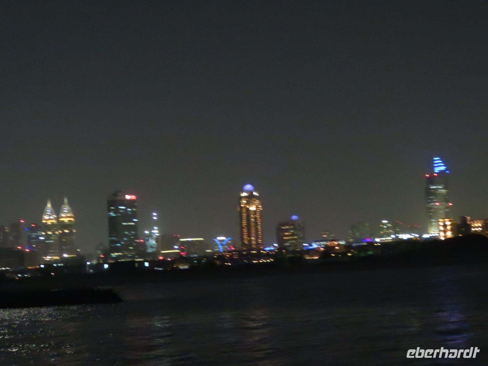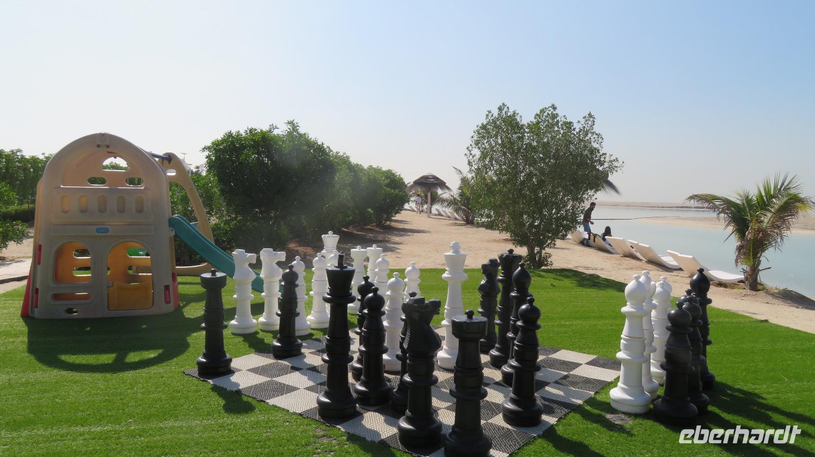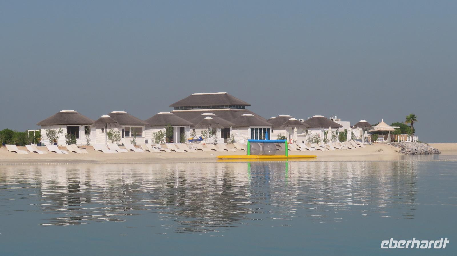 Heute heißt es erst einmal Ruhe und Durchatmen - der erste Tag mit Freizeit steht auf dem Plan. Wem das aber nichts so richtiges ist, kann an dem fakultativen Ausflug nach Lebanon Island teilnehmen, ein Part der neuen Dubai World. Wir treffen uns nach dem Ausschlafen in der Lobby, bepackt mit Badesachen und Pass. Unser Chauffeur und Anja bringen uns zum Hafen, wo uns Anja in die vertrauensvollen Hände des Skippers übergibt. Wir nehmen auf einem Boot Platz. Als dann auch alle anderen Touristen, die an diesem Tag an den privaten Strandclub auf Lebanon Island, an Bord sind, verlassen wir den Hafen. Aber nicht ohne an einem offiziellen Offiziersschiff der V.A.E. zu halten und unsere Pässe dort abzugeben - wie eine offizielle Ausreise aus Dubai. Nun nehmen wir Kurs auf Dubai World und nach rund zwanzigminütiger Fahrt erreichen wir schließlich Lebanon Island und damit den ansässigen privaten Strandclub. Als wir die Insel betreten werden wir erst einmal mit einen alkoholfreien Getränk begrüßt. Im Anschluss zeigt uns der für uns verantwortliche Boy die kleine Inseln, bestehend aus privaten Bungalow, die man mieten kann, Liegestühlen mit Sonnenschirmen und Tischen als auch ein Gebäude, in dem sich eine Bar befindet und wo man Internet empfangen kann. Vor diesem Gebäude befinden sich die Umkleidekabinen und ein Pool. Zwischen den Bungalows gibt es auch ein Volleyballfeld und wer möchte, kann hier auch mit überdimensionalen Figuren Schach spielen - also alles in Allem eine ruhige Oase. Natürlich bekommen wir hier auch Handtücher, die wir nicht extra aus dem Hotel oder sogar von zuhause mitbringen mussten. Wir belegen Liegen, die zusammen stehen und lassen die Sonne auf uns scheinen. Leider ist es bei unserer Ankunft diessig, so dass wir zu diesem Zeitpunkt keinen Blick auf die Dubaier Skyline erhaschen können. Unser Boy bringt uns die Speise- und Getränkekarte und so probieren wir uns an (leider überteuerten) Bier, Mojitos oder Pina Coladas. Nach rund drei Stunden auf der Insel mit schlafen, reden und baden heißt es so langsam wieder, unsere Sachen zusammen zu packen und den Rückweg nach Dubai Stadt anzutreten. Langsam verzieht sich auch der Smog und wir bekommen zum Abschied von Lebanon Island noch unseren gewünschten Blick auf die Stadt. Wir verlassen die Insel und erhalten unsere Pässe zurück. Auf dem Festland wartet bereits unser Bus auf uns, der uns zurück zum Hotel bringt. Nun bleibt uns noch ausreichend Zeit, uns auf den Silvesterabend vorzubereiten, sei es mit ein wenig schlafen, Duschen oder was auch immer. Um 20:00 Uhr treffen wir uns wieder mit der gesamten Gruppe in der Lobby und ich muss sagen, meine Gruppe hat sich für den letzten Abend im Jahr 2017 richtig fein gemacht. Mit dem Bus erreichen wir das Pier 7 in der Dubai Marina. Für uns ist der Platz im oberen Restaurant Atelier M reserviert und so nehmen wir an der langen Tafel auf der Terrasse Platz. Von hier haben wir einen guten Blick auf die Marina und das Treiben Drumherum. Unser Abend ist so gestaltet, das wir ein mehrgängiges Abendessen serviert bekommen, was wirklich sehr köstlich und lecker ist. Zwischendurch sind die Kellner immer wieder aufmerksam und füllen uns unsere Gläser mit Getränken nach unserer Wahl. Wer möchte, kann auch die restauranteigene rooftop-Bar erklimmen, in der zahlreiche junge Menschen auf den Jahreswechsel warten. Aber auch bei uns ist es lustig. Bei Musik und angeregten Gesprächen vergeht die Zeit bis Mitternacht wie im Flug und wir sind gespannt, was uns wohl erwarten wird. Bisher haben sich alle bedeckt gehalten. Die einzige Information, die wir erhielten ist der Ausfall des Feuerwerks am Burj Khalifa - alles andere ist noch top secret. Die Uhr schlägt 24:00 Uhr - herzlich willkommen 2018. Wir warten darauf, ob was passiert aber leider gibt es auch hier in der Marina kein Feuerwerk. Vereinzelt sehen wir durch die Hochhäuser die Feuerfunken des Atlantis-Feuerwerks aber das alles tut unserer Stimmung keinen Abbruch. Wir stoßen mit einem Glas Champagner auf ein gesundes neues Jahr an, dass für den ein oder anderen auch in der Liebe den nächsten Schritt bringen wird;-). Mit Tischfeuerwerk, Musik, Luftballons und feiernden Kellnern haben wir noch eine gute Zeit bis es Zeit wird, zum Bus und somit zum Hotel zurück zu kehren.