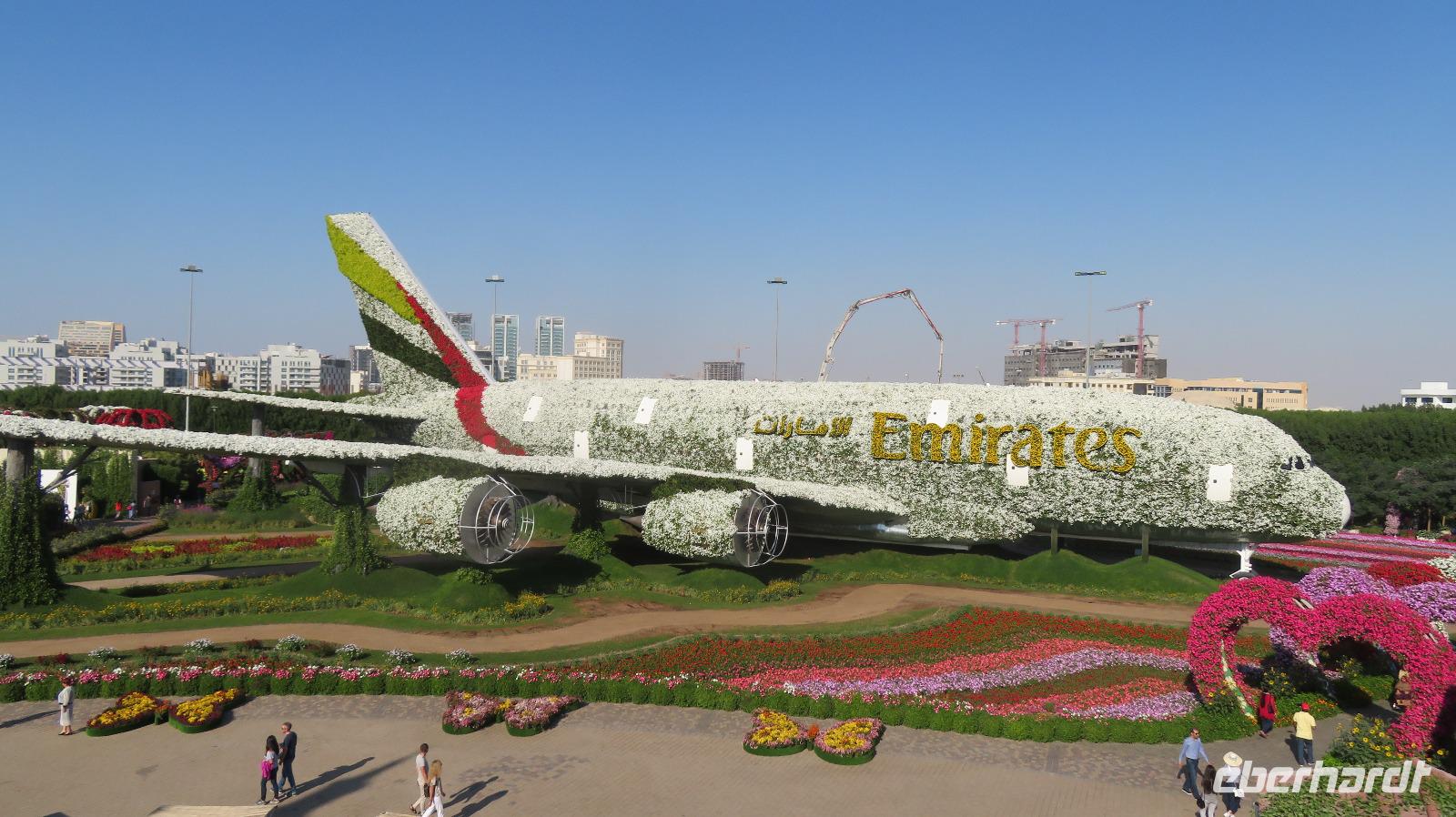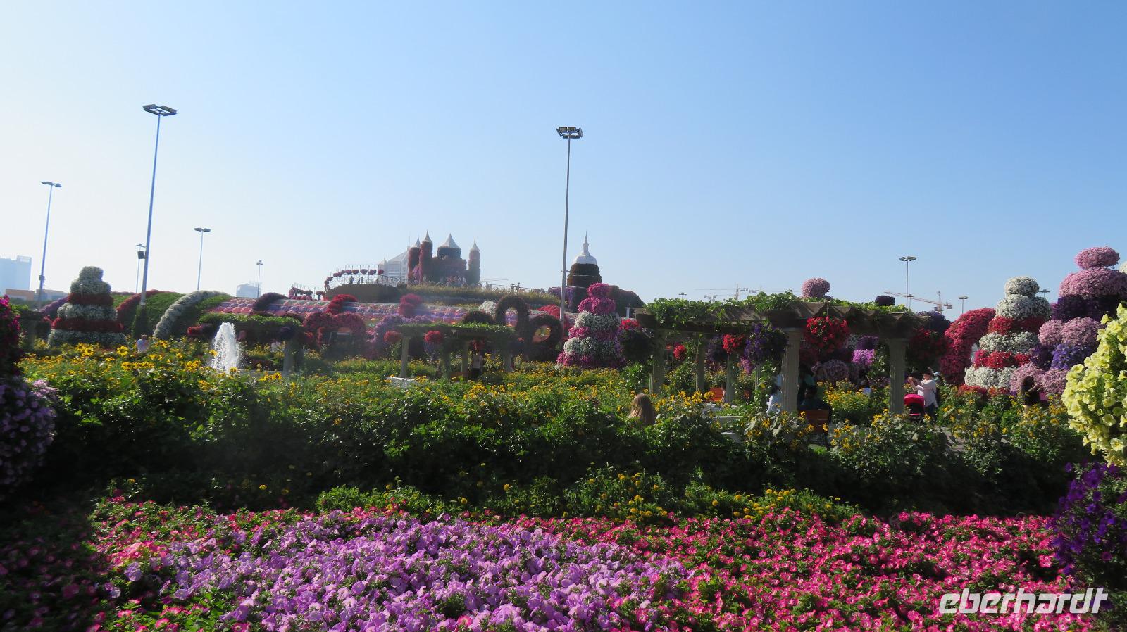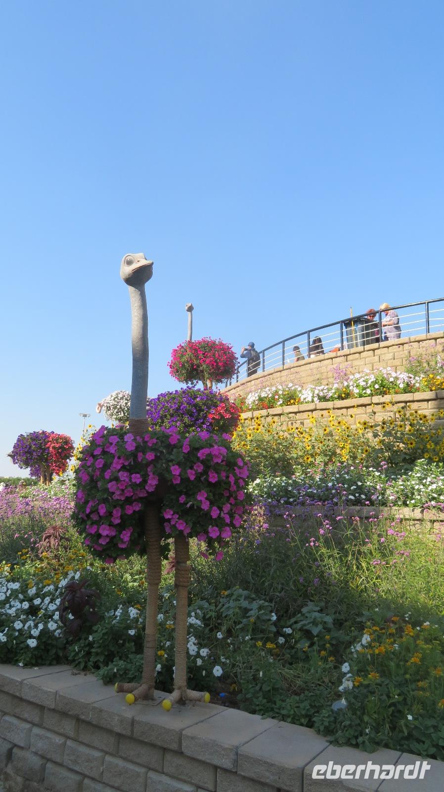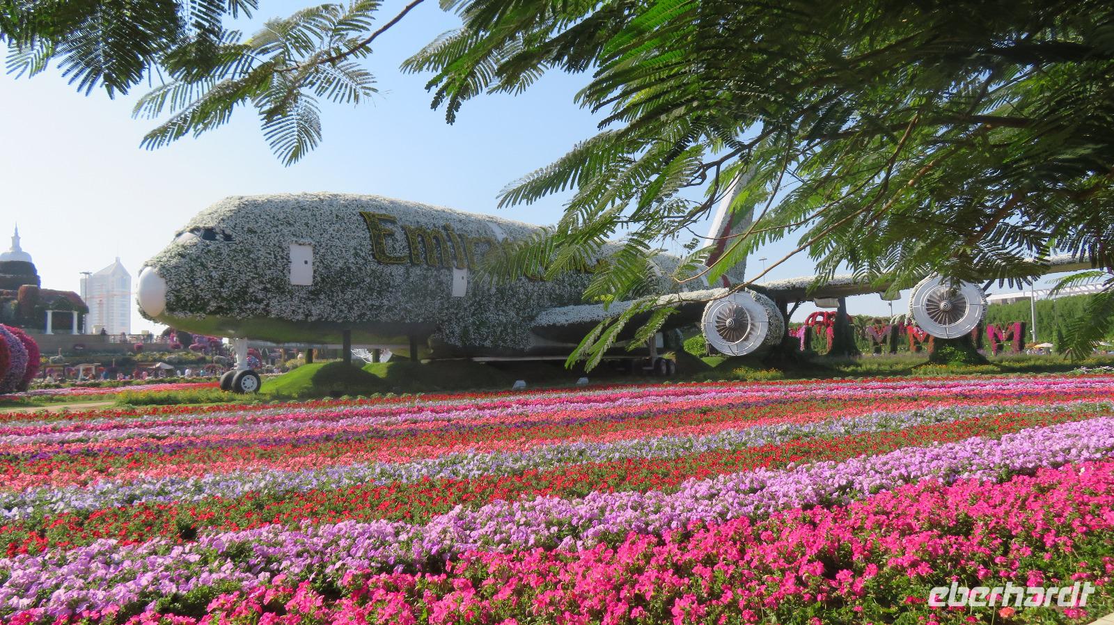Auf dem heutigen Programm steht Freizeit. Wer möchte, kann sich mir am heutigen Vormittag noch einmal zu einem Besuch in der Dubai Mall anschließen, um vielleicht das ein oder andere Schnäppchen beim Shopping-Festival zu machen oder ganz einfach noch ein Souvenir oder Andenken zu kaufen. 6 Gäste meiner Reisegruppe schließen sich mir an und so fahren wir gemeinsam mit der Metro (die Station befindet sich direkt gegenüber von unserem Hotel) die sechs Stationen bis zur Dubai Mall. Die Sonne lacht und der Himmel ist blau. Dennoch erreichen wir die Mall nur über einen klimatisierten Gang, der sich gefühlt auf einen Kilometer erstreckt. Wir müssen darüber erst einmal herzlich lachen, als wir nach rund zehn bis fünfzehn Minuten Fußmarsch die ersten Läden der Mall erreichen. Hier trennen sich dann weitestgehend unsere Wege, da ja doch jeder andere Shoppinginteresse verfolgt. Da ich ein Tagesticket für die Metro gekauft habe, kann dann jeder Gast zu jeder Zeit mit unterschiedlichem Ziel (Hotel, Mall of the Emirates) aufbrechen. Als ich so mitten im Souvenirladen stehe, klingelt mein Handy. Leider muss ich erfahren, dass der Helikopter-Rundflug, den vier meiner Gäste gebucht haben, ausfällt. Der Grund ist eine Graduation-Feier der Polizei, zu der auch der Scheich höchstpersönlich erwartet wird. Leider wurde diese Information nicht vorher veröffentlich. Es tut mir so leid für meine vier lieben Gäste, dass wir Ihnen diesen Wunsch nicht realisieren konnten. Dafür hat sich ein anderer Reisegast seinen großen Geburtstagswunsch erfüllt und erlebte einen Tandem-Sprung in der Wüste. Seine leuchtenden Augen bei der Erzählung vom Sprung werde ich so schnell nicht vergessen. Oli, Du hast richtig glücklich gewirkt mit Deinem ganzen Adrenalin im Blut;-) Aber nun zurück zur Mall. Wir verlassen diese mit dem Ziel, zurück zum Hotel zu fahren, denn für den Nachmittag habe ich noch dem gemeinsamen Besuch des Miracle Garden angeboten, zu dem mich fünf Gäste begleiten. Aufgeteilt in zwei Taxen fahren wir in rund 20 Minuten zu dieser wundervollen Attraktion. Auf einem großen Areal haben sich die Emirates hier blumen- und blütentechnisch voll ausgetobt: sei es ein riesengroßer Teddy aus Pflanzen, ein Flieger der Airline Emirates, bunte Häuser und Vögel - alles ist wunderhübsch angelegt und man muss unbedingt auf die Details achten. Besonders beeindruckend für mich war eine angepflanzte Uhr, die wirklich die tatsächliche Uhrzeit anzeigt. Keine Ahnung, wie das funktioniert aber es ist auf jeden Fall beeindruckend. Zurück im Hotel heißt es dann leider Kofferpacken, den unsere Zeit hier in Dubai neigt sich langsam dem Ende zu. Jedoch können wir nicht abreisen, ohne ein letztes Highlight zu erleben. Wir fahren gemeinsam mit der Metro noch einmal in die Dubai Marina. Nach unserem letzten Abendessen unter orientalischer Sonne (und später unter dem Mond) chartern wir eine Privat-Yacht, nur für unsere Eberhardt-Gruppe. Wir machen es uns im Inneren der Yacht oder auf dem Oberdeck, je nach Belieben, gemütlich und shippern vorbei an den beleuchteten Hochhäusern der Marina in Richtung Palme. Begleitet von passender Musik (vielen Dank an dieser Stelle an den lieben Feri) lassen wir die Impressionen der Metropole noch einmal auf uns wirken. Ich freue mich sehr, dass dieser Ausflug bei allen meinen Gästen super ankam und sie diese Bootsfahrt zum Ende der Reise noch einmal ausdrücklich gelobt haben. Zurück im Hotel heißt es dann zum ersten Mal Abschied nehmen. Unsere Gäste aus der Schweiz haben einen späteren Rückflug und können so noch einmal die Annehmlichkeit eines gemütlichen Bettes nutzen. Wir anderen checken gg. 23 Uhr im Hotel aus und fahren zum Flughafen von Dubai, wo wir uns letztendlich auch von unserem Chauffeur und Anja verabschieden (müssen).