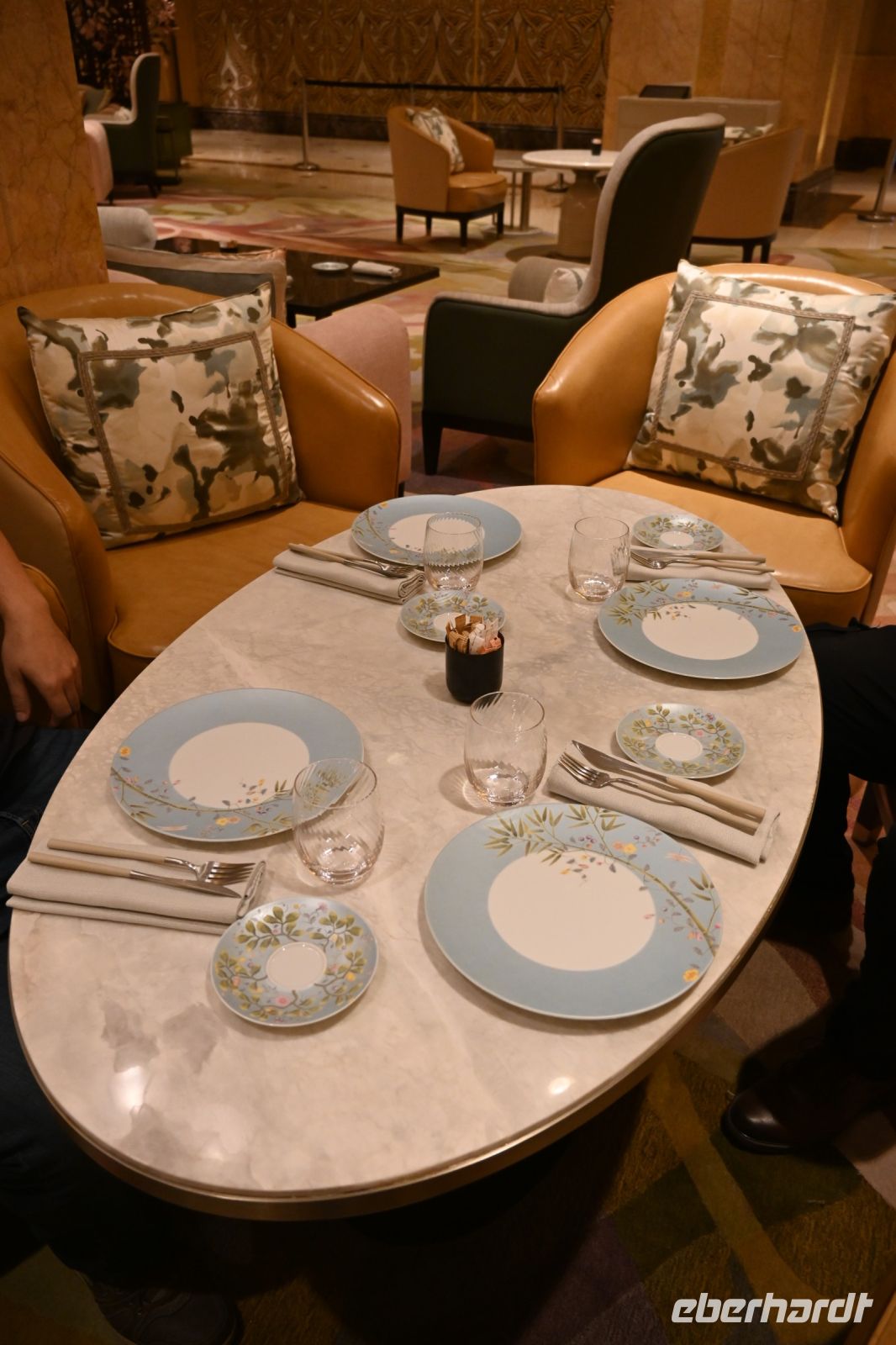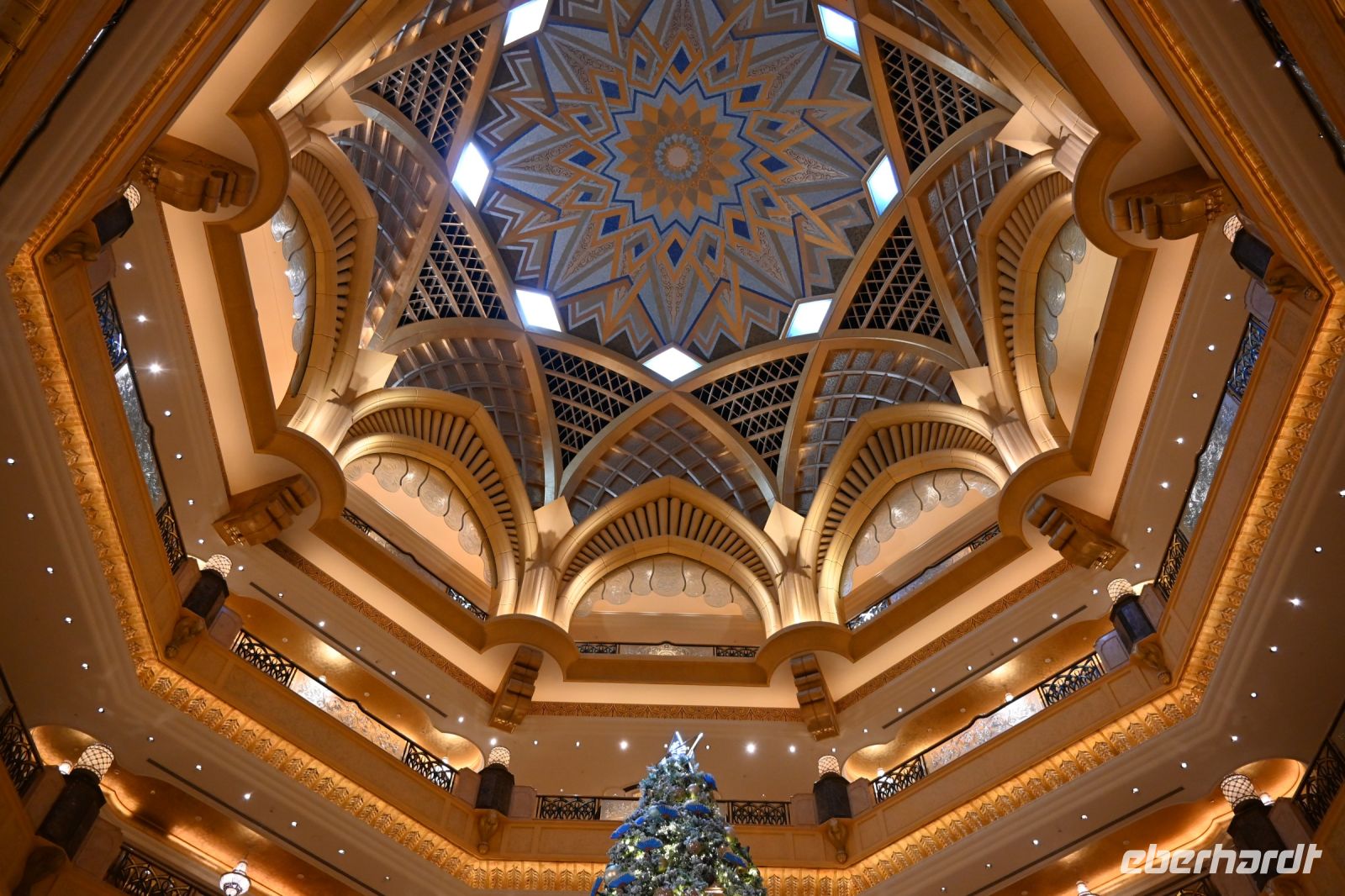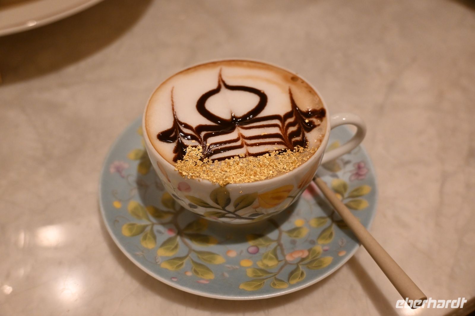 Weiter geht es durch die Stadt, entlang der acht Kilometer langen Corniche, der Promenade, bis zum 5-Sterne Hotel Emirates Palace. Prunkvoll erhebt sich die vergoldete Lobby des Hotels unseren Termin haben wir im Restaurant des Hotels. Hier werden wir zur Tee-Stunde erwartet. Wir bekommen Tee, Häppchen und einen mit Goldstaub verfeinerten Cappuccino. Da fühlt man sich richtig verwöhnt.