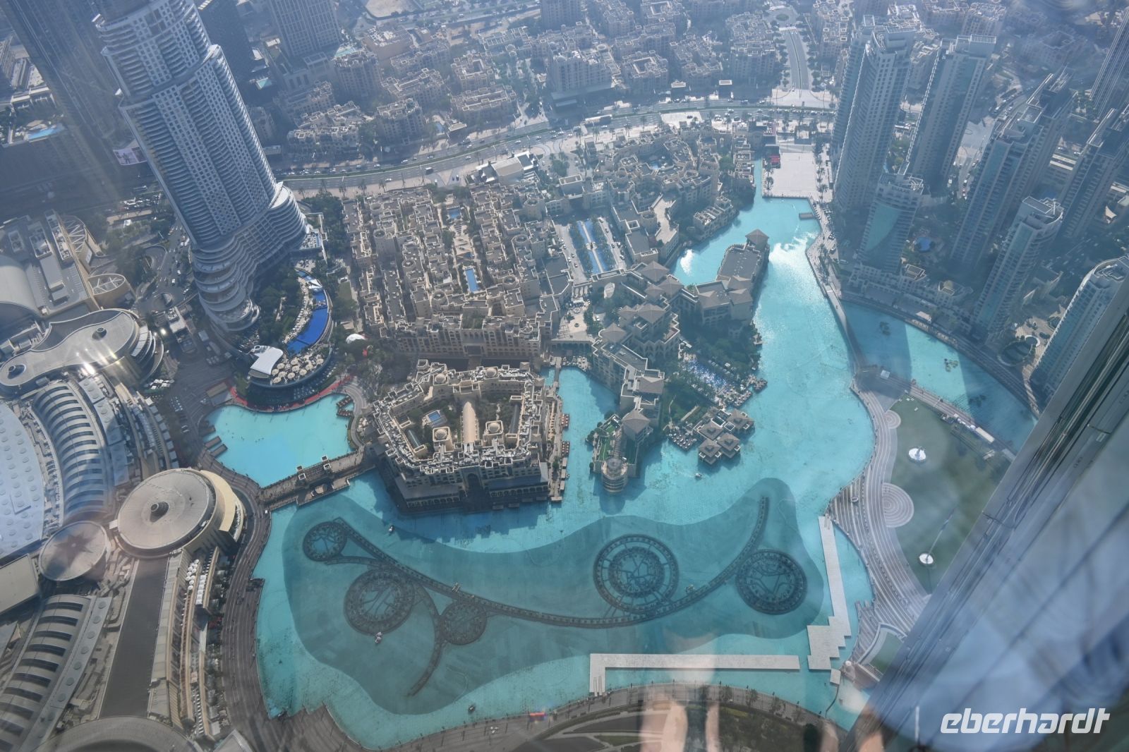 Nach dem Frühstück starten wir mit dem Bus von unserem Hotel, am Dubai Creek in der Altstadt, in Richtung Downtown. Hier hat sich in den letzten 15 Jahren viel verändert. Die Dubai Mall und der Burj Khalifa bilden das Herzstück dieses, mit Wolkenkratzern gesäumten, Stadtteils. Hier heißt es wirklich höher, größer, schöner! In der noch fast leeren Dubai Mall machen wir einen ersten Spaziergang. Mit ihrem 1.200 Geschäften ist sie seit 2008 das größte Einkaufszentrum der Welt. Auf den ersten Blick kann man das gar nicht glauben, doch sieht man die vielen verzweigten Gänge, ändert sich die Meinung schnell. Jetzt wollen wir hoch hinaus! Im Untergeschoss versteckt sich auch der Eingang zum höchsten Gebäude der Welt - dem Burj Khalifa. Nach 1,5 Stunden Anstehen, erreichen wir endlich den Fahrstuhl, der uns innerhalb von 60 Sekunden auf 452 Metern bringt. Hier befindet sich auf der 124. und 125. Etage die Aussichtsplattform. Insgesamt wurde der Turm auf eine Höhe von 828 Metern gebaut und 2010 eröffnet. Wem die Aussichtsplattform nicht reicht, hier gibt es auch ein Hotel, Büroräume und auch Wohnungen und wer schwindelfrei ist, kann dann auch den Pool auf der 70. Etage ausprobieren. Der Nebel hat sich zum Glück verzogen und so haben wir einen tollen Ausblick auf einen Teil dieser riesigen Stadt.