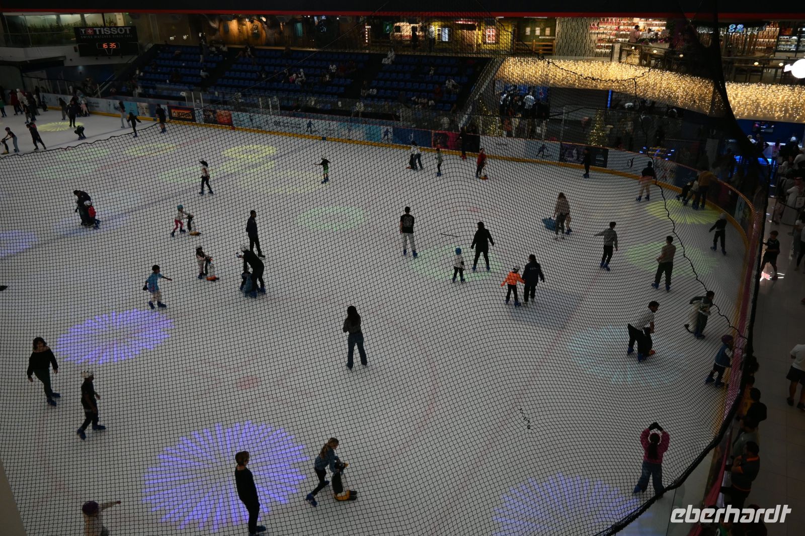 Über die sechsspurige Autobahn geht es zu unserem nächsten Stopp an der Mall of Emirates. Hier haben sich die Emirates etwas Besonderes ausgedacht und eine 400 Meter lange Skipiste in einer auf -4°C gekühlte Halle gebaut. Davon mag jeder halten, was er mag. Zu unserem Überraschen herrschte in der Halle ein reges Treiben.
