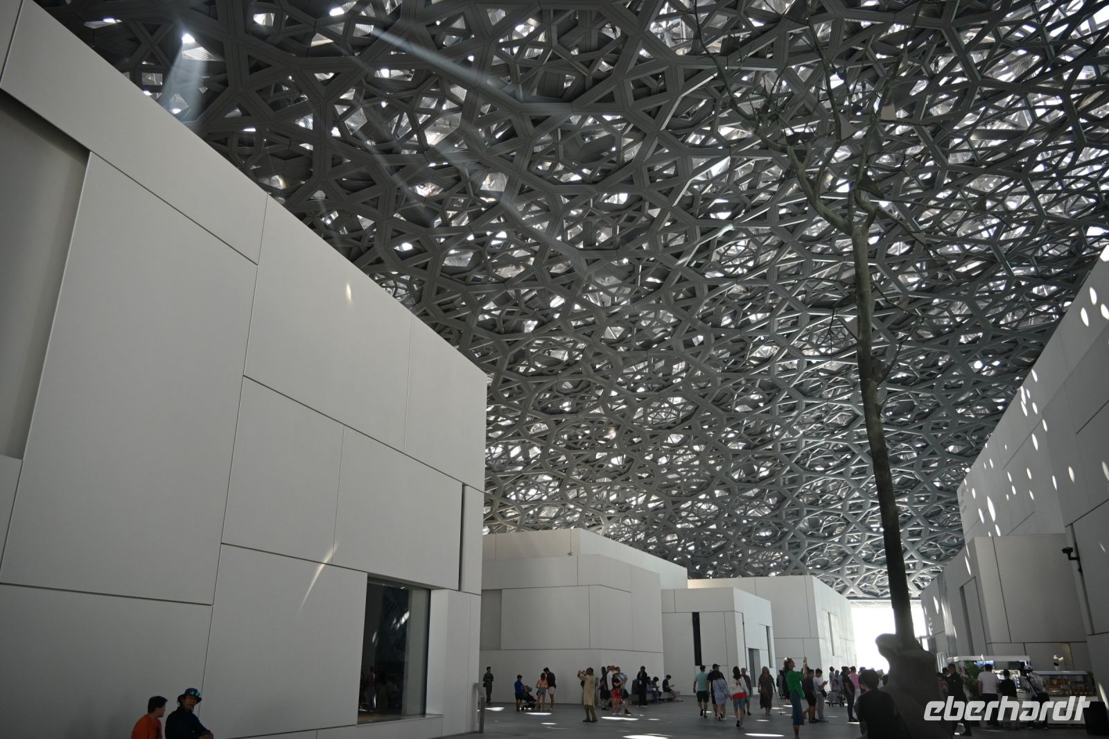 Obwohl Dubai sehr viel zu bieten hat und wir die Woche, allein in dieser Stadt, füllen können, steht heute ein Ausflug ins nahegelegende Abu Dhabi an. Mitten durch die Stadt und immer gerade aus, entlang der Autobahn, erreichen wir nach circa zwei Stunden die Hauptstadt der Vereinigten Arabischen Emirate. Knapp 1,2 Millionen Menschen leben hier, damit ist die Stadt deutlich kleiner als Dubai. Auch gibt es kein richtiges Zentrum. Abu Dhabi besteht aus circa 200 natürlichen Inseln und jeder Platz wird genutzt. Über Yasmin Island fahren wir in die Stadt ein. Diese Insel hat sich über die letzten Jahre zur Vergnügungsinsel entwickelt. Ihr findet man die Formel 1 Rennstrecke, einen Rutschenpark, die Warner Brothers Studios, erst vor Kurzem kam Sea World dazu. Hier gibt es also jede Menge zu entdecken, Nervenkitzel und schnelle Autos. Auf der Insel Saadiyat - der „Insel des Glücks“ entsteht das Kulturzentrum. Aktuell gibt es noch viele Baustellen, es sollen ein Guggenheim Museum, das Sheik Zayed Nationalmuseum, ein Museum für Peforming Arts und verschiedene Hotels entstehen. Bereits seit 2017 fertig ist das Louvre Museum. Der Name wurde für viel Geld gekauft. Die verschiedenen Räume führen die Besucher durch die Geschichte der Menschheit und man bekommt verschiedene Exponate der Geschichte und Kunst zu sehen. Ebenfalls spannend ist die Architektur. Im Hof des Museums fällt das Licht eindrucksvoll durch das Teils offene Dach.
