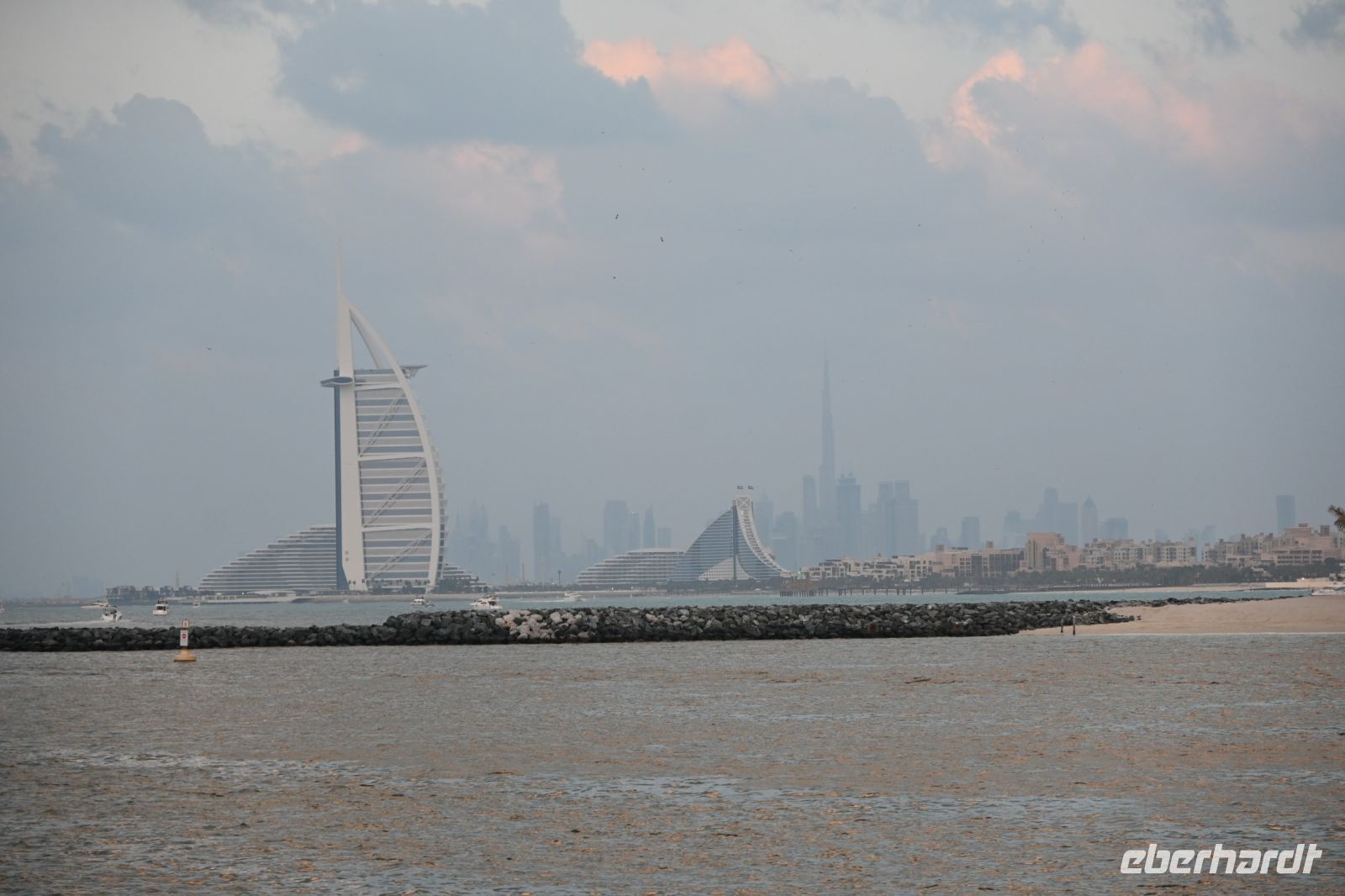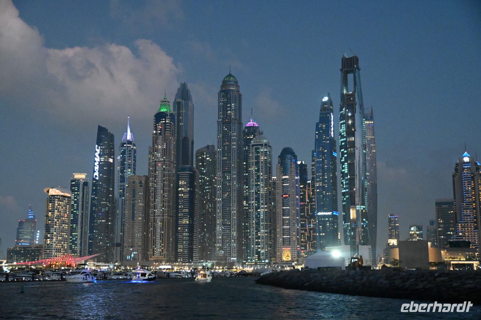 Wer möchte, nutzt den Vormittag und erlebt mit mir eine Fahrt mit der Metro, einmal quer durch die Stadt. Unser Ziel ist die Dubai Marina. Einmal um die künstlich angelegte Hafenanlage führt ein Fußgängerweg. Umsäumt mit vielen Wolkenkratzer bietet dieser Teil der Stadt ebenso eine atemberaubende Kulisse. Gleich in der Nähe ist der bekannte Jumeirah Beach, mit vielen Hotels und Touristen, die hier ihren Urlaub genießen.