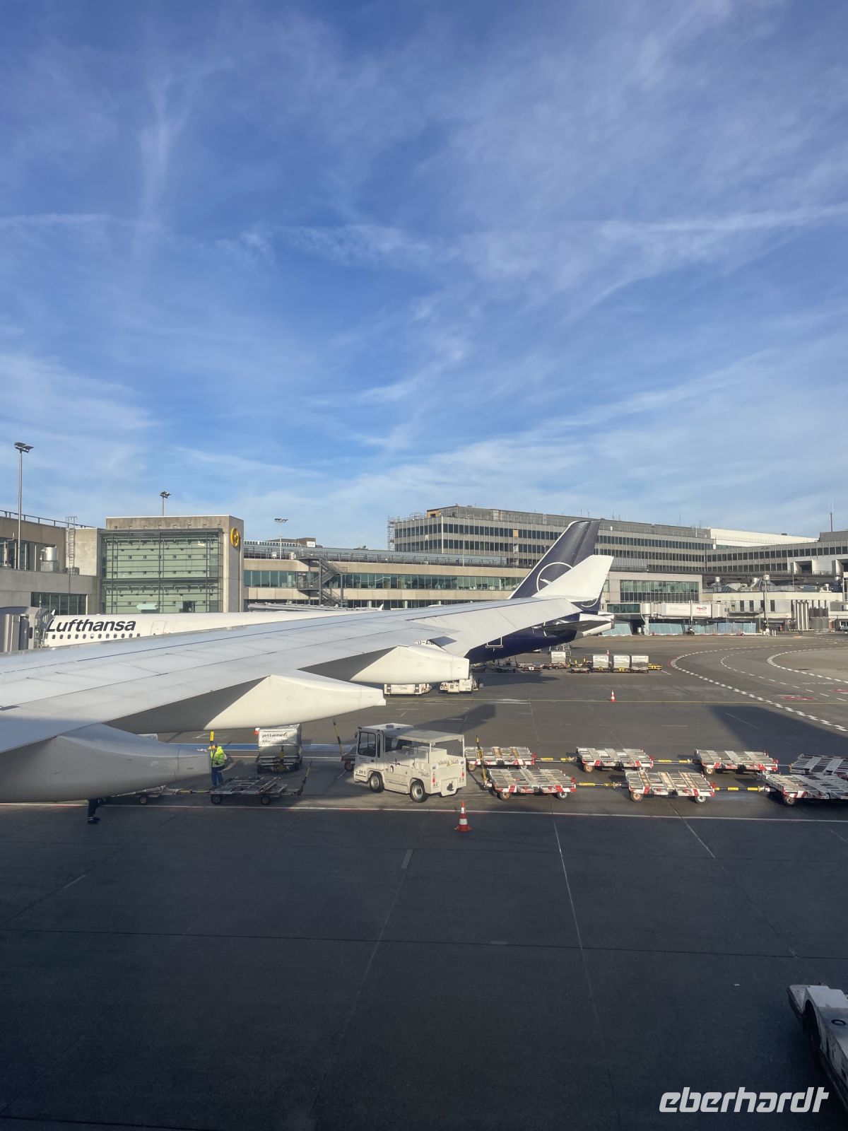 Um 22:30 Uhr brechen wir zum Flughafen auf. Gemeinsam durchlaufen wir den Check-in, die Sicherheitskontrolle und die Ausreisekontrolle, bevor wir gemeinsam zum Gate schlendern. Ab 0:45 Uhr beginnt das Boarding, und um 1:30 Uhr startet unser Flug LH176 in Richtung Frankfurt.
