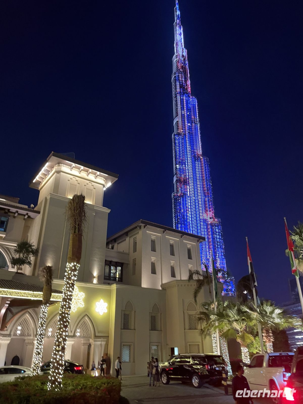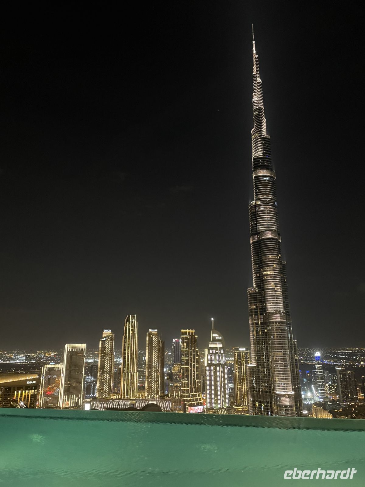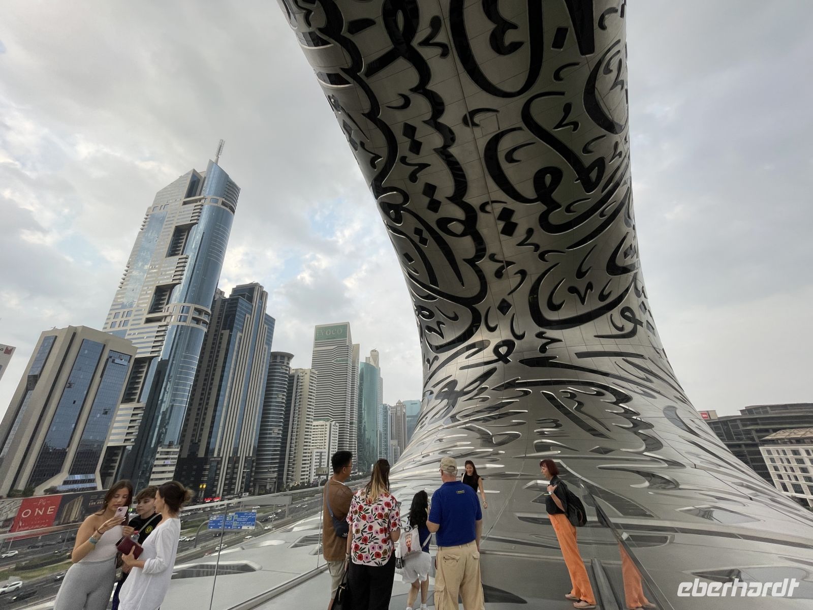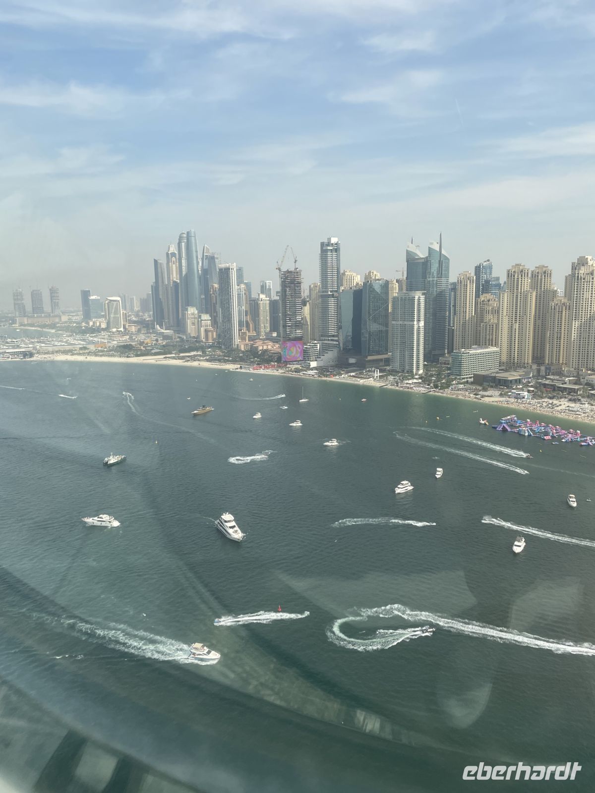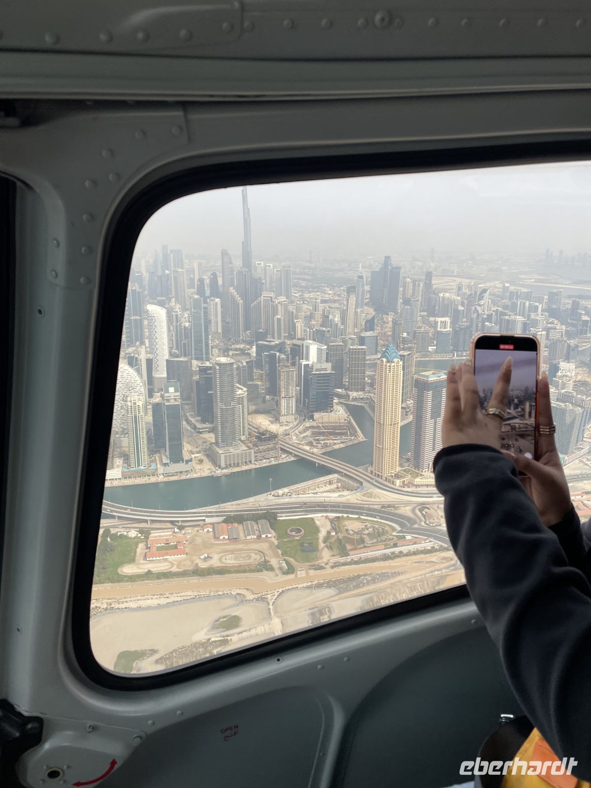 Willkommen im Jahr 2025! Um 11:30 Uhr werden sieben Gäste für den Helikopterflug abgeholt. Nach der Ankunft erfolgt der Check-in mit unserem Reisepass. Nachdem wir das Sicherheitsvideo angeschaut- und die Schwimmwesten angelegt haben, starten wir mit unseren beiden Helikoptern zu einem unvergesslichen Rundflug über Dubai. Um 13:15 Uhr sind alle Teilnehmer wieder sicher gelandet und wir fahren gemeinsam zum Hotel zurück. Um 14:00 Uhr treffen wir uns wieder mit allen anderen Reisegästen. Als Überraschung werden wir mit einer luxuriösen Stretchlimousine abgeholt, was für große Begeisterung sorgt. Den ersten Stopp legen wir am Scheichpalast ein, bevor es weiter zum „Museum of the Future“ geht. Dort angekommen organisiert Reiseleiter Ibrahim für uns die vorbestellten Tickets. Nach etwa einer Stunde Wartezeit erkunden wir die futuristischen Ausstellungen. Als Highlight, erreichen wir gegen Ende eine tolle Aussichtsterrasse, von wo aus wir die imposante Architektur bestaunen können. Alle sind begeistert. Zurück ins Hotel geht es dann schließlich wieder mit unserem normalen Reisebus. Im Hotel angekommen, haben wir eine Stunde Zeit, um uns frisch zu machen. Die meisten Gäste gehen abends mit mir ins Restaurant „Skafos“, gleich um die Ecke vom Hotel essen, wo ich für uns alle einen Tisch reserviert habe. Wir sitzen draußen, wo es allerdings an diesem Tag etwas windig und kühl ist. Trotzdem genießen alle das hervorragende Essen. Gegen 21:00 Uhr breche ich mit vier Gästen zu einer zusätzlichen Unternehmung auf: Wir fahren ins „Address Skyview Hotel“, von der aus wir eine beeindruckende Aussicht vom Rooftop-Pool auf den Burj Khalifa genießen. Um 22:45 Uhr fahren wir wieder hinunter und unternehmen noch einen gemütlichen Spaziergang durch Downtown Dubai. Gegen 23:15 Uhr kehren wir mit einem Taxi zum Hotel zurück und fallen hundemüde ins Bett.