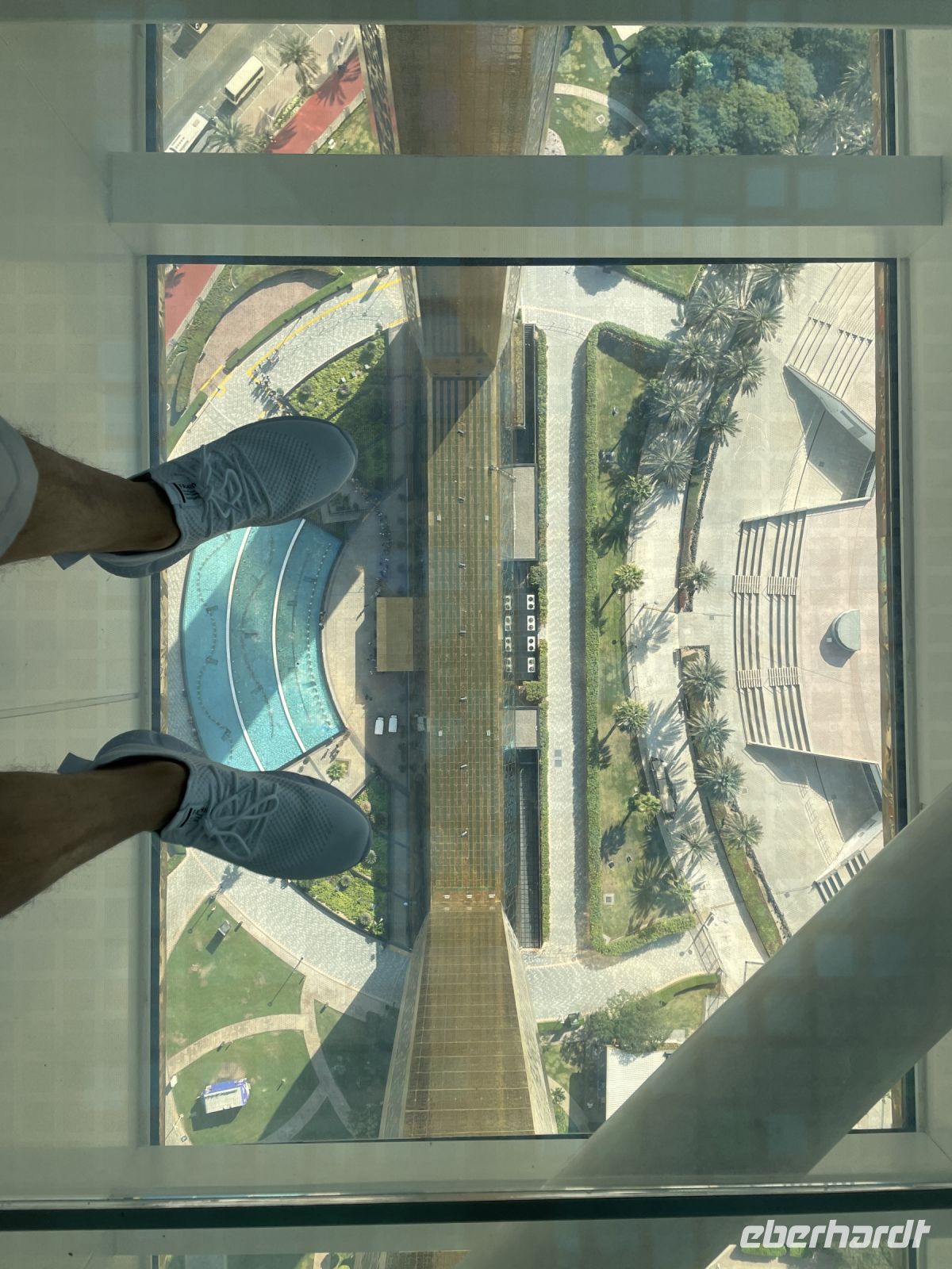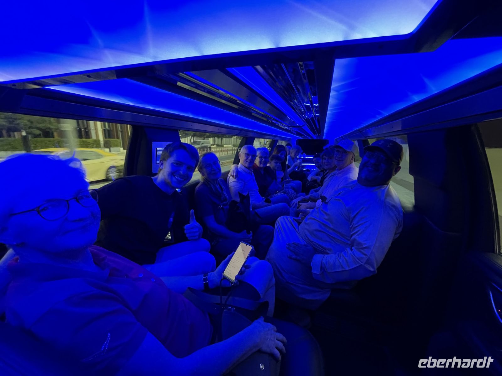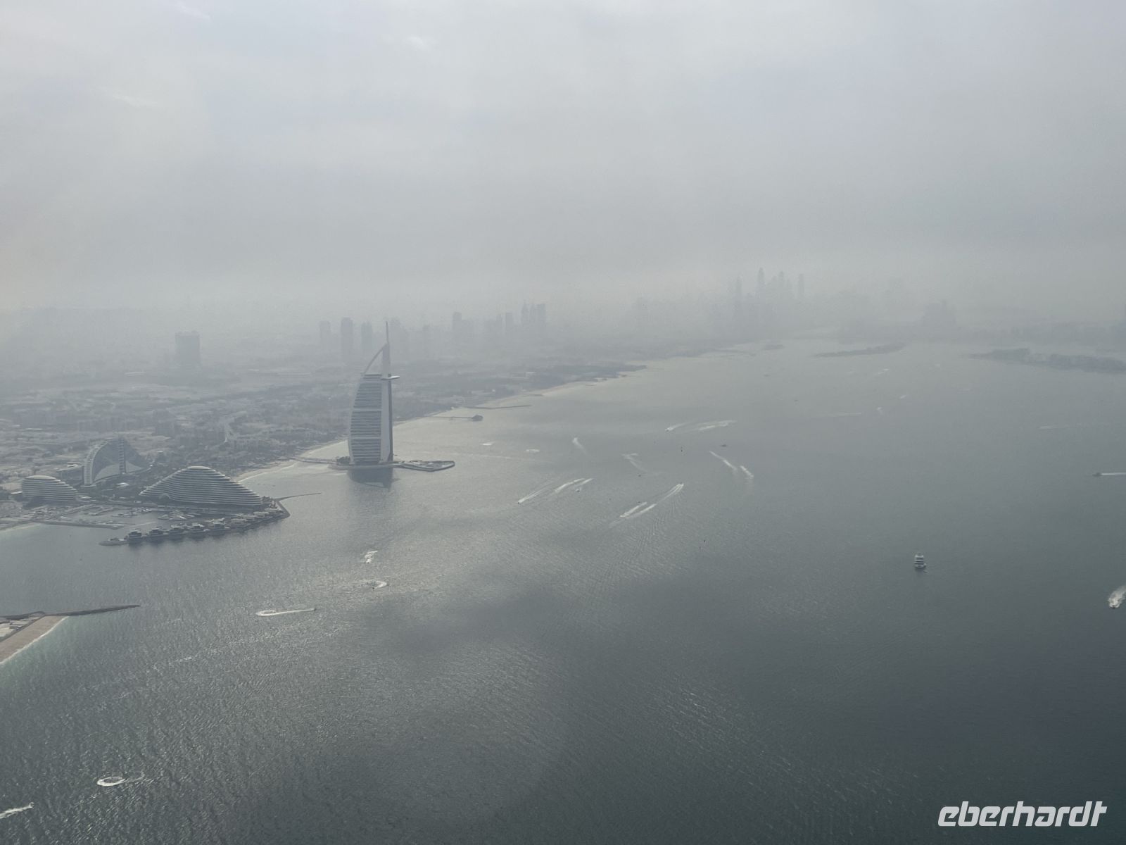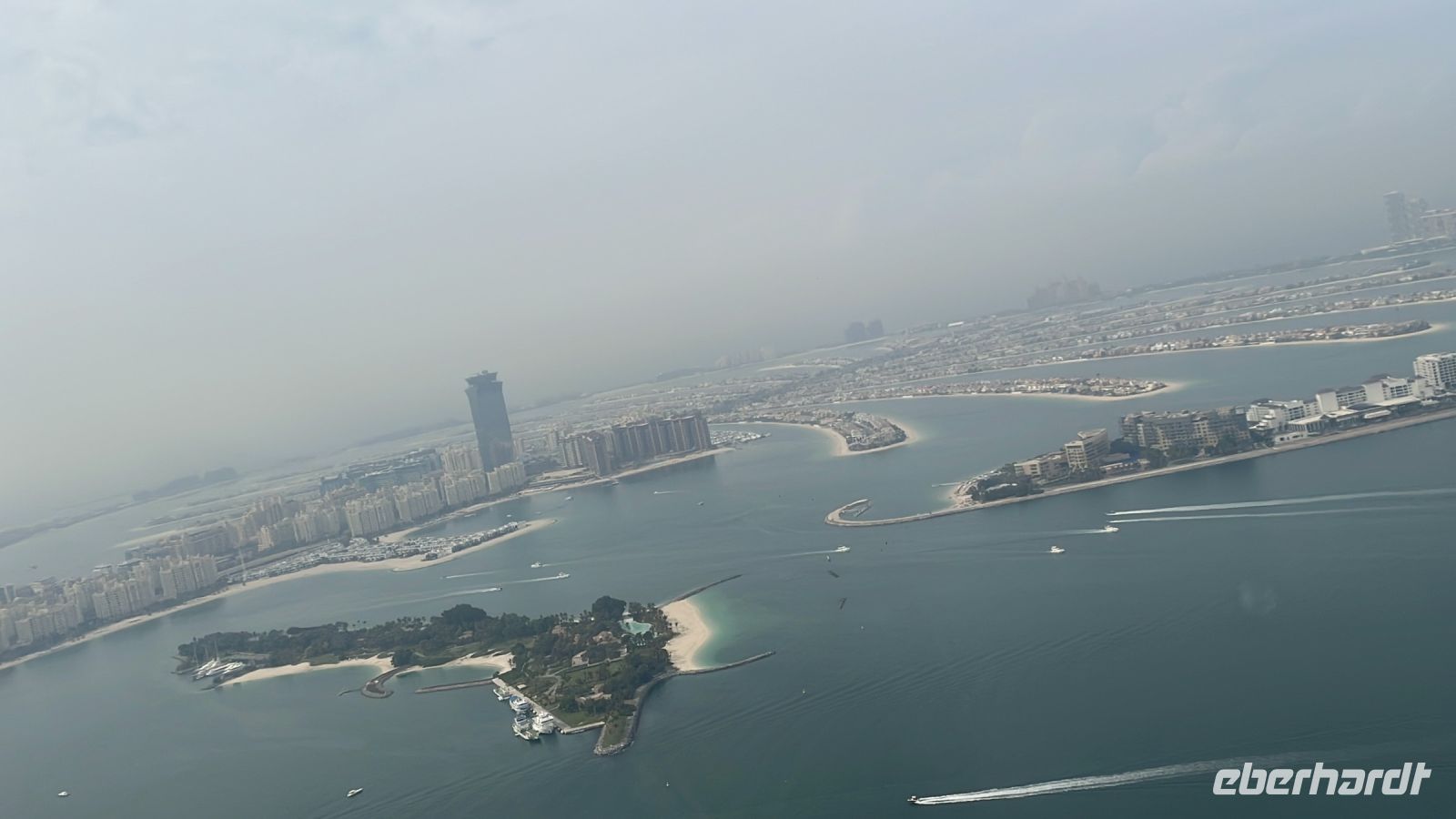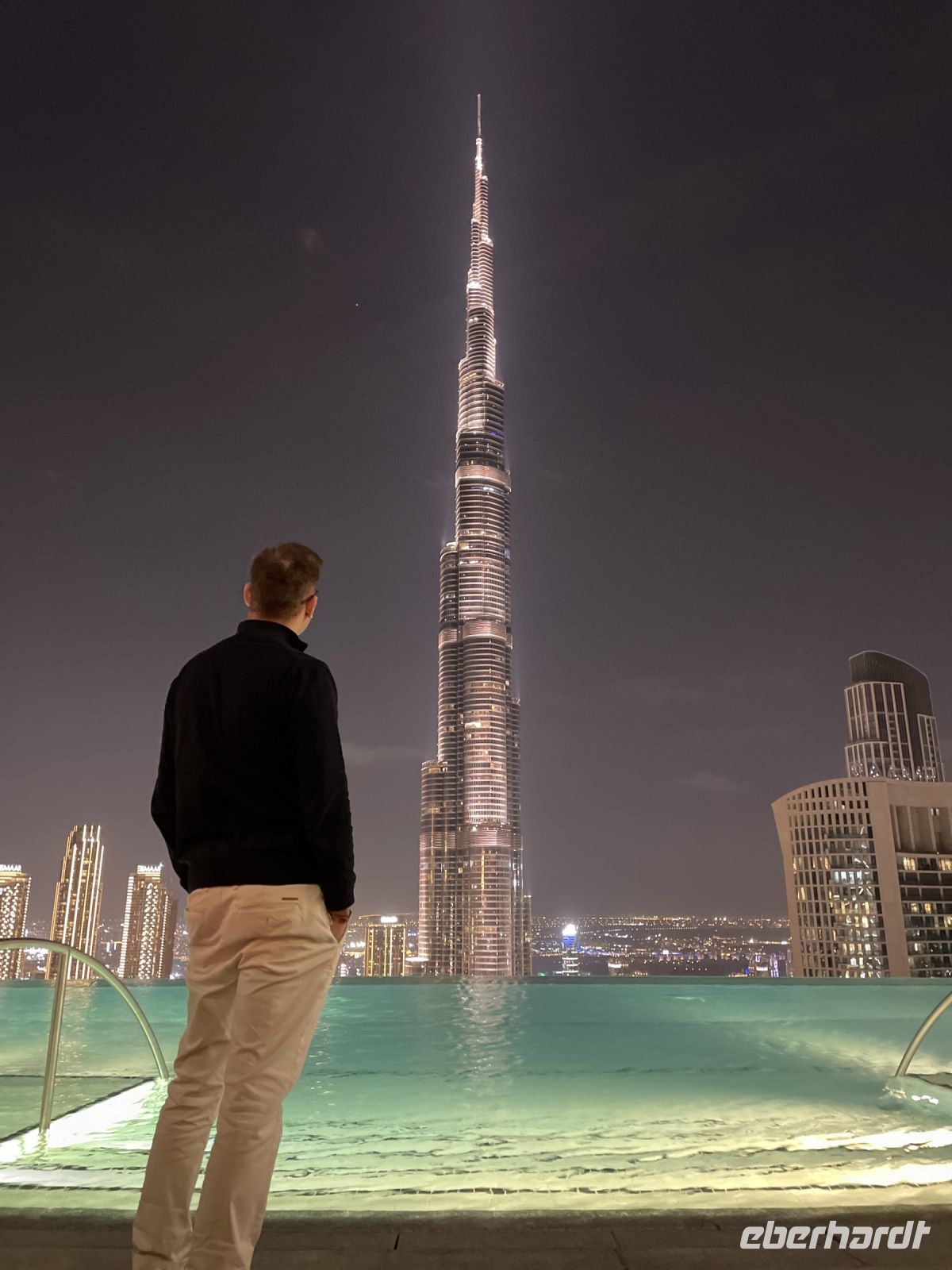 Willkommen im Jahr 2025! Um 11:30 Uhr werden sieben Gäste für den Helikopterflug abgeholt. Nach der Ankunft erfolgt der Check-in mit unserem Reisepass. Nachdem wir das Sicherheitsvideo angeschaut- und die Schwimmwesten angelegt haben, starten wir mit unseren beiden Helikoptern zu einem unvergesslichen Rundflug über Dubai. Um 13:15 Uhr sind alle Teilnehmer wieder sicher gelandet und wir fahren gemeinsam zum Hotel zurück. Um 14:00 Uhr treffen wir uns wieder mit allen anderen Reisegästen. Als Überraschung werden wir mit einer luxuriösen Stretchlimousine abgeholt, was für große Begeisterung sorgt. Den ersten Stopp legen wir am Scheichpalast ein, bevor es weiter zum „Museum of the Future“ geht. Dort angekommen organisiert Reiseleiter Ibrahim für uns die vorbestellten Tickets. Nach etwa einer Stunde Wartezeit erkunden wir die futuristischen Ausstellungen. Als Highlight, erreichen wir gegen Ende eine tolle Aussichtsterrasse, von wo aus wir die imposante Architektur bestaunen können. Alle sind begeistert. Zurück ins Hotel geht es dann schließlich wieder mit unserem normalen Reisebus. Im Hotel angekommen, haben wir eine Stunde Zeit, um uns frisch zu machen. Die meisten Gäste gehen abends mit mir ins Restaurant „Skafos“, gleich um die Ecke vom Hotel essen, wo ich für uns alle einen Tisch reserviert habe. Wir sitzen draußen, wo es allerdings an diesem Tag etwas windig und kühl ist. Trotzdem genießen alle das hervorragende Essen. Gegen 21:00 Uhr breche ich mit vier Gästen zu einer zusätzlichen Unternehmung auf: Wir fahren ins „Address Skyview Hotel“, von der aus wir eine beeindruckende Aussicht vom Rooftop-Pool auf den Burj Khalifa genießen. Um 22:45 Uhr fahren wir wieder hinunter und unternehmen noch einen gemütlichen Spaziergang durch Downtown Dubai. Gegen 23:15 Uhr kehren wir mit einem Taxi zum Hotel zurück und fallen hundemüde ins Bett.