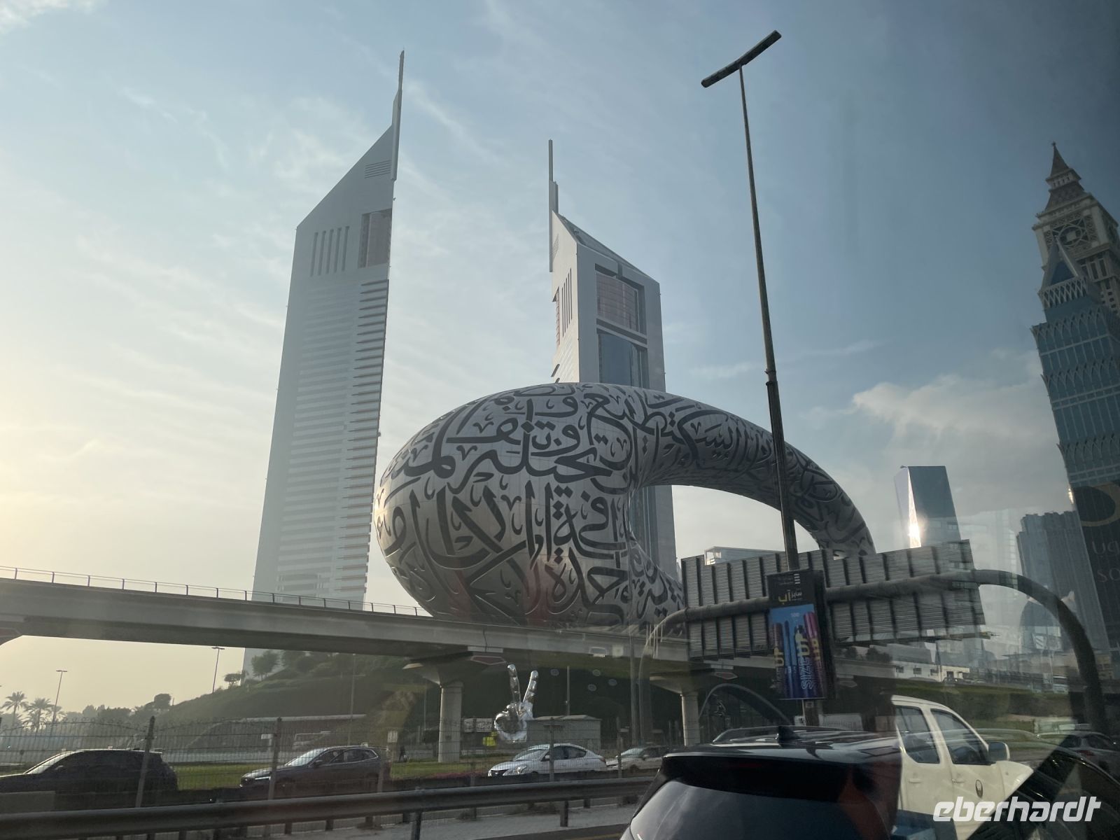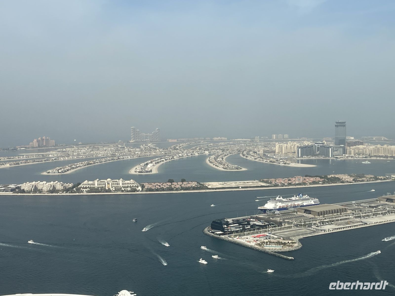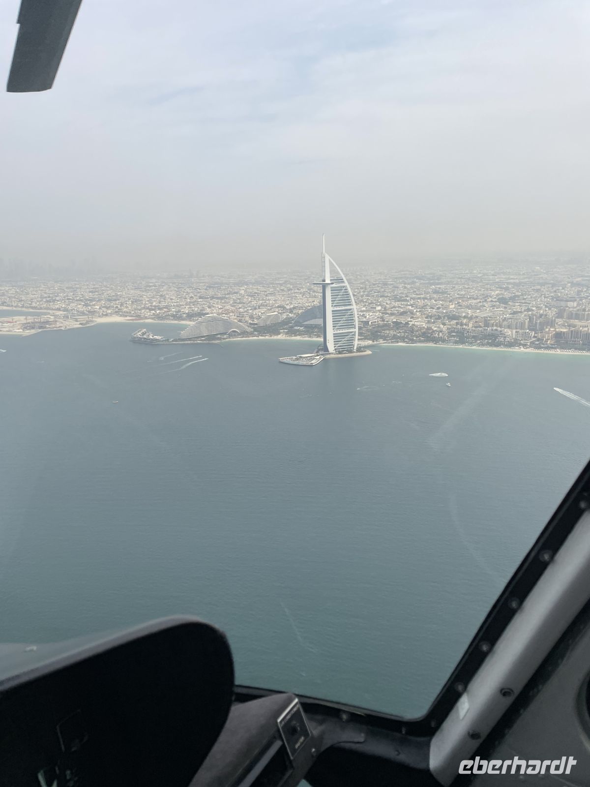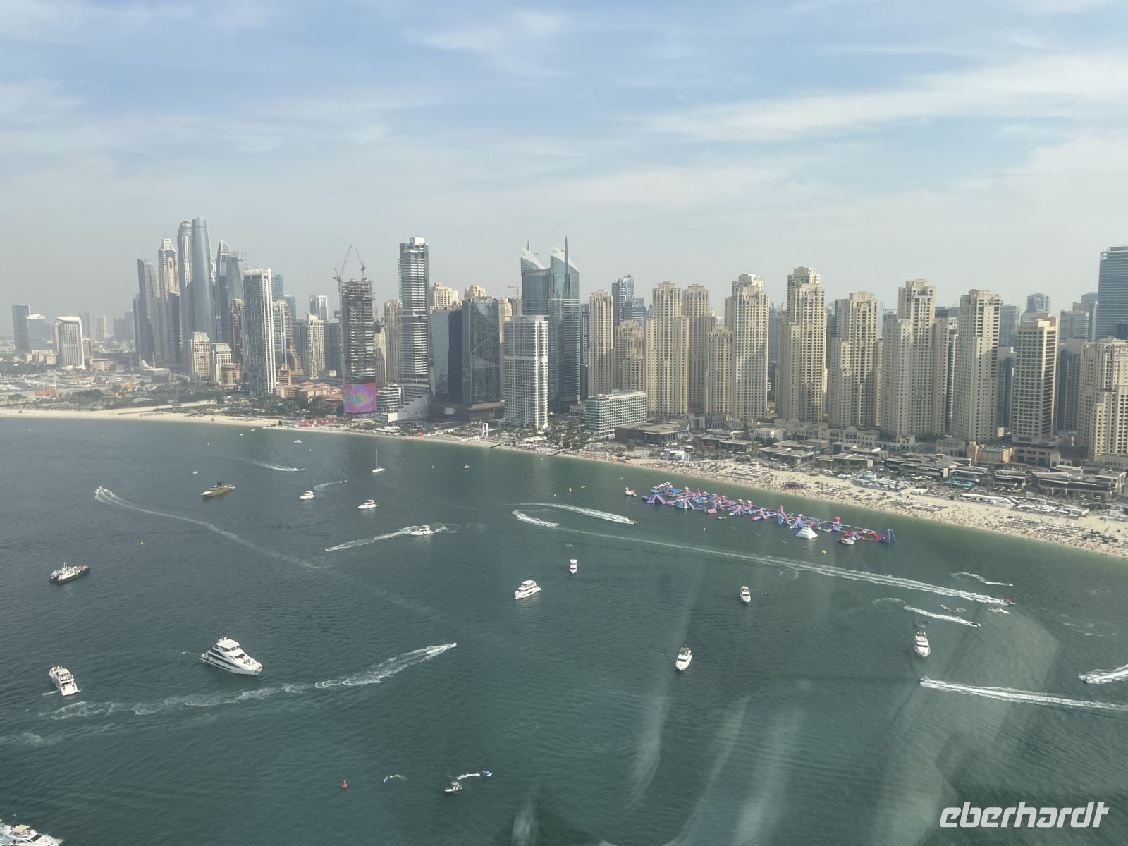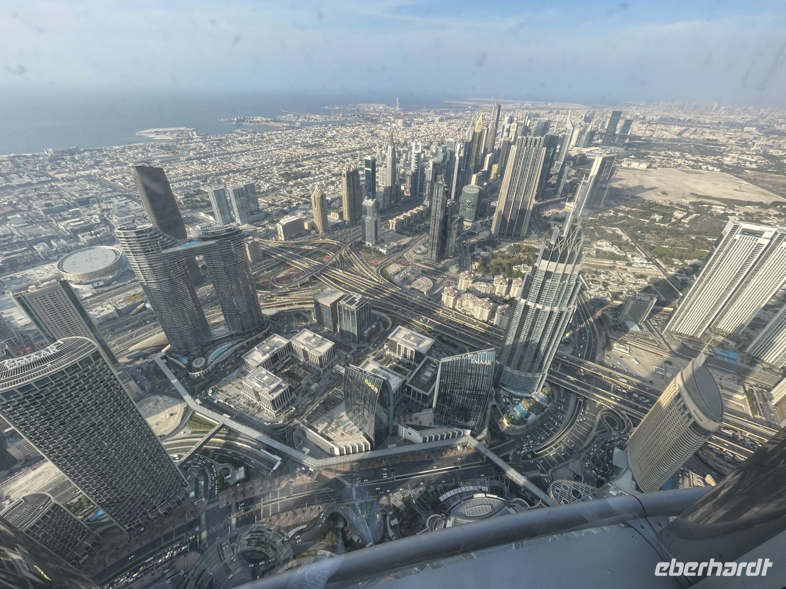 Willkommen im Jahr 2025! Um 11:30 Uhr werden sieben Gäste für den Helikopterflug abgeholt. Nach der Ankunft erfolgt der Check-in mit unserem Reisepass. Nachdem wir das Sicherheitsvideo angeschaut- und die Schwimmwesten angelegt haben, starten wir mit unseren beiden Helikoptern zu einem unvergesslichen Rundflug über Dubai. Um 13:15 Uhr sind alle Teilnehmer wieder sicher gelandet und wir fahren gemeinsam zum Hotel zurück. Um 14:00 Uhr treffen wir uns wieder mit allen anderen Reisegästen. Als Überraschung werden wir mit einer luxuriösen Stretchlimousine abgeholt, was für große Begeisterung sorgt. Den ersten Stopp legen wir am Scheichpalast ein, bevor es weiter zum „Museum of the Future“ geht. Dort angekommen organisiert Reiseleiter Ibrahim für uns die vorbestellten Tickets. Nach etwa einer Stunde Wartezeit erkunden wir die futuristischen Ausstellungen. Als Highlight, erreichen wir gegen Ende eine tolle Aussichtsterrasse, von wo aus wir die imposante Architektur bestaunen können. Alle sind begeistert. Zurück ins Hotel geht es dann schließlich wieder mit unserem normalen Reisebus. Im Hotel angekommen, haben wir eine Stunde Zeit, um uns frisch zu machen. Die meisten Gäste gehen abends mit mir ins Restaurant „Skafos“, gleich um die Ecke vom Hotel essen, wo ich für uns alle einen Tisch reserviert habe. Wir sitzen draußen, wo es allerdings an diesem Tag etwas windig und kühl ist. Trotzdem genießen alle das hervorragende Essen. Gegen 21:00 Uhr breche ich mit vier Gästen zu einer zusätzlichen Unternehmung auf: Wir fahren ins „Address Skyview Hotel“, von der aus wir eine beeindruckende Aussicht vom Rooftop-Pool auf den Burj Khalifa genießen. Um 22:45 Uhr fahren wir wieder hinunter und unternehmen noch einen gemütlichen Spaziergang durch Downtown Dubai. Gegen 23:15 Uhr kehren wir mit einem Taxi zum Hotel zurück und fallen hundemüde ins Bett.