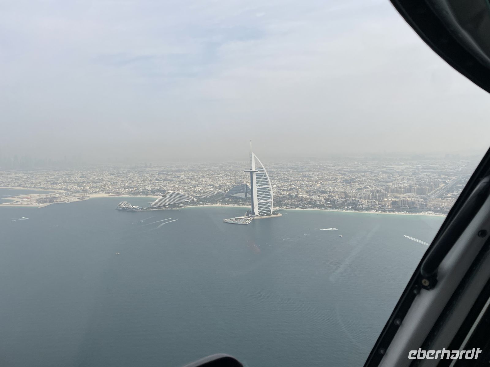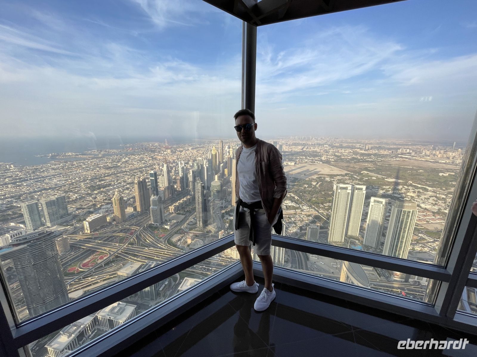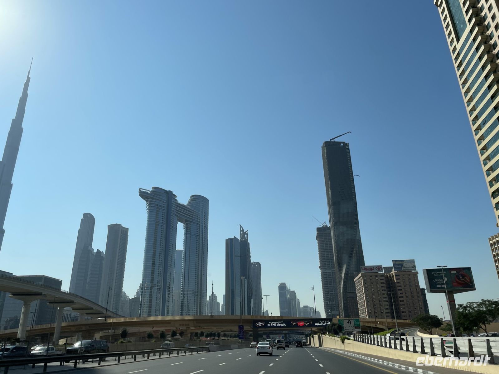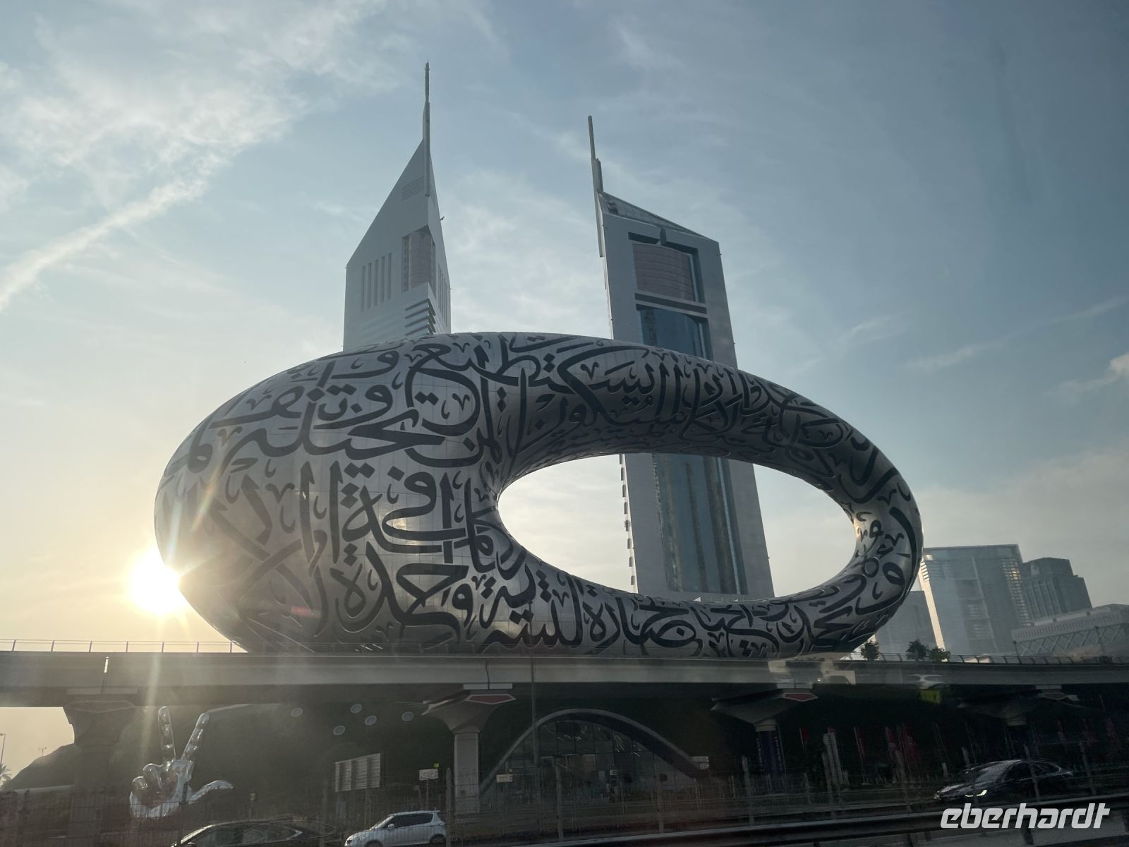 Willkommen im Jahr 2025! Um 11:30 Uhr werden sieben Gäste für den Helikopterflug abgeholt. Nach der Ankunft erfolgt der Check-in mit unserem Reisepass. Nachdem wir das Sicherheitsvideo angeschaut- und die Schwimmwesten angelegt haben, starten wir mit unseren beiden Helikoptern zu einem unvergesslichen Rundflug über Dubai. Um 13:15 Uhr sind alle Teilnehmer wieder sicher gelandet und wir fahren gemeinsam zum Hotel zurück. Um 14:00 Uhr treffen wir uns wieder mit allen anderen Reisegästen. Als Überraschung werden wir mit einer luxuriösen Stretchlimousine abgeholt, was für große Begeisterung sorgt. Den ersten Stopp legen wir am Scheichpalast ein, bevor es weiter zum „Museum of the Future“ geht. Dort angekommen organisiert Reiseleiter Ibrahim für uns die vorbestellten Tickets. Nach etwa einer Stunde Wartezeit erkunden wir die futuristischen Ausstellungen. Als Highlight, erreichen wir gegen Ende eine tolle Aussichtsterrasse, von wo aus wir die imposante Architektur bestaunen können. Alle sind begeistert. Zurück ins Hotel geht es dann schließlich wieder mit unserem normalen Reisebus. Im Hotel angekommen, haben wir eine Stunde Zeit, um uns frisch zu machen. Die meisten Gäste gehen abends mit mir ins Restaurant „Skafos“, gleich um die Ecke vom Hotel essen, wo ich für uns alle einen Tisch reserviert habe. Wir sitzen draußen, wo es allerdings an diesem Tag etwas windig und kühl ist. Trotzdem genießen alle das hervorragende Essen. Gegen 21:00 Uhr breche ich mit vier Gästen zu einer zusätzlichen Unternehmung auf: Wir fahren ins „Address Skyview Hotel“, von der aus wir eine beeindruckende Aussicht vom Rooftop-Pool auf den Burj Khalifa genießen. Um 22:45 Uhr fahren wir wieder hinunter und unternehmen noch einen gemütlichen Spaziergang durch Downtown Dubai. Gegen 23:15 Uhr kehren wir mit einem Taxi zum Hotel zurück und fallen hundemüde ins Bett.