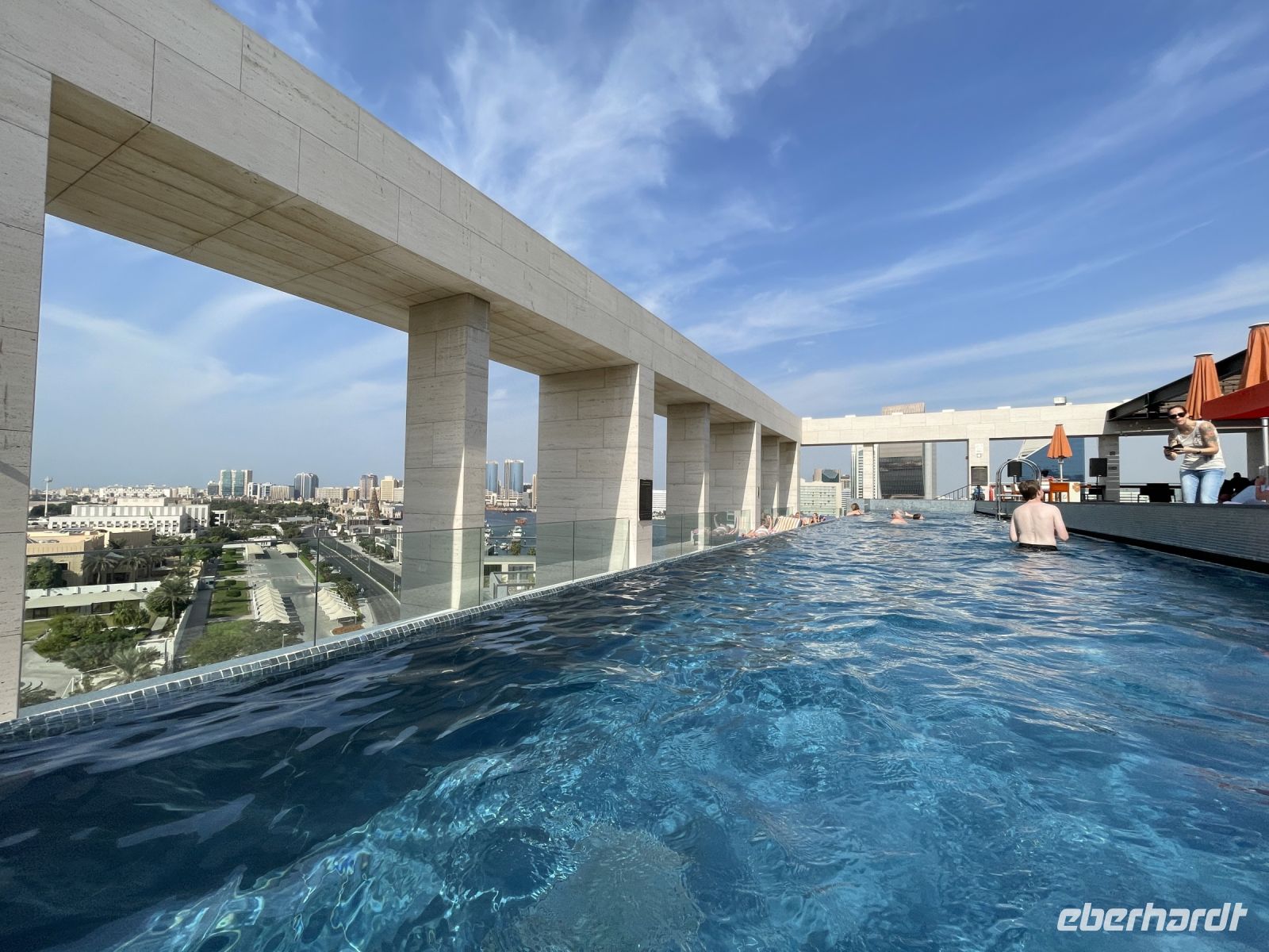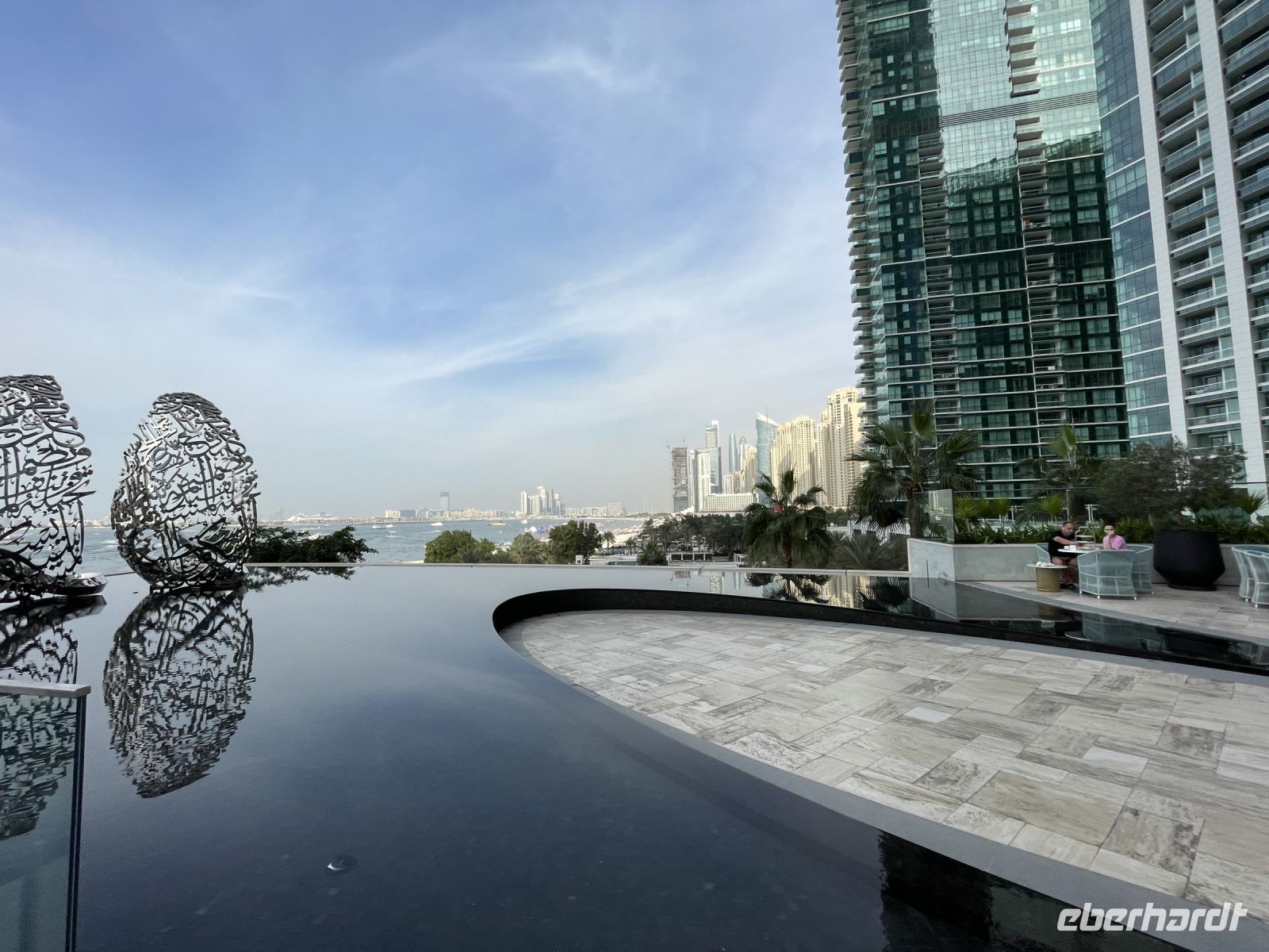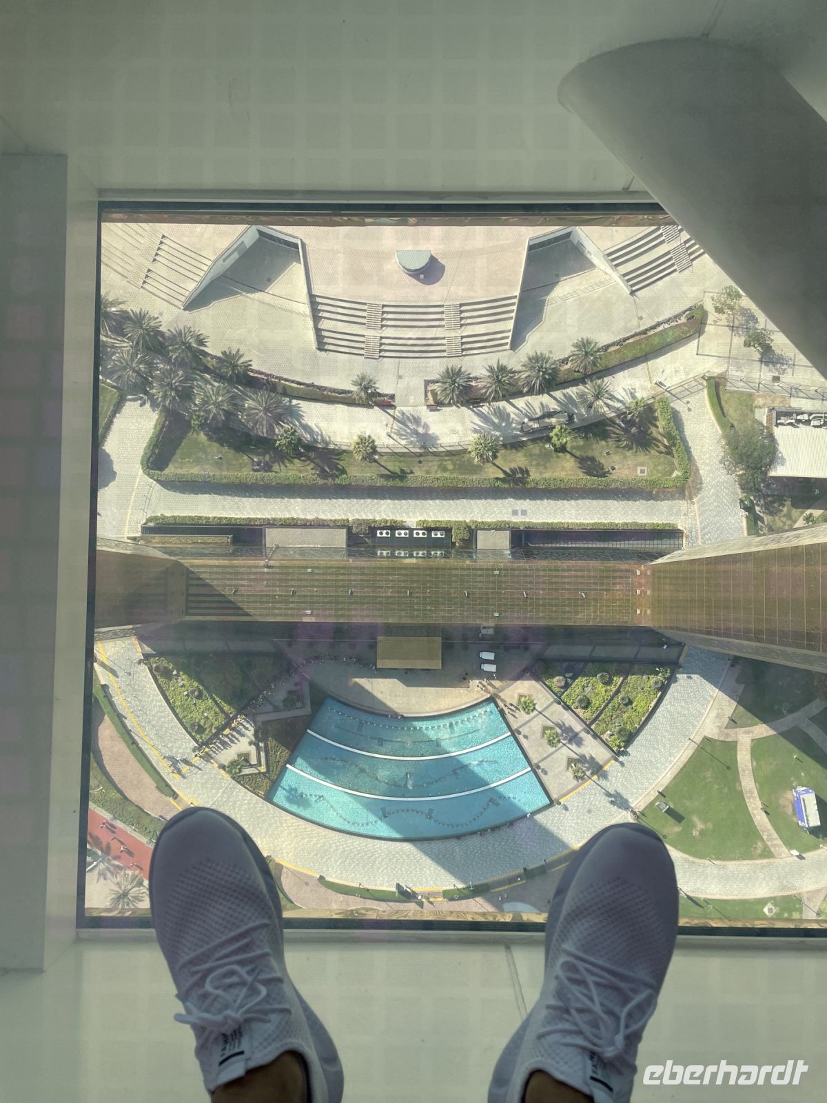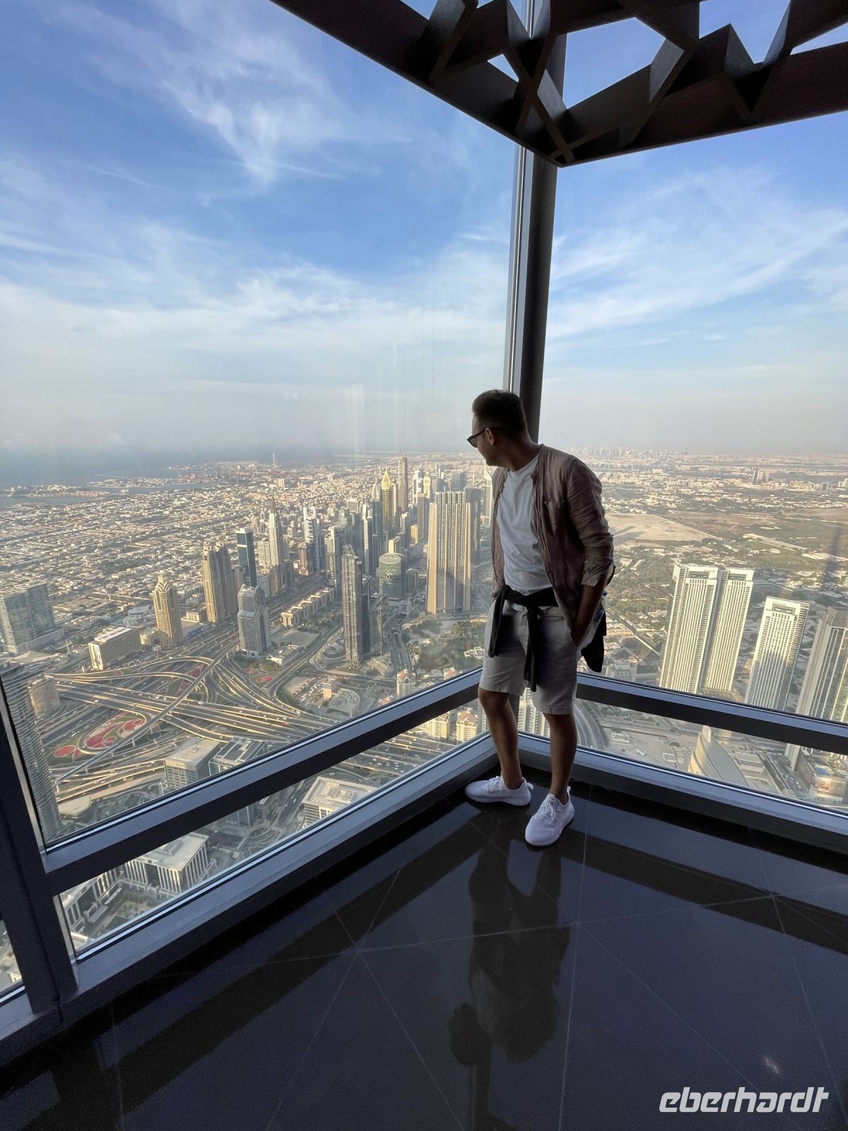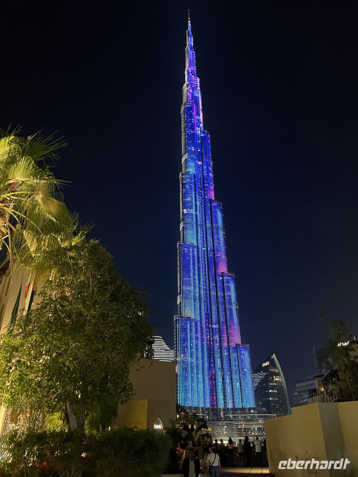 Willkommen im Jahr 2025! Um 11:30 Uhr werden sieben Gäste für den Helikopterflug abgeholt. Nach der Ankunft erfolgt der Check-in mit unserem Reisepass. Nachdem wir das Sicherheitsvideo angeschaut- und die Schwimmwesten angelegt haben, starten wir mit unseren beiden Helikoptern zu einem unvergesslichen Rundflug über Dubai. Um 13:15 Uhr sind alle Teilnehmer wieder sicher gelandet und wir fahren gemeinsam zum Hotel zurück. Um 14:00 Uhr treffen wir uns wieder mit allen anderen Reisegästen. Als Überraschung werden wir mit einer luxuriösen Stretchlimousine abgeholt, was für große Begeisterung sorgt. Den ersten Stopp legen wir am Scheichpalast ein, bevor es weiter zum „Museum of the Future“ geht. Dort angekommen organisiert Reiseleiter Ibrahim für uns die vorbestellten Tickets. Nach etwa einer Stunde Wartezeit erkunden wir die futuristischen Ausstellungen. Als Highlight, erreichen wir gegen Ende eine tolle Aussichtsterrasse, von wo aus wir die imposante Architektur bestaunen können. Alle sind begeistert. Zurück ins Hotel geht es dann schließlich wieder mit unserem normalen Reisebus. Im Hotel angekommen, haben wir eine Stunde Zeit, um uns frisch zu machen. Die meisten Gäste gehen abends mit mir ins Restaurant „Skafos“, gleich um die Ecke vom Hotel essen, wo ich für uns alle einen Tisch reserviert habe. Wir sitzen draußen, wo es allerdings an diesem Tag etwas windig und kühl ist. Trotzdem genießen alle das hervorragende Essen. Gegen 21:00 Uhr breche ich mit vier Gästen zu einer zusätzlichen Unternehmung auf: Wir fahren ins „Address Skyview Hotel“, von der aus wir eine beeindruckende Aussicht vom Rooftop-Pool auf den Burj Khalifa genießen. Um 22:45 Uhr fahren wir wieder hinunter und unternehmen noch einen gemütlichen Spaziergang durch Downtown Dubai. Gegen 23:15 Uhr kehren wir mit einem Taxi zum Hotel zurück und fallen hundemüde ins Bett.