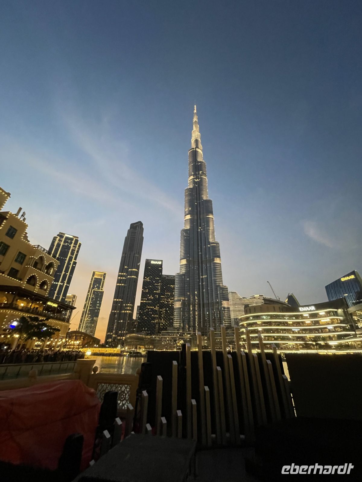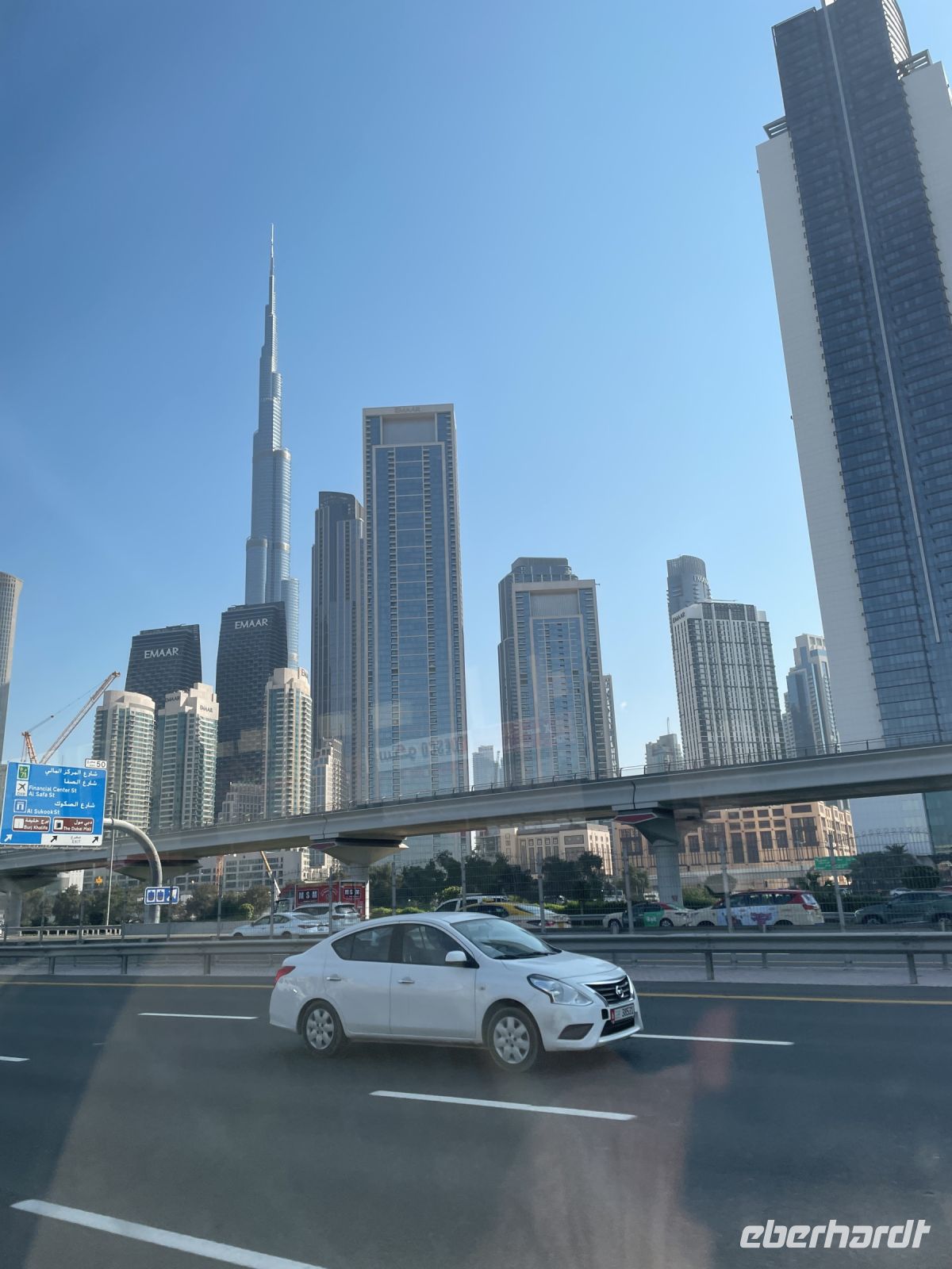 Ab 6:30 Uhr genießen wir ein reichhaltiges Frühstück im Hotel und um 9:30 Uhr brechen wir zu unserer Stadterkundung auf. Unser erstes Ziel ist der beeindruckende Bilderrahmen „The Frame“, den wir von unten und von der 150 Meter hohen Aussichtsplattform bestaunen können. Anschließend geht es weiter zum Jumairah Beach wo wir ein Fotostopp am „Burj Al Arab“ Hotel einlegen. Gegen 12:00 Uhr erreichen wir die „Mall of the Emirates“, wo wir die Skihalle bewundern und das Kempinski Hotel sehen, welches Zimmer mit Schneeblick bietet. Danach geht es weiter zur berühmten „Dubai Mall“, wo wir die Eislaufbahn, den Wasserfall und „Chinatown“ bewundern werden. Nach einer kleinen Mittagspause im Foodcourt, stellen wir uns für ca. 2 Stunden in der langen Schlange für den Burj Khalifa an. Trotz Vorverkaufstickets dauert es heute besonders lange. Nach der Sicherheitskontrolle erreichen wir gegen 16:00Uhr die Plattform und genießen den atemberaubenden Ausblick. Zum Schluss stellen wir uns erneut an, um hinunterzufahren, was auch wieder etwa 45 Minuten dauert. Gegen 17:30 Uhr treffen wir Reiseleiter Ibrahim und spazieren gemeinsam zum Restaurant „Abdel Wahab“, wo wir ein köstliches arabisch-libanesisches Abendessen genießen. Die Speisen werden auf einem langen Tisch serviert, und jeder bedient sich nach Belieben. Nach dem Abendessen fahren wir zurück ins Hotel und kommen gegen 21:00 Uhr an. Nach einer kurzen Pause treffen sich einige Reisegäste mit mir nochmal auf der Dachterrasse für einen Absacker-Drink. :-)