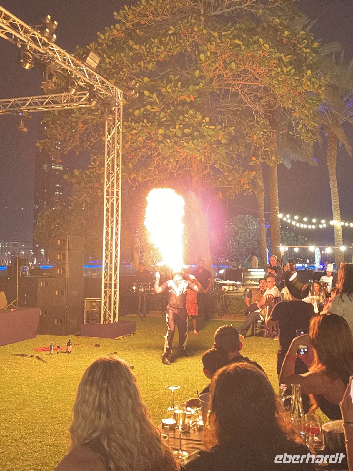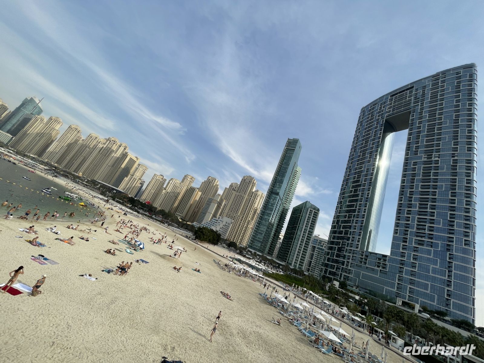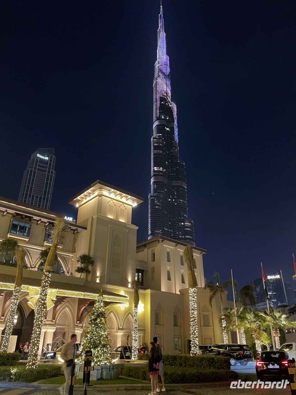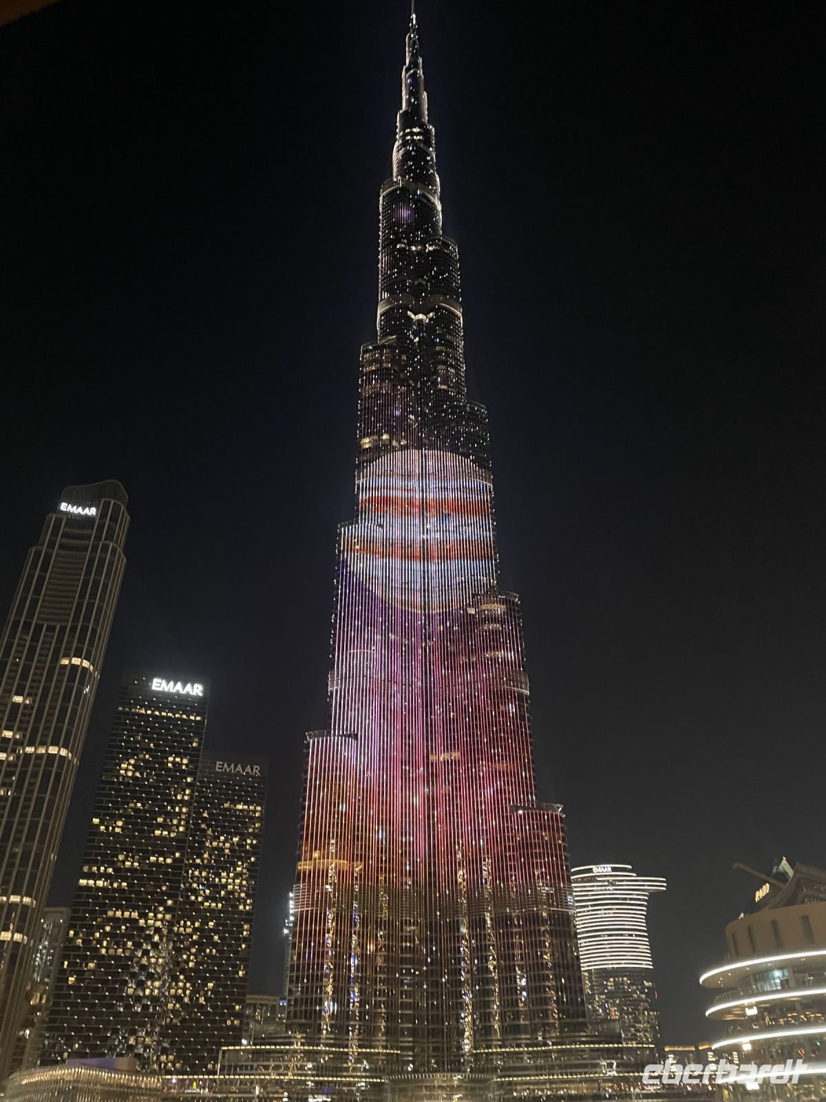 An unserem heutigen freien Tag können alle in Ruhe ausschlafen. Bis zum Treffpunkt am frühen Abend für die Silvesterfeier steht eine individuelle Ausgestaltung des Nachmittags auf dem Plan. Einige Reisegäste fahren jedoch mit mir in Richtung Dubai Marina. Hinzu nehmen wir die Metro und rückzu ein Taxi. Wir besuchen das Dubai Riesenrad, spazieren zum Adress Beach Hotel und gehen danach am JBR Strand Baden. Am späten Nachmittag erreichen wir wieder unser Hotel und haben noch etwas Freizeit bis wir wieder abgeholt werden. Um 19:30Uhr treffen wir uns wieder in der Lobby. Der Dresscode für unsere Silvesternacht lautet – Silber&Black. Dort angekommen, trinken wir erst einmal einen Begrüßungs-Sekt und begeben uns zu unseren Tischen im Außenbereich, wo uns nicht nur ein imposantes Buffet mit Lobster, Kaviar, Wagyu-Beef uvm. sondern auch ein einmaliges Show Programm geboten wird. Wir sitzen an einem großen Tisch und genießen Speiß- & Trank. Um 00:00Uhr heißt es… 3,2,1 – frohes neues Jahr! Das Feuerwerk ist einfach gigantisch! Alle sind begeistert! Nun geht die Party richtig los, mit Livemusik und einem DJ.