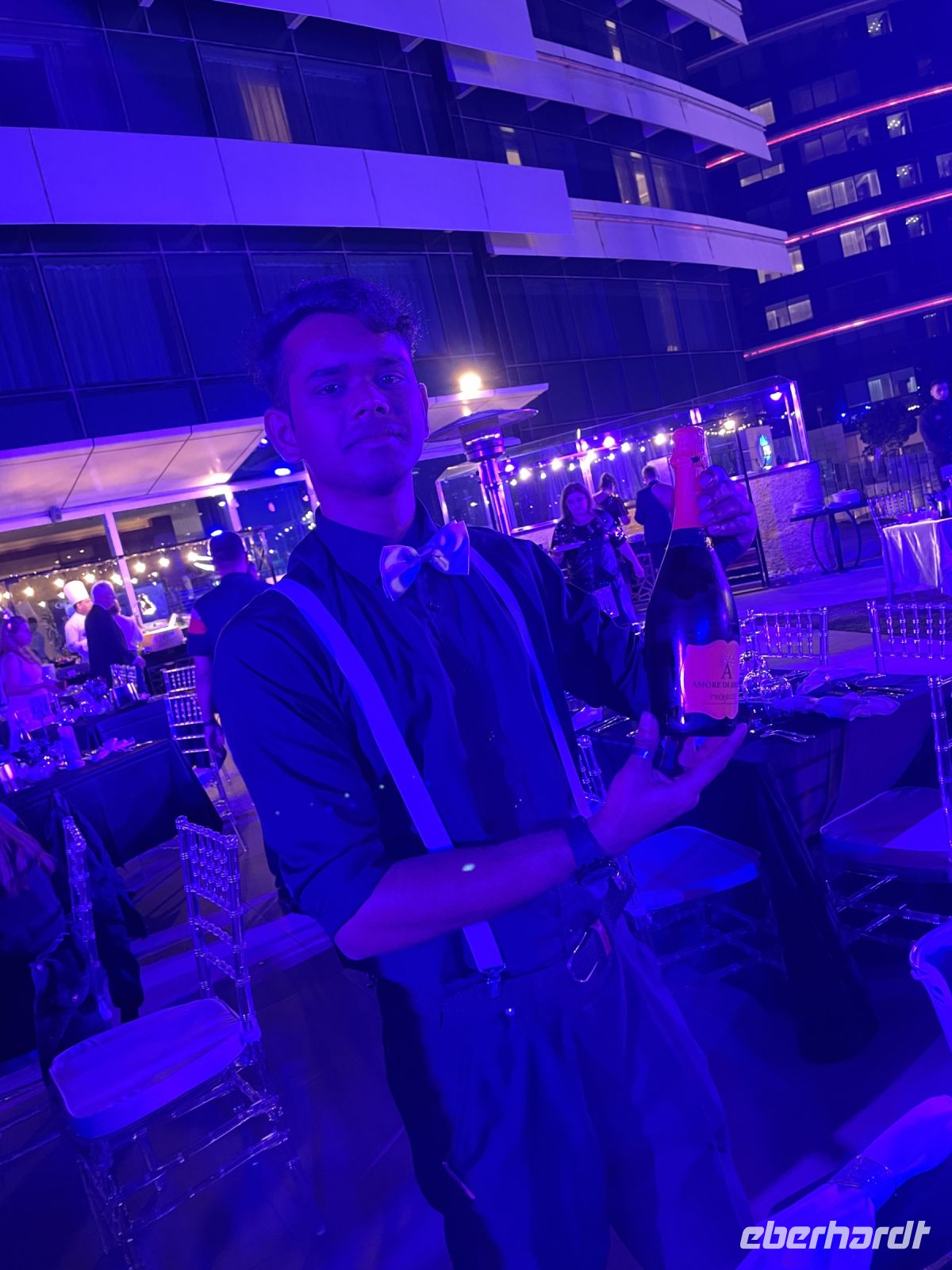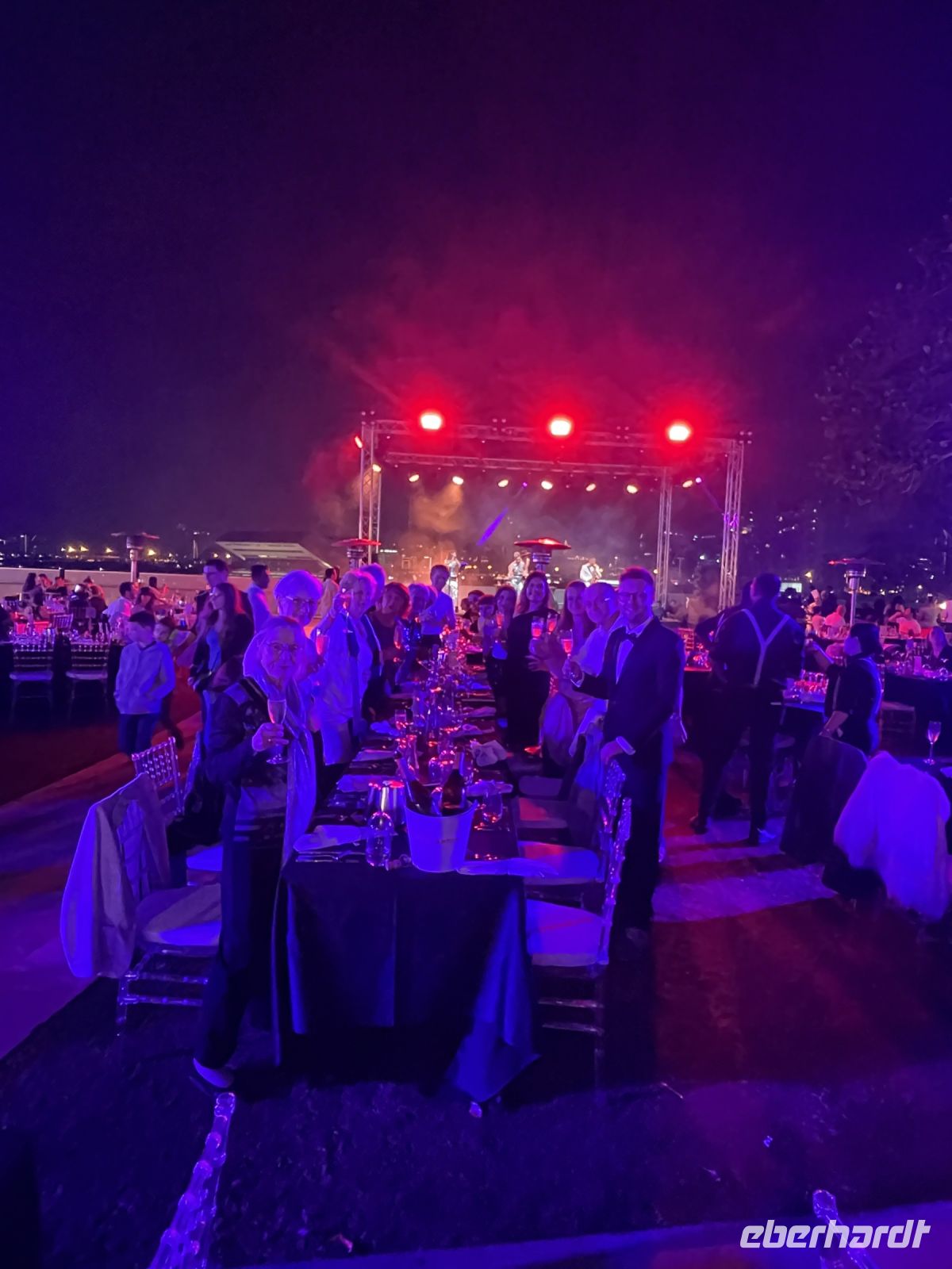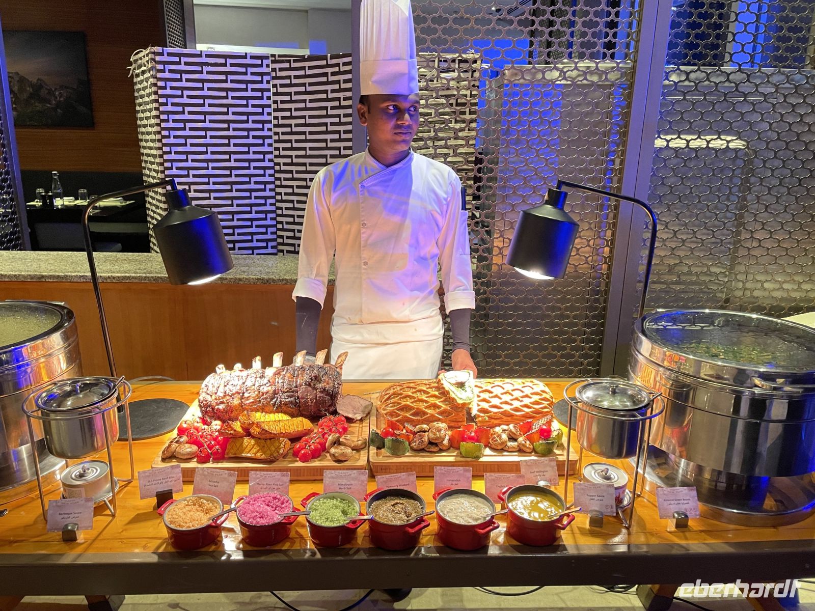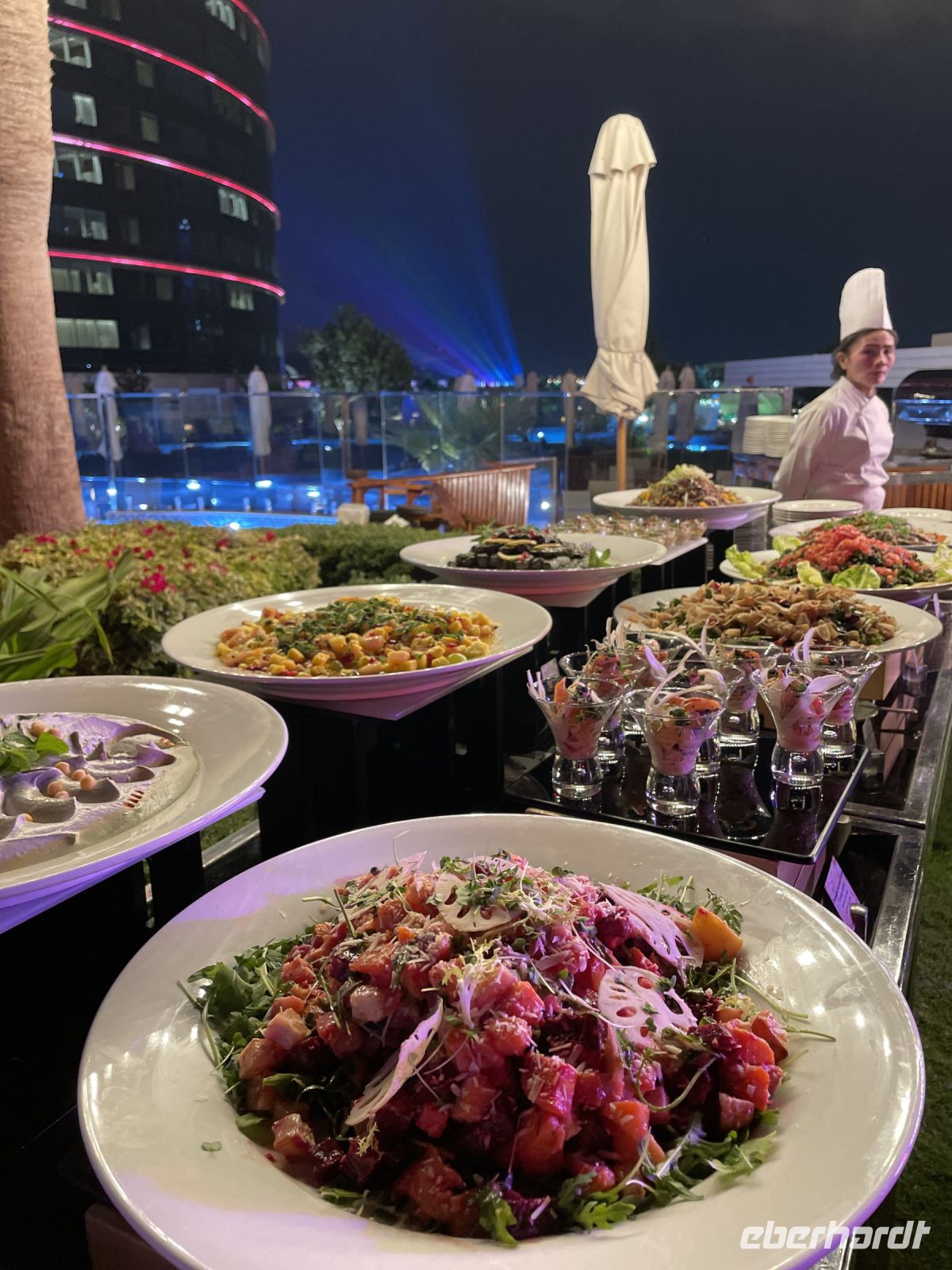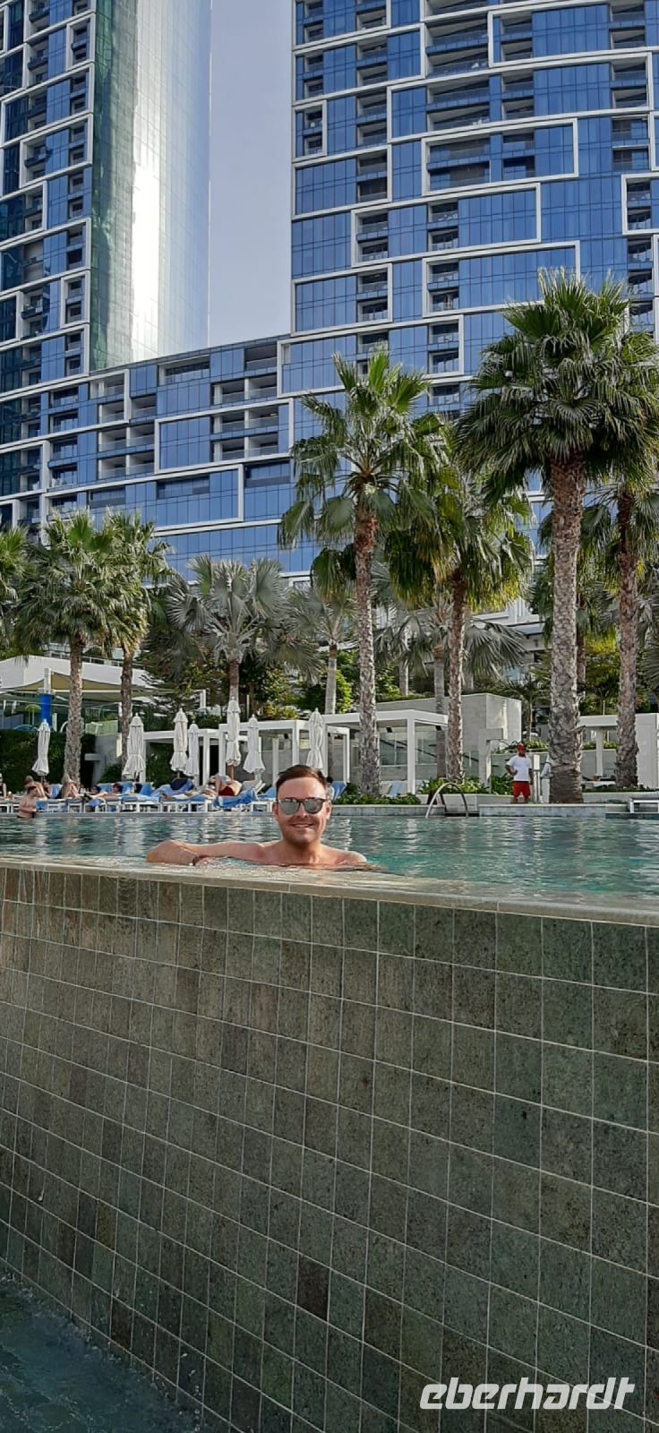 An unserem heutigen freien Tag können alle in Ruhe ausschlafen. Bis zum Treffpunkt am frühen Abend für die Silvesterfeier steht eine individuelle Ausgestaltung des Nachmittags auf dem Plan. Einige Reisegäste fahren jedoch mit mir in Richtung Dubai Marina. Hinzu nehmen wir die Metro und rückzu ein Taxi. Wir besuchen das Dubai Riesenrad, spazieren zum Adress Beach Hotel und gehen danach am JBR Strand Baden. Am späten Nachmittag erreichen wir wieder unser Hotel und haben noch etwas Freizeit bis wir wieder abgeholt werden. Um 19:30Uhr treffen wir uns wieder in der Lobby. Der Dresscode für unsere Silvesternacht lautet – Silber&Black. Dort angekommen, trinken wir erst einmal einen Begrüßungs-Sekt und begeben uns zu unseren Tischen im Außenbereich, wo uns nicht nur ein imposantes Buffet mit Lobster, Kaviar, Wagyu-Beef uvm. sondern auch ein einmaliges Show Programm geboten wird. Wir sitzen an einem großen Tisch und genießen Speiß- & Trank. Um 00:00Uhr heißt es… 3,2,1 – frohes neues Jahr! Das Feuerwerk ist einfach gigantisch! Alle sind begeistert! Nun geht die Party richtig los, mit Livemusik und einem DJ.
