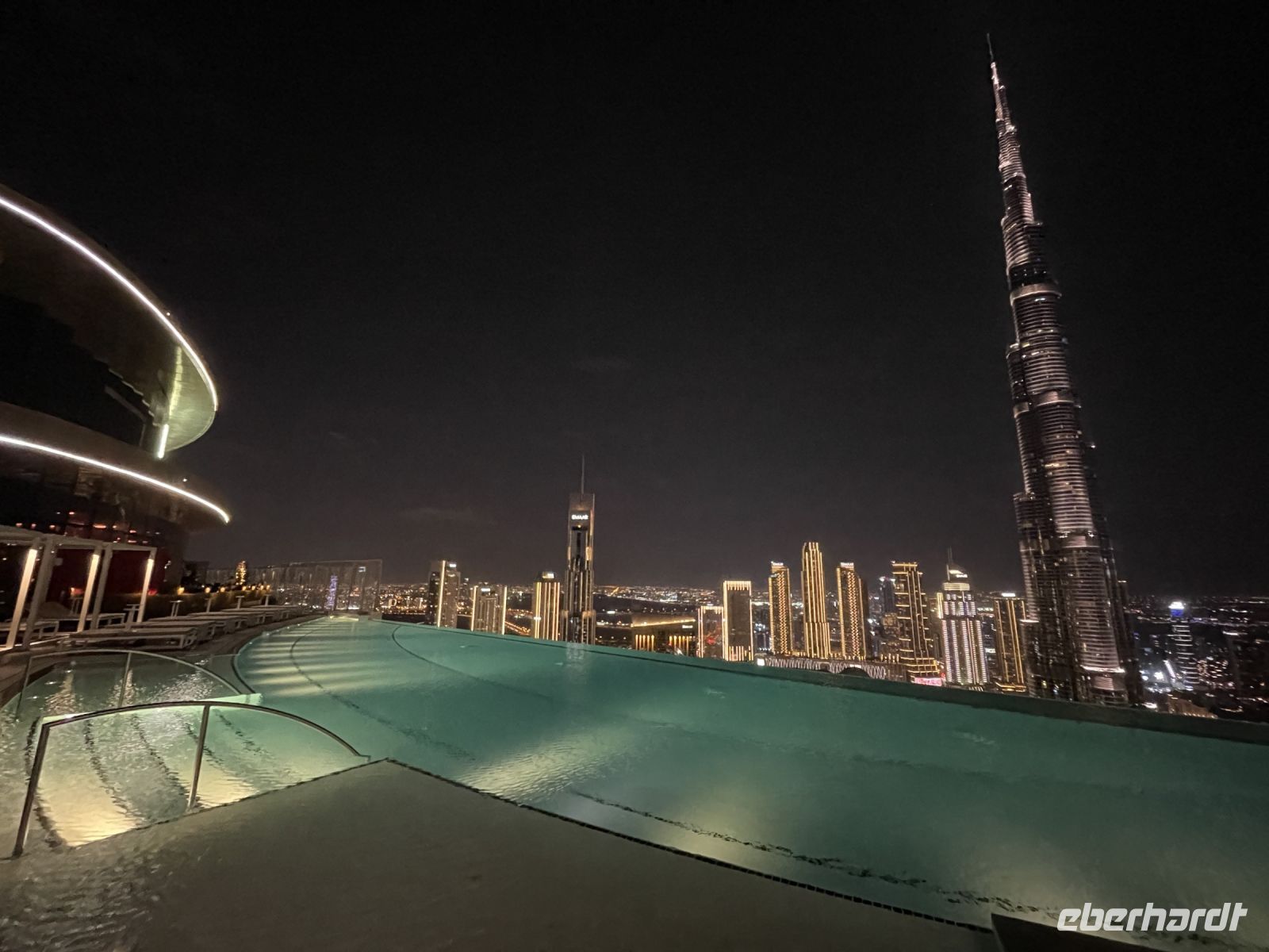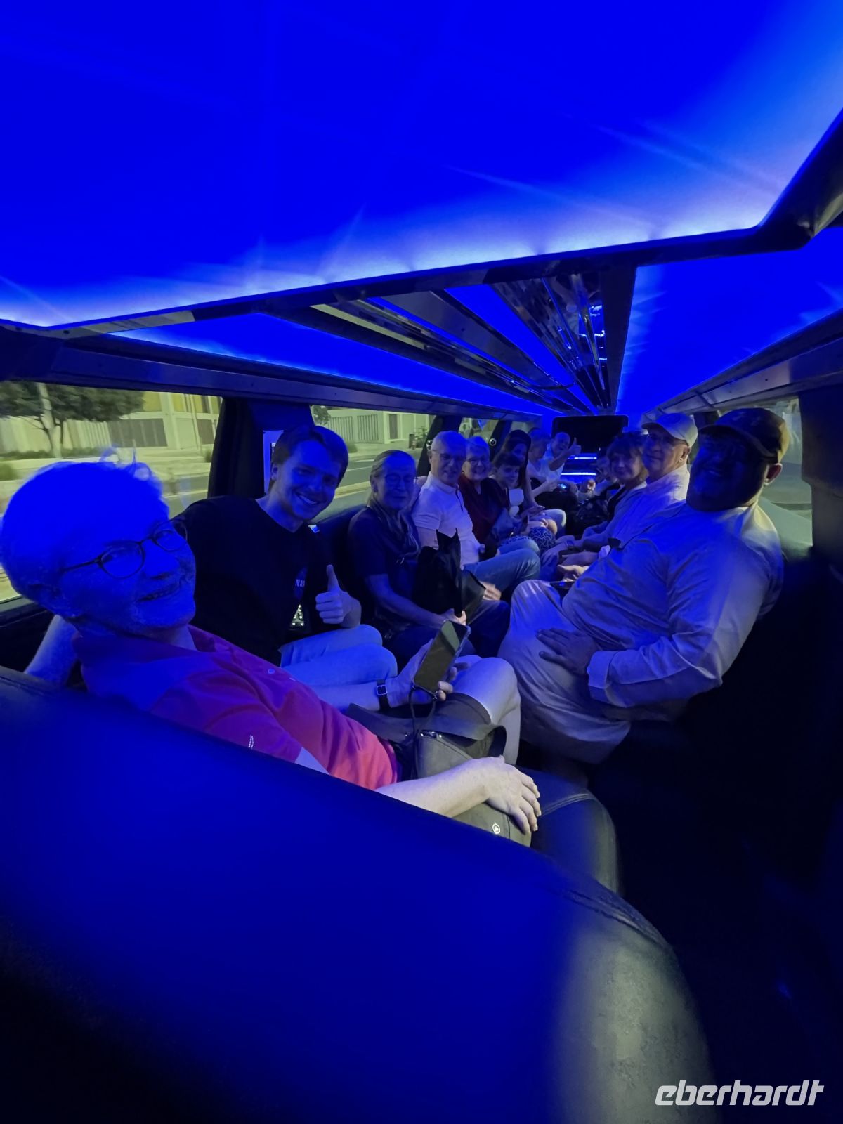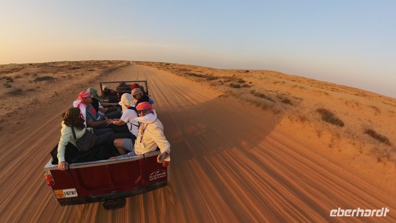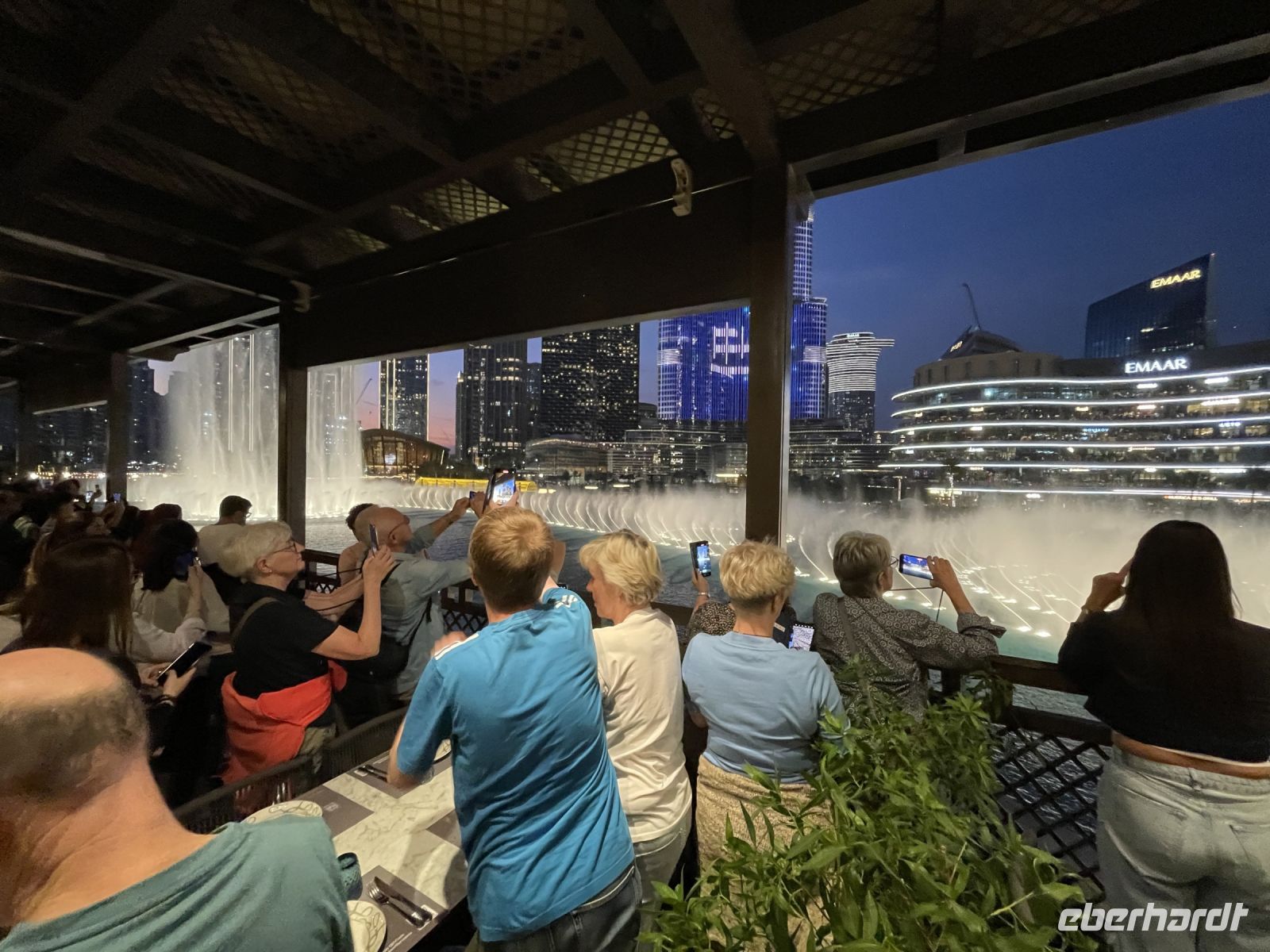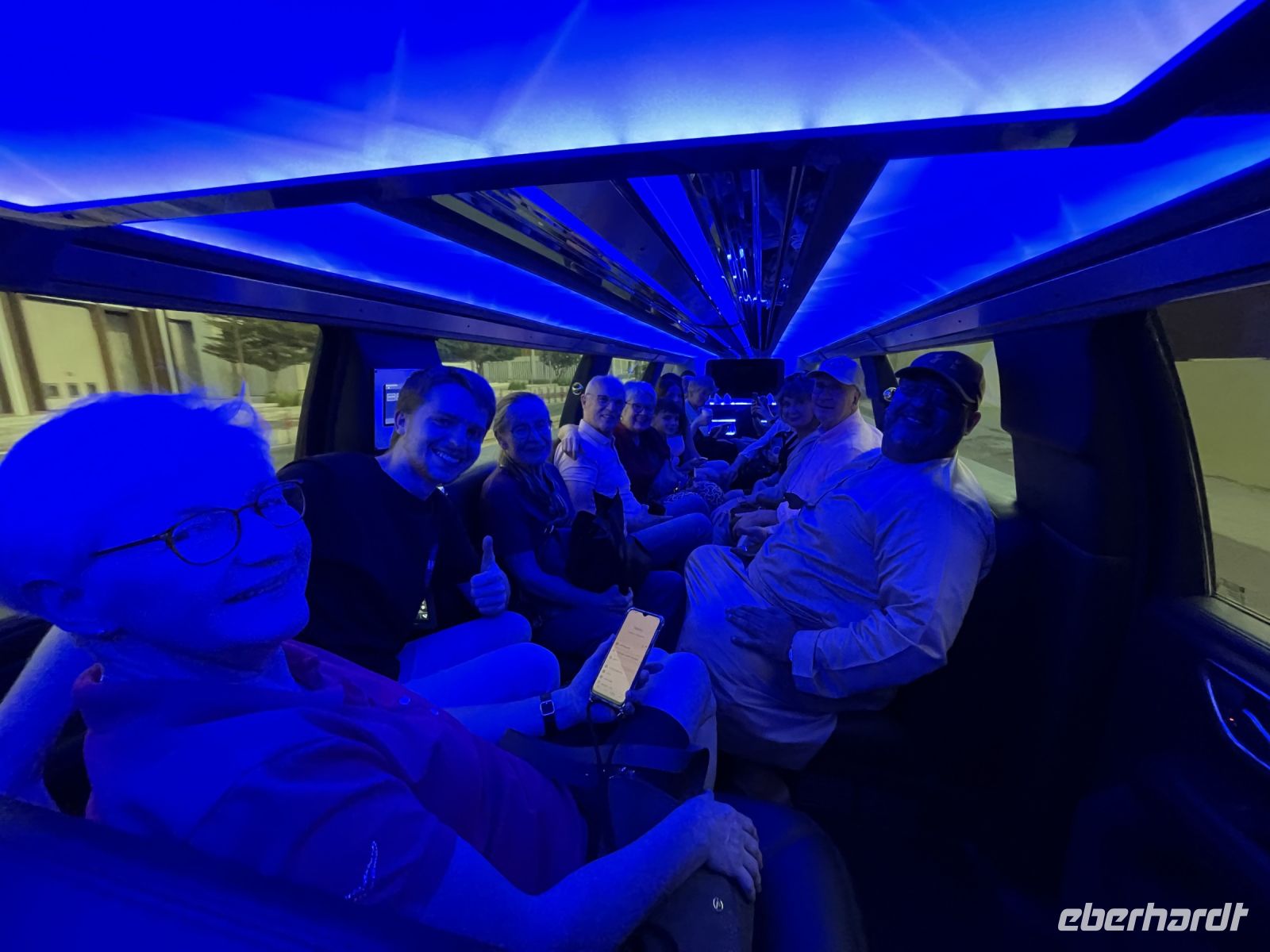 Um 17:30 Uhr treten wir die Rückfahrt nach Dubai an und gegen 20:00 Uhr erreichen wir wieder unser Hotel. Viele treffen sich mit mir noch einmal auf der Dachterrasse, um eine Kleinigkeit zu essen. Danach freuen wir uns nach einem langen Tag auf die Nachtruhe.