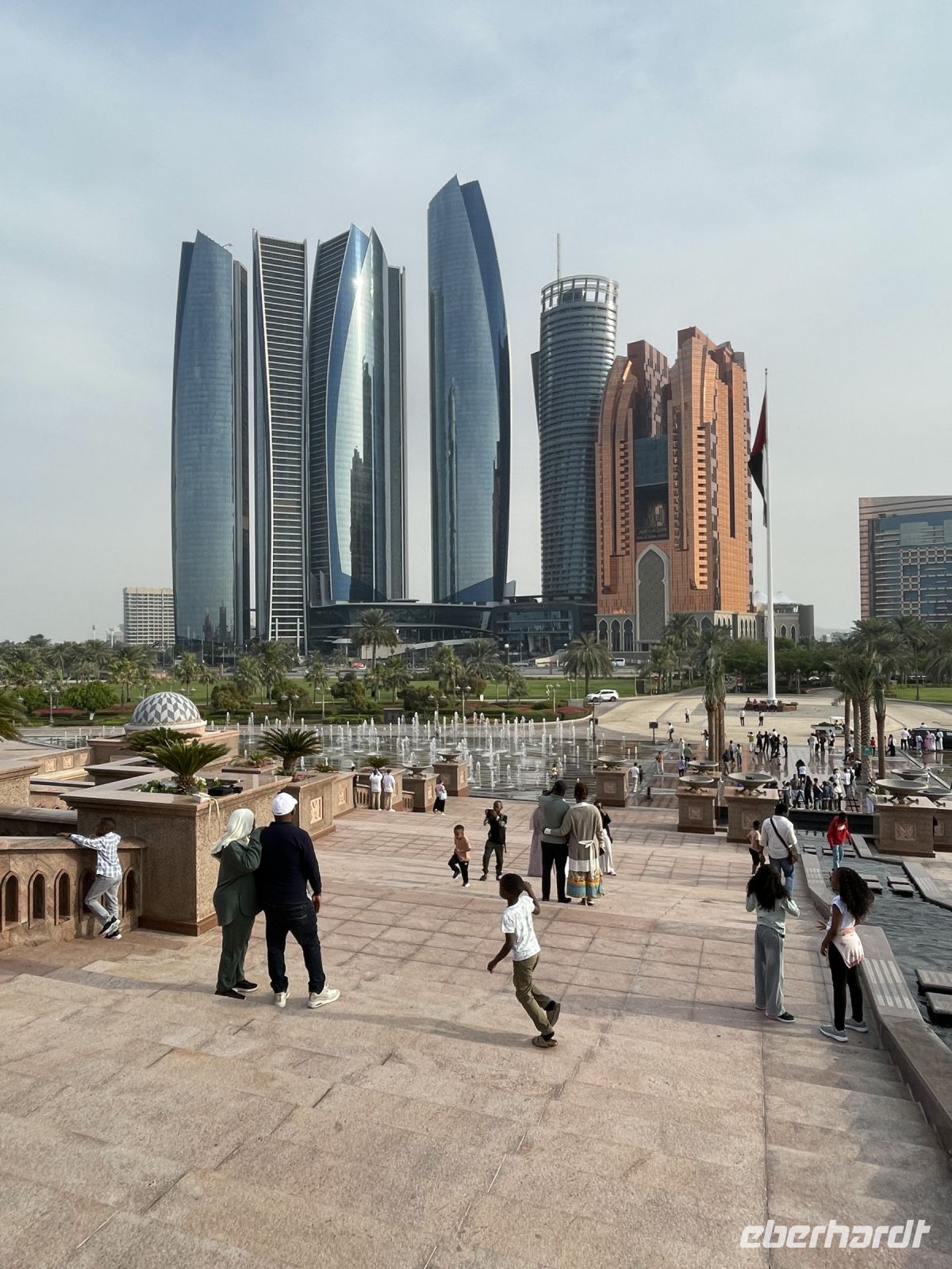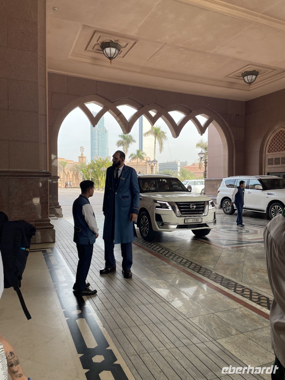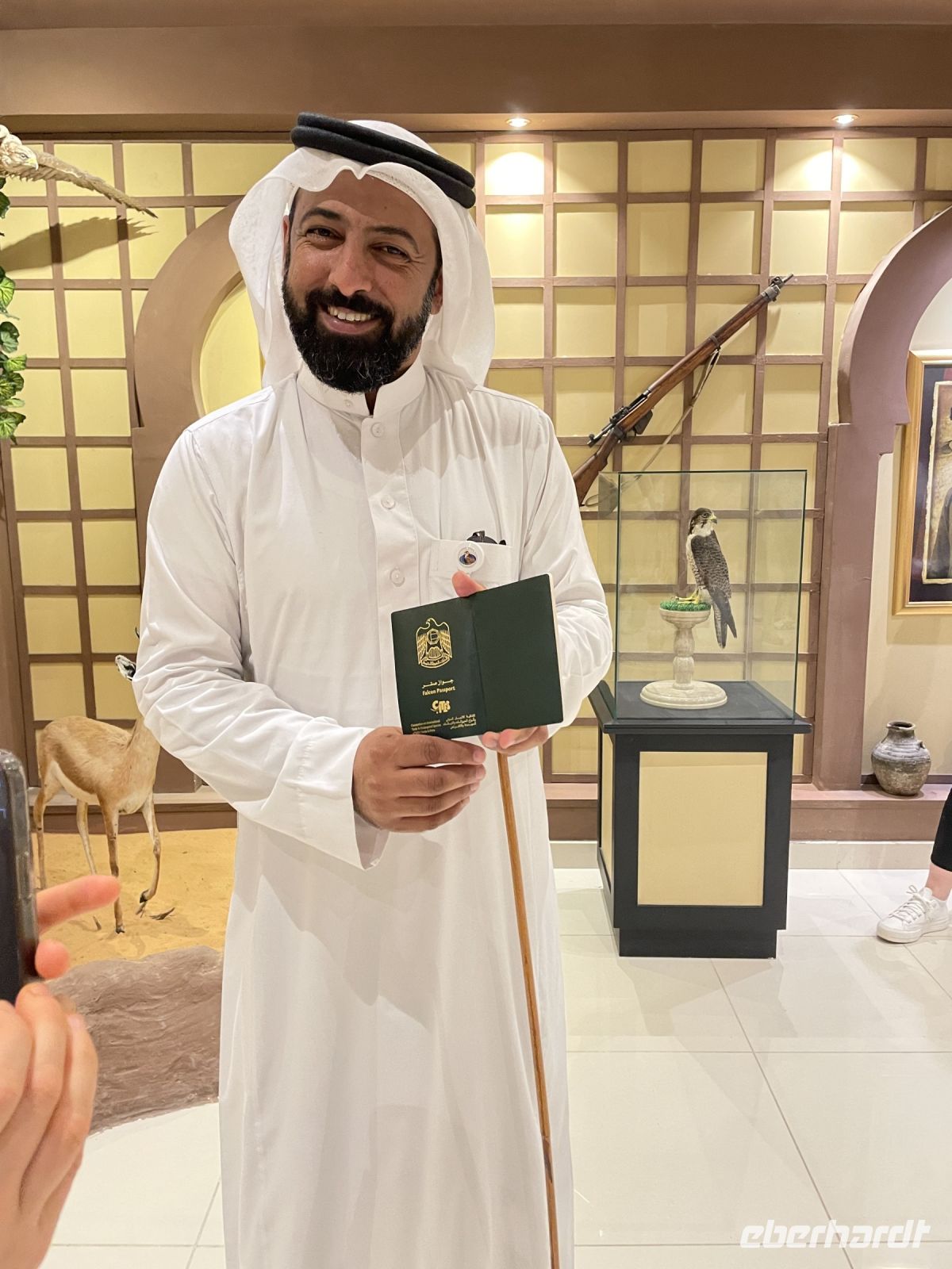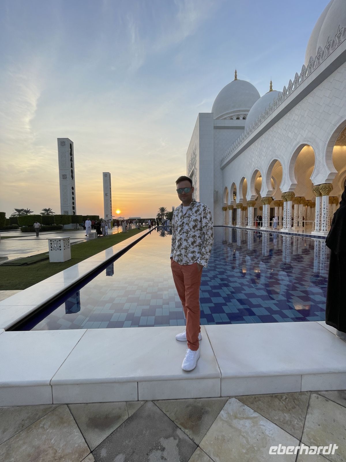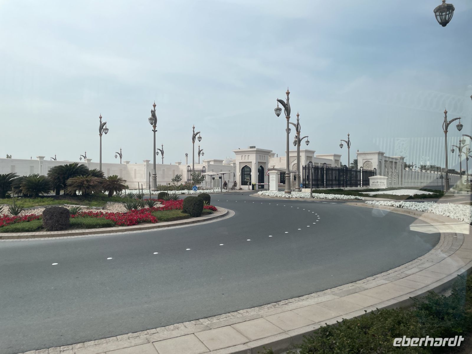 Nach dem Frühstück, brechen wir heute bereits um 8:00 Uhr auf. Gegen 9:50 Uhr erreichen wir die „Falkenklinik“ in Abu Dhabi, gegründet von Frau Dr. Müller – einer deutschen Tierärztin. Vor Ort werden wir vom Gästeführer Hasan herzlich begrüßt und durch die Klinik geführt. Wir dürfen sogar bei einer Routineuntersuchung über die Schultern schauen und erhalten dabei Erklärungen von den Tierpflegern. Anschließend besichtigen wir die Käfiganlagen der Falken sowie ein kleines Museum, in der man die Möglichkeit hat Fotos mit den Falken zu knipsen. Nach diesen einmaligen Eindrücken geht es zurück weiter Abu Dhabi. Um 12:50 Uhr stoppen wir für einen Fotostopp am Louvre Abu Dhabi. Anschließend fahren wir entlang der Corniche zum „Emirates Palace Hotel“, wo wir an einer stilvollen Teestunde teilnehmen. Wir genießen Kaffee oder Tee sowie feine Schnittchen und mit Gold belegte Törtchen in festlicher Atmosphäre. Danach setzen wir unsere Tour fort und fahren zur „Scheich-Zayid-Moschee“. Dort müssen alle Gäste lange Hosen und bedeckte Schultern tragen, die Damen zusätzlich ein Kopftuch. Reiseleiter Ibrahim verteilt die Tickets, und wir passieren gemeinsam die Sicherheitskontrolle. Danach erkunden wir die Moschee individuell.