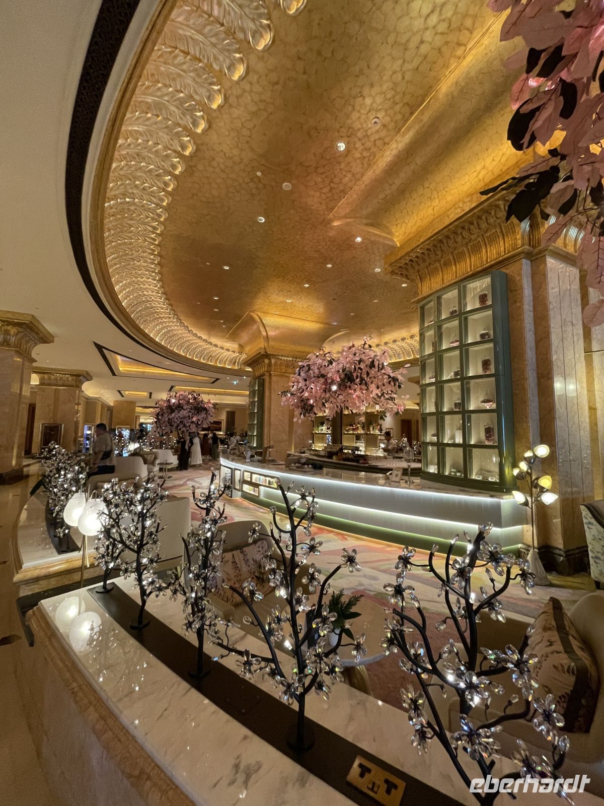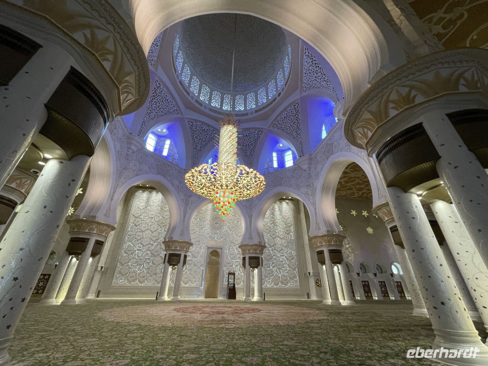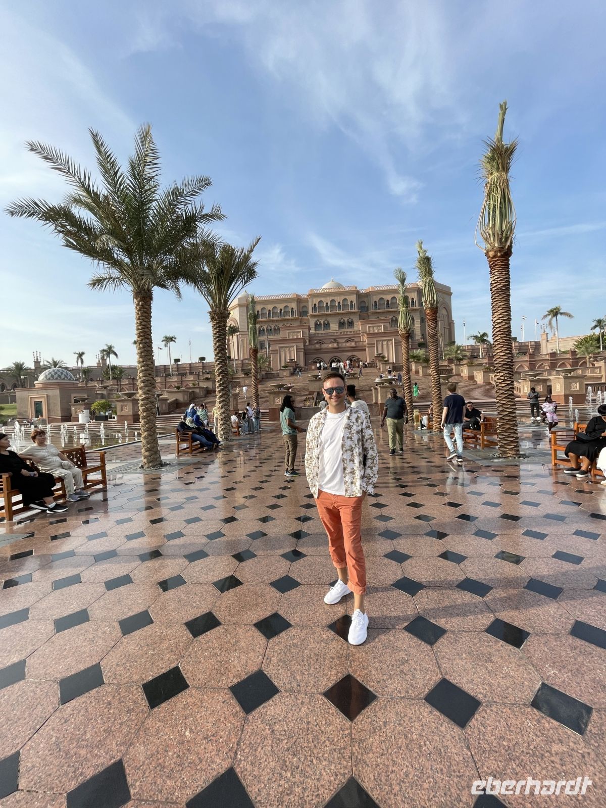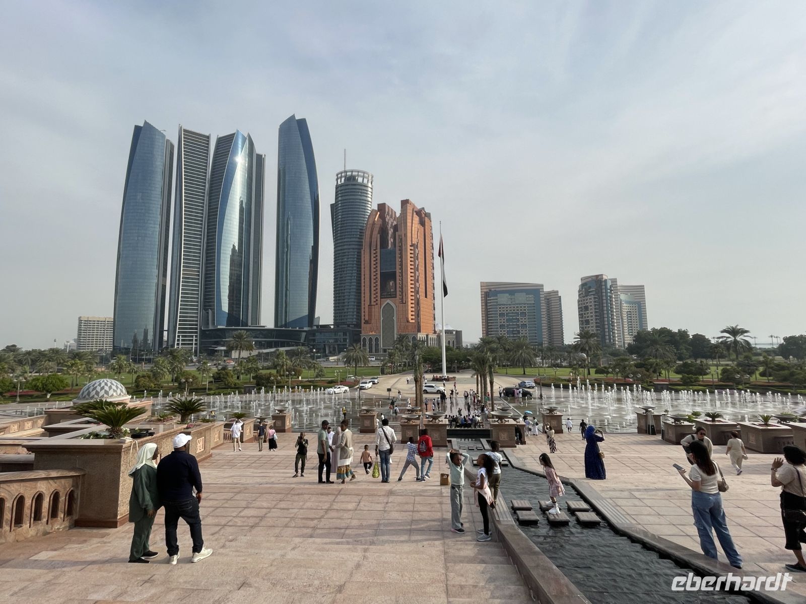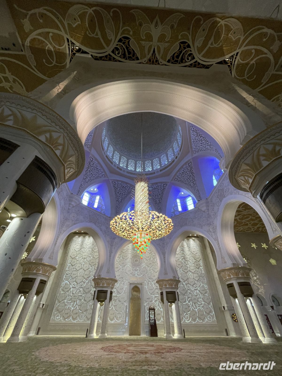 Nach dem Frühstück, brechen wir heute bereits um 8:00 Uhr auf. Gegen 9:50 Uhr erreichen wir die „Falkenklinik“ in Abu Dhabi, gegründet von Frau Dr. Müller – einer deutschen Tierärztin. Vor Ort werden wir vom Gästeführer Hasan herzlich begrüßt und durch die Klinik geführt. Wir dürfen sogar bei einer Routineuntersuchung über die Schultern schauen und erhalten dabei Erklärungen von den Tierpflegern. Anschließend besichtigen wir die Käfiganlagen der Falken sowie ein kleines Museum, in der man die Möglichkeit hat Fotos mit den Falken zu knipsen. Nach diesen einmaligen Eindrücken geht es zurück weiter Abu Dhabi. Um 12:50 Uhr stoppen wir für einen Fotostopp am Louvre Abu Dhabi. Anschließend fahren wir entlang der Corniche zum „Emirates Palace Hotel“, wo wir an einer stilvollen Teestunde teilnehmen. Wir genießen Kaffee oder Tee sowie feine Schnittchen und mit Gold belegte Törtchen in festlicher Atmosphäre. Danach setzen wir unsere Tour fort und fahren zur „Scheich-Zayid-Moschee“. Dort müssen alle Gäste lange Hosen und bedeckte Schultern tragen, die Damen zusätzlich ein Kopftuch. Reiseleiter Ibrahim verteilt die Tickets, und wir passieren gemeinsam die Sicherheitskontrolle. Danach erkunden wir die Moschee individuell.