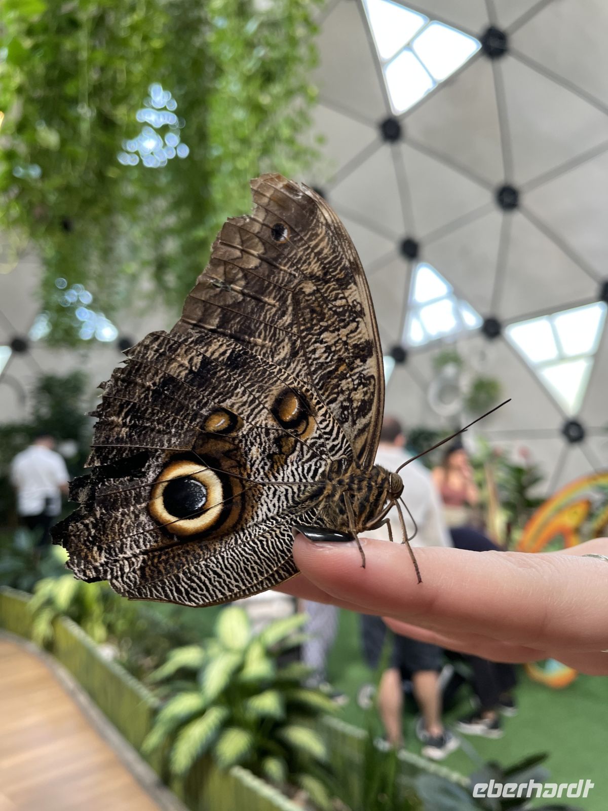 Der Tag beginnt mit einem Rundgang im Schmetterlingspark, wo wir verschiedene Schmetterlingsarten bestaunen und fotografieren können. Viele Schmetterlinge setzen sich sogar auf unsere Schultern und es entstehen tolle Schnappschüsse.