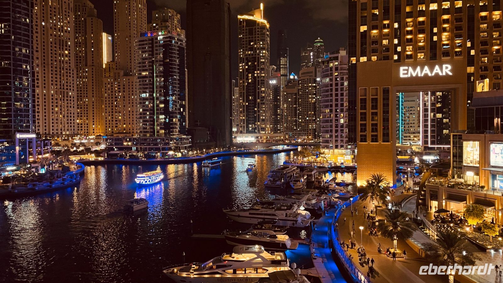 Danach kehren wir zum Yachthafen zurück und spazieren fünf Minuten zum Restaurant „Cargo“ am Pier7. Hier genießen wir köstliche/asiatische Spezialitäten, bevor wir gegen 20:00 Uhr zum Hotel zurückfahren. Dort angekommen, verabschieden wir uns von Reiseleiter Ibrahim sowie den Gästen, die mit Emirates fliegen. Danach bleibt noch etwas Zeit, um die Koffer zu packen.