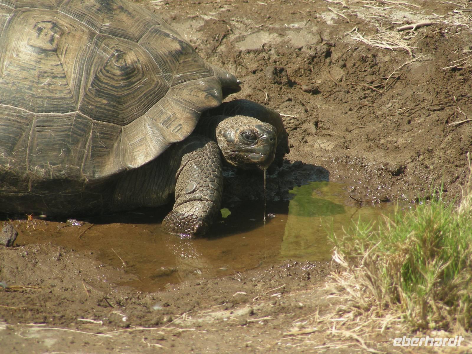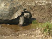 Um 7.45 booten wir am Landesteg in Villamil aus. Mit einem Bus fahren wir hoch zur Rangerstation auf 800 m Höhe am Vulkan Sierra Negra. Es regnet weiter. Wir gehen dennoch auf schlammigen Wegen hoch zum ersten Aussichtspunkt. Wie befürchtet: Der Nebel hat uns begleitet und die Caldera ist komplett im Nebel verschwunden. Wir gehen bzw. teilweise rutschen wir auch wieder retour und auch wenn der eine oder andere Bekanntschaft mit dem Schlamm macht: Es geht ohne Blessuren vonstatten. Wir fahren wieder retour nach Villamil und gehen in die Schildkröten Zuchtstation, wo die Unterarten der Vulkane Cerro Azul und Sierra Negra gezüchtet werden. Eine interessante Führung rundet den Besuch ab. Wir laufen über den Bohlenweg durch die Mangroven ins Dorf, sehen unterwegs noch die Winkerkrabben und etliche auch junge Meeresechsen. Im Dorf gibt es dann Freizeit und gegen 18.00 sind alle wieder an Bord.