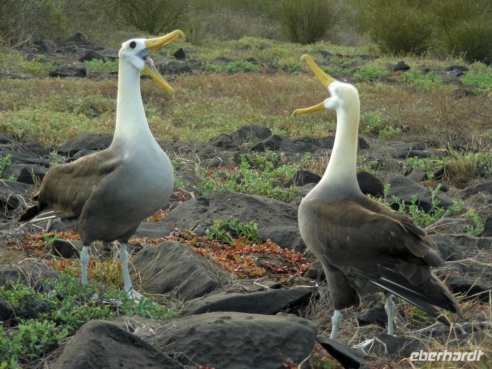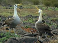 In der Nacht fährt die „Angelito" bei wirklich sehr rauer See nach Espaniola. Erst im Windschatten der kleinen Insel wird es besser. Um 7.45 nasse Landung am Gardner Strand, wo alle sich frei bewegen können. Seelöwen gibt es in großer Zahl. Die Espaniola Spottdrosseln und die Espaniola Lavaechsen sind gut zu sehen. Es tut gut einfach einmal so am Strand zu sein. Gegen 11.00 geht die „Angelito" Anker auf und verholt nach Punta Suarez, wo wir um 14.00 Uhr trocken landen. Der Landgang ist wieder phänomenal: Jede Menge Albatrosse, rote Meeresechsen und die Bussarde. An der Klippe sitzen wir lange und beobachten die Hochseevögel. Das Blasloch ist bei dem groben Seegang sehr beeindruckend. Das Sprühwasser wird gut 20 m hoch geschleudert. Und dann kommt ein Höhepunkt: Unmittelbar am Pfad, also keine 2 m entfernt, balzt ein Albatrosspaar in aller Seelenruhe direkt vor uns - wir sitzen davor und schauen einfach nur zu. Irgendwann reißen wir uns los und gehen durch die Naszatölpelkolonie zurück und gehen wieder an Bord.