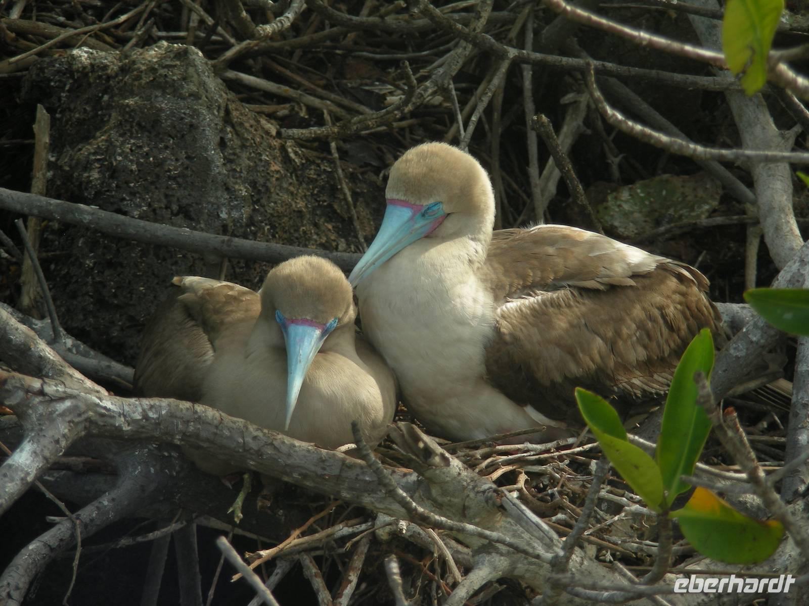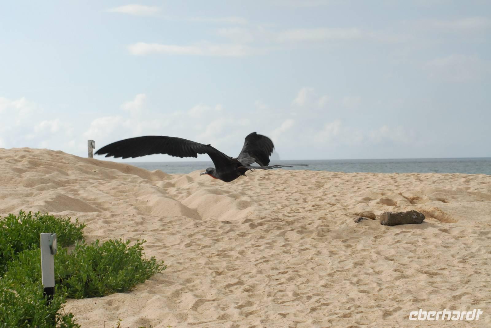 um 7.45 gehen wir mit einer nassen Landung am Strand von Genovesa an Land - und fallen buchstäblich über die Gabelschwanzmöven. Der Landgang hier ist unglaublich effektiv: Brütende Fregattvögel auf dem Nest zwangsläufig bis auf Kontakt, überall Rotfußtölpel, alle vier Finkenarten, Reiher, Winkerkrabben, eine traumhafte Botanik, da die Insel durch die Regenfälle grün ist - einfach nur toll. Nachmittags geht es zu den Prinz-Phillip-Steps mit einer trockenen Landung, aber zuvor finden wir noch ein Tropikvogelnest und etliche Seebären von der Panga aus. Der Palo Santo Wald ist voller Rotfuß- der Boden voller Naszatölpel. Auf der Hochebene fliegen soviele brütende Galapagos Wellenläufer, dass es wie ein Fliegenschwarm aussieht. Und dann finden wir noch drei Sumpfohreulen, davon 2 in guter Photodistanz. Auf dem Rückweg zu den Pangas sind überall Laubsängerfinken - ein toller Tag.