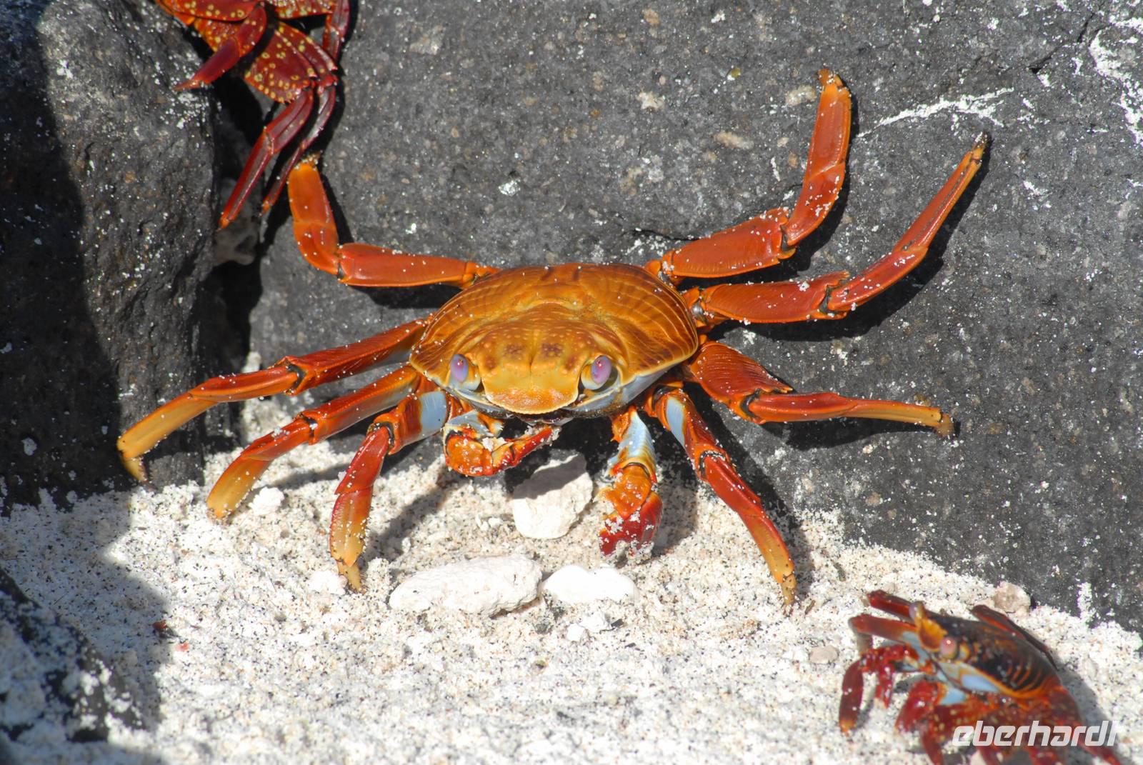 Am frühen Morgen verholt die Yacht nach Mosquera, wo wir um 7.45 eine etwas schwierige nasse Landung haben. Dann gibt es aber Seelöwen satt! Dazu finden wir noch einige verspätete Zugvögel, die ersten Darwinfinken und Skorpione. Gegen 9.45 sind wir retour an Bord und machen dann eine Fahrt mit dem Beiboot, hier Panga genannt, entlang der Küste von Seymour. Dort finden wir die ersten Seebären, sehen zwei Landleguane und machen Bekanntschaft mit den Gabelschwanzmöwen und Audubon Sturmtauchern - sehr eindrucksvoll! Um 12.00 sind wir zurück an Bord, Die Yacht fährt zur Westküste von Santa Cruz nach Cerro Dragon.