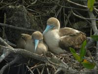 Es geht früh raus - um 4.45 holt uns der Bus ab und bringt uns zum Flughafen. Dort checken wir bei AEROGAL ein und fliegen pünktlich ab nach Baltra, wo uns Maja in Empfang nimmt. Wir gehen an Bord der „Angelito" und beziehen die Kabinen. Mit uns ist eine Gruppe Schweizer an Bord, die uns die erste Woche begleiten werden. Die Yacht verholt nach Las Bachas an der Nordküste der Insel Santa Cruz. Dort booten wir um 14.30 mit einer nassen Landung aus und haben den ersten Landgang in Galapagos. Er ist gut! Die ersten Meeresechsen und Seelöwen lösen Photographierwut aus. In den Lagunen sehen wir Flamingos, Bahamaenten und Stelzenläufer. Am Strand sind die Nester von Seeschildkröten - und in einem schlüpfen bei dem bedeckten Himmel kleine Schildkröten - aber keine Chance für sie: Ein Fregattvogel und ein Kanadareiher holen die letzten aus dem Nest und fressen sie vor unseren Augen - schon ein Erlebnis! Nach einem kurzen Bad im Meer geht es retour an Bord.