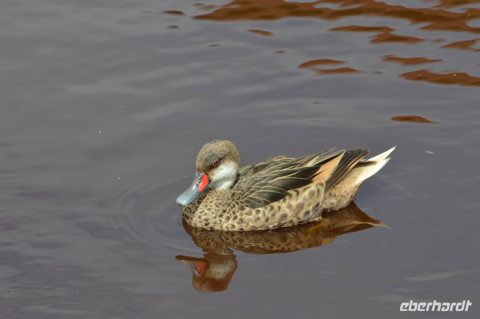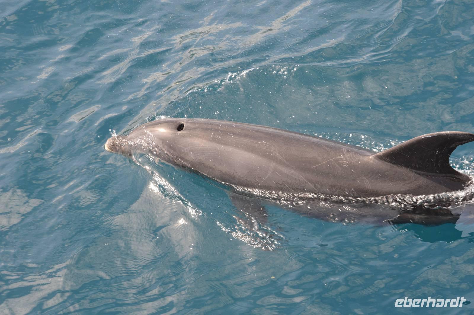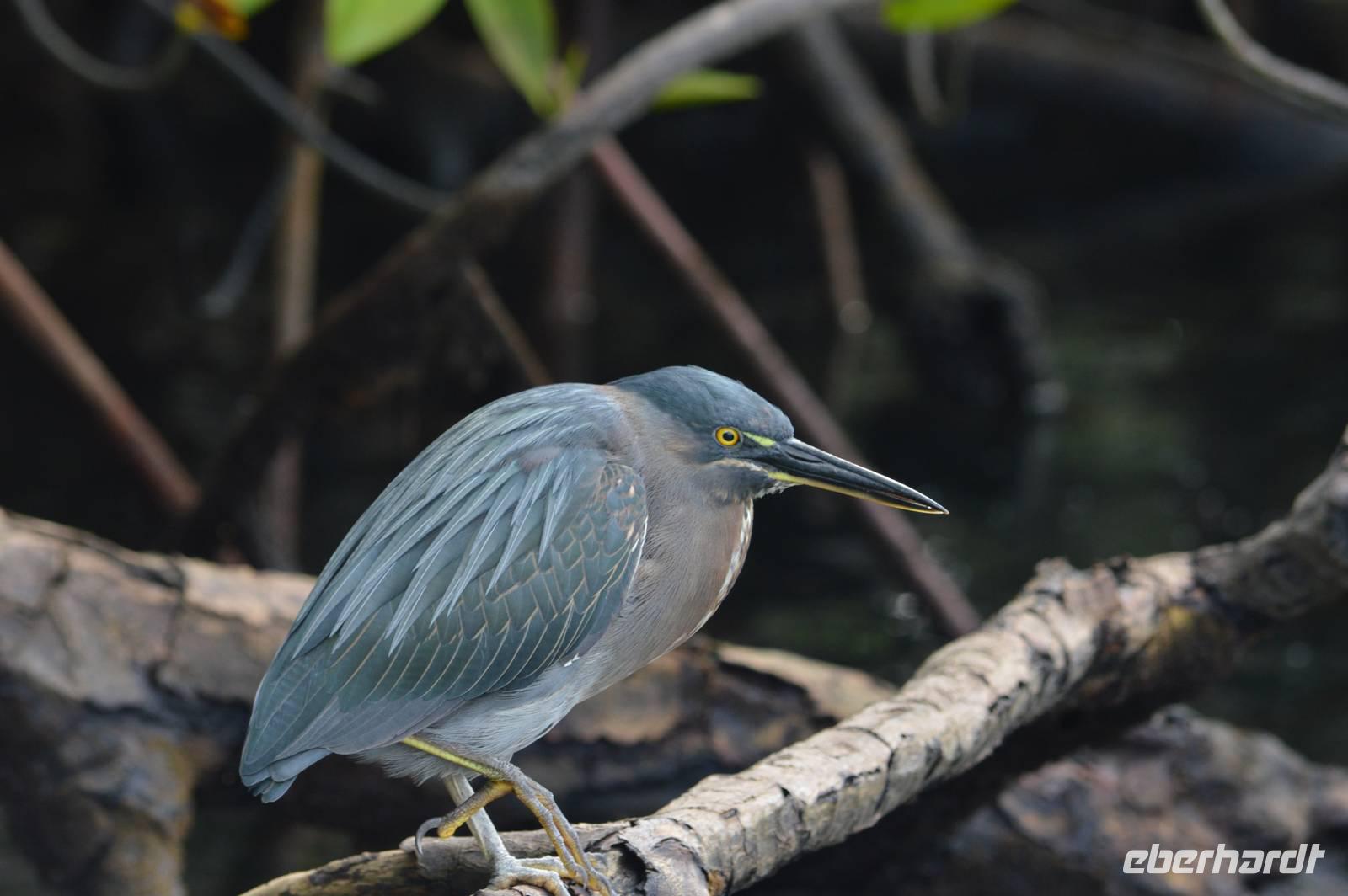 14.00: Nur mit den Pangas geht es in die Mangrovenlagunen. Sichtungen von Pinguinen auch beim Fischfang sind sehr gut. Seeschildkröten sind da, aber wenige, da die Saison für sie zu Ende geht. Dafür finden wir einen schönen Schwarm Goldrochen im kristallklaren Wasser. Nach der Rückkehr an Bord verholt die Yacht nach Punta Moreno.