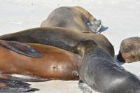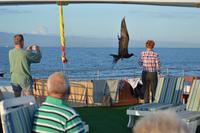 Um 13.00 Uhr machen wir eine trockene Landung in Plaza, wobei erst die Seelöwen davon überzeugt werden müssen den Landeplatz frei zu geben. Danach stolpern wir quasi von einem Landleguan zum nächsten und haben Kaktusfinken überall. An der Klippenkante ist noch einmal Flugtag angesetzt, dieses Mal für die Audubons und die Tropikvögel, die dort nisten - also wieder ein El Dorado für die Photographen. Im „Seelöwen- Erholungsheim“ liegen die Bullen und erholen sich vom Haremsstreß - bis zum nächsten Mal. Der Portulak blüht, was bedeutet, dass die Landleguane im Portulakfeld wie die Kühe unterwegs sind und die gelben Blüten fressen - und nur die Blüten! Wir beobachten einen Fregattvogel, der eine junge Gabelschwanzmöwe packt, in der Luft tötet und frißt. Gegen 16.00 sind wir an Bord. Die „Angelito“ fährt sofort los in den Kanal zwischen Baltra und Santa Cruz, wo sie für die kommende Woche verproviantiert.