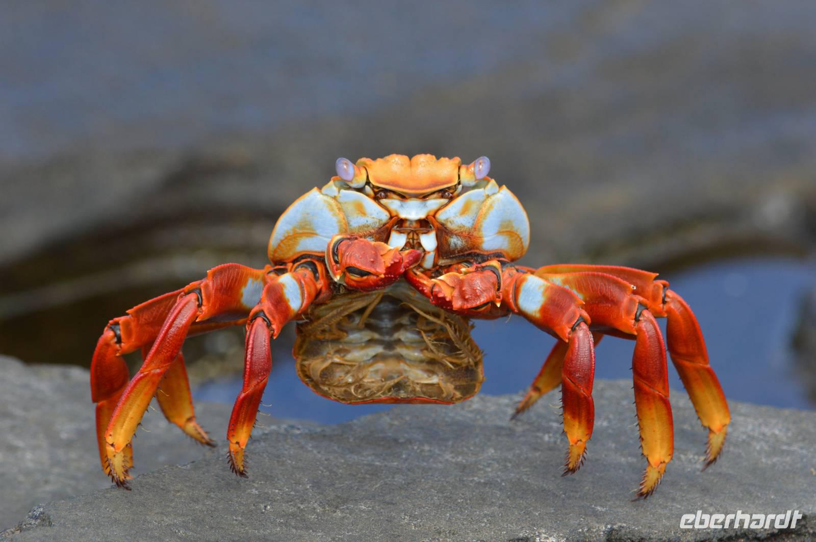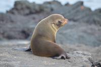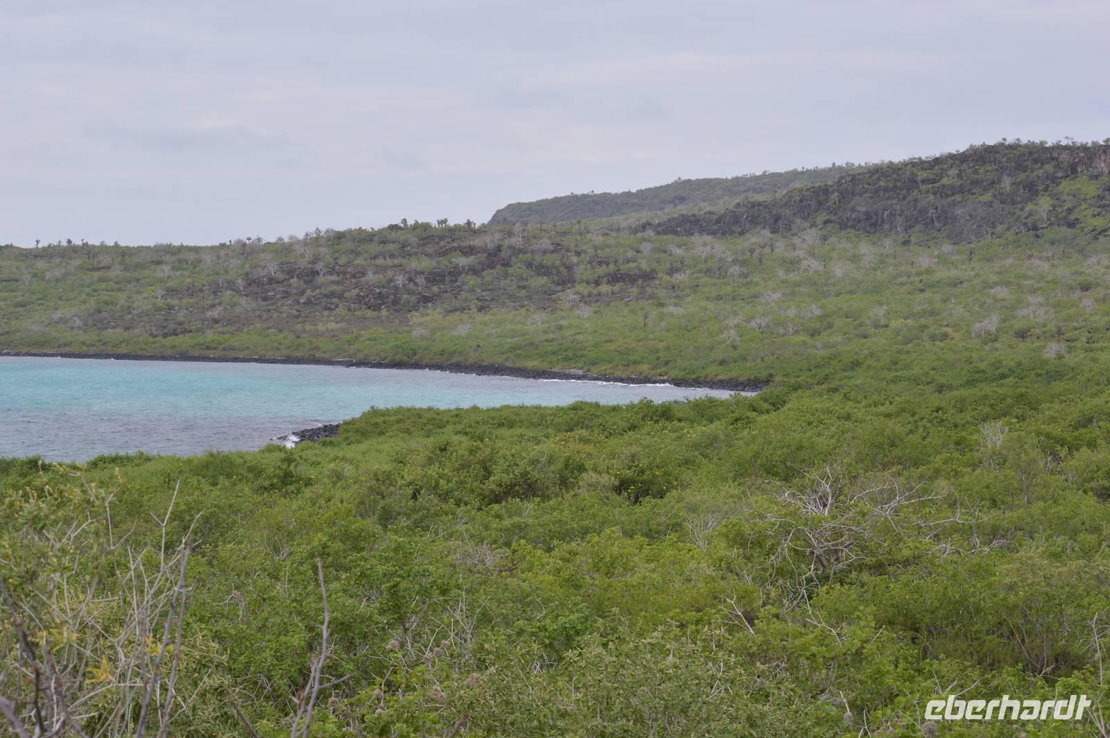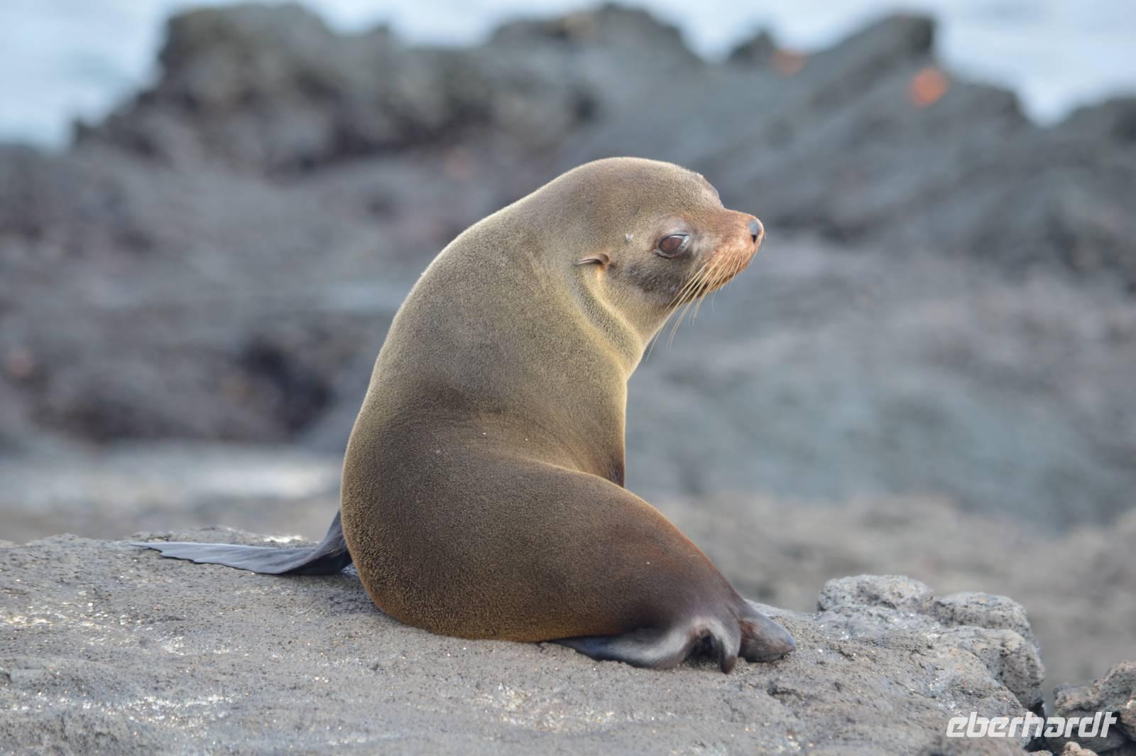 Auch diese Überfahrt ist wieder ruhig. Der Spuk der letzten Tage scheint vorbei. Um 6.45 gehen wir mit einer einfachen nassen Landung in Puerto Egas an Land und laufen dann sofort durch das grüne Innere zur Küste vor, wo die Seebären sind. Da es bedeckt sind, haben wir dort dann wirklich viele und auch sehr aktive Seebären, die wir lange beobachten können: Eine phantastische Gelegenheit die Biologie dieser eigentlich aus der Antarktis stammenden Seebären zu verstehen. Zurück geht es entlang der Küste am Felswatt vorbei, wo die großen Meeresechsen und etliche Limicolen sind. Die Strandvegetation ist bemerkenswert, vor allem, da Winden wie die Ipomea pes-caprae gerade blühen.