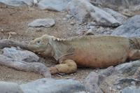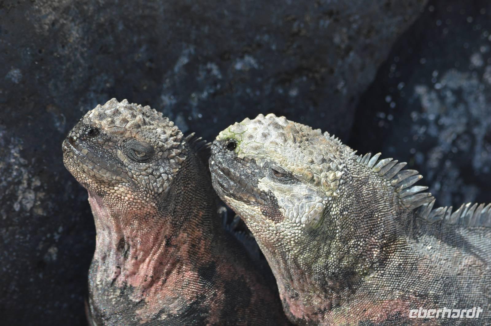 14.00: Trockene, etwas schwierige Landung in Punta Espinosa, wo uns gleich Hunderte Meeresechsen den Weg versperren. Wir müssen aufpassen, wo wir hintreten, da die Echsen überall sind. Dazwischen sind die großen Lavaechsen aktiv, Klippenkrabben krabbeln teilweise auf den Echsen. Wir beobachten die Meeresechsen sehr lange und gehen dann weiter die Halbinsel entlang. Überall sind weitere Echsenkolonien, viele flugunfähige Kormorane und im Meer Seeschildkröten. Als Krönung schlagen zwei Bussarde eine Meeresechse und fressen an dieser - und das quasi wenige Meter vor uns. Gegen 17.30 sind wir wieder zurück an Bord.