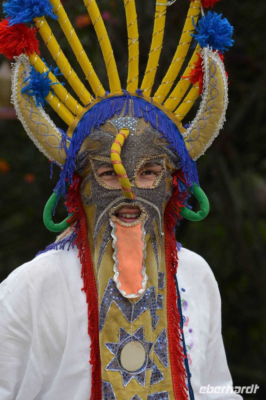 Um 8.30 fahren wir mit Martha und dem Bus ab und zuerst zum Pululahua Krater, der morgens wie in dieser Jahreszeit fast normal, noch offen ist. Der Blick auf den Kraterboden mit der intensiven Landwirtschaft ist sehr gut. Erste Vogelbeobachtungen u.a. von einem Riesenkolibri werden gemacht und auch der wunderbaren Gebirgsflora wird Augenmerk geschenkt. Danach geht es direkt mit einer kurzen Fahrt zum Äquatormuseum Inti-Nan, wo der örtliche Führer Daniel uns führt und die Versuche erklärt, die zeigen, dass man tatsächlich auf dem auch per Satellit vermessenen Ort ist, wo der Äquator liegt. Anschließend gehe ich mit der Gruppe zu einer benachbarten Cuyeria, wo wir das landesübliche Chicha und zwei Meerschweinchen verkosten. Letztere sind sehr lecker gewesen und wurden auch von fast allen Gästen probiert und für gut befunden.