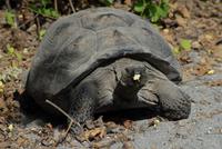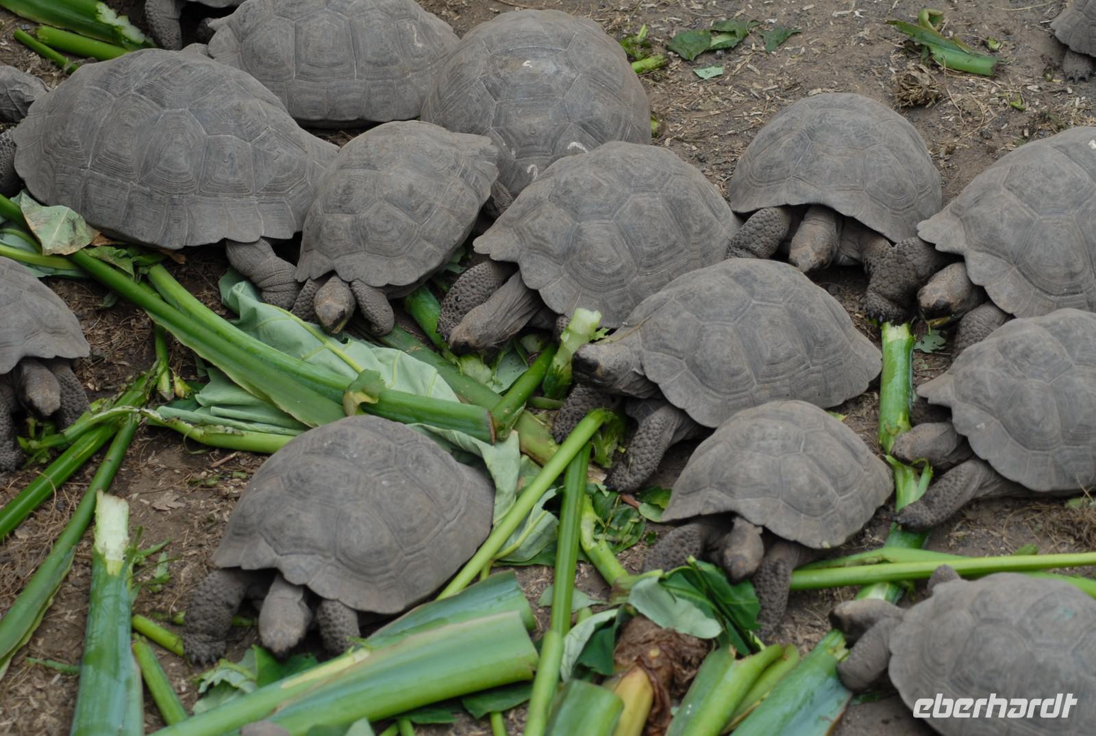 In der Nacht verholte die „Angelito" in die Urvinabucht. Beim Landgang gab es mit einer Panga ein Problem, da wie aus dem Nichts eine Serie ziemlich hoher und steiler Wellen auftauchte. Der Pangaführer verstand aber sein Handwerk, auch wenn es eine ziemlich feuchte Angelegenheit wurde. Alle hatten zum Glück die Kameras etc. in Plastiktüten eingewickelt. An Land dann DIE Überraschung: Insgesamt 13 Riesenschildkröten, darunter auch Jungtiere, und 15 Landleguane plus Vögel plus Pflanzen plus ein Felswatt, in dem dann noch Oktopusse gefunden wurden. Die Photographen hatten mehr als genug zu tun, um hinterher zu kommen. Der Landgang war extrem erfolgreich.