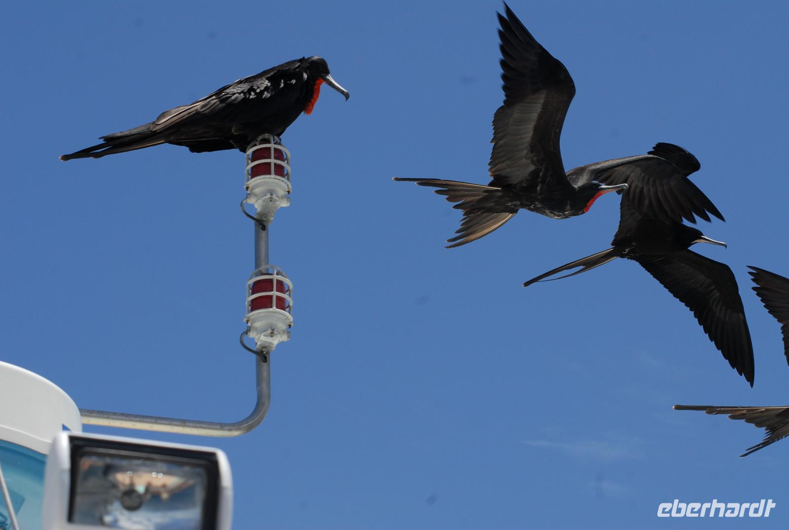 Nach Rückkehr an Bord verholte die „Angelito" in die Bahia Elizabeth. Dort gabs dann eine ruhige Pangafahrt in die Mangrovewälder, wor wir sehr viele grüne Meeresschildkröten und sogar eine Karettschildkröte sahen - von Pinguinen, Tölpeln und Pelikanen ganz zu schweigen: Die waren überall.