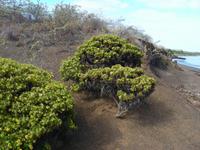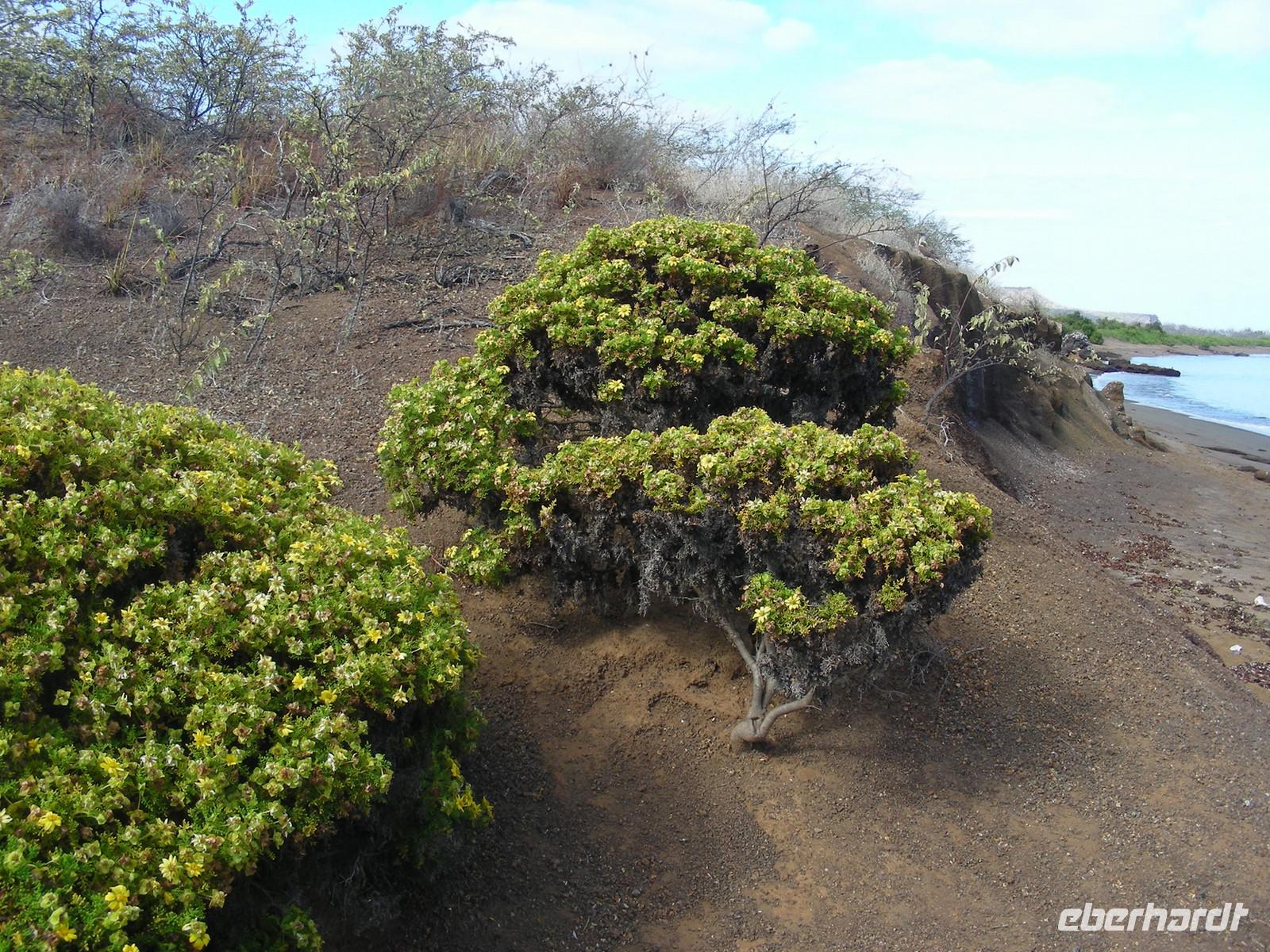 In der Nacht verholt die Angelito nach Floreana. Ein kurzer Weg führt uns zunächst an den Stachelrochenstrand, wo auch tatsächlich sehr sehr viele Stachelrochen im Flachwasser zu finden sind. Die große Lagune bietet heute nicht viel: Nur zwei Flamingos, ein einsamer Lavareiher und ein Stelzenläufer sind zu sehen. Dafür blühen die endemischen Lectocarpusbüsche und die Scalesia villosa sehr schön. Zwei Brutpaare Blaufußtölpel haben schon je ein Jungtier.