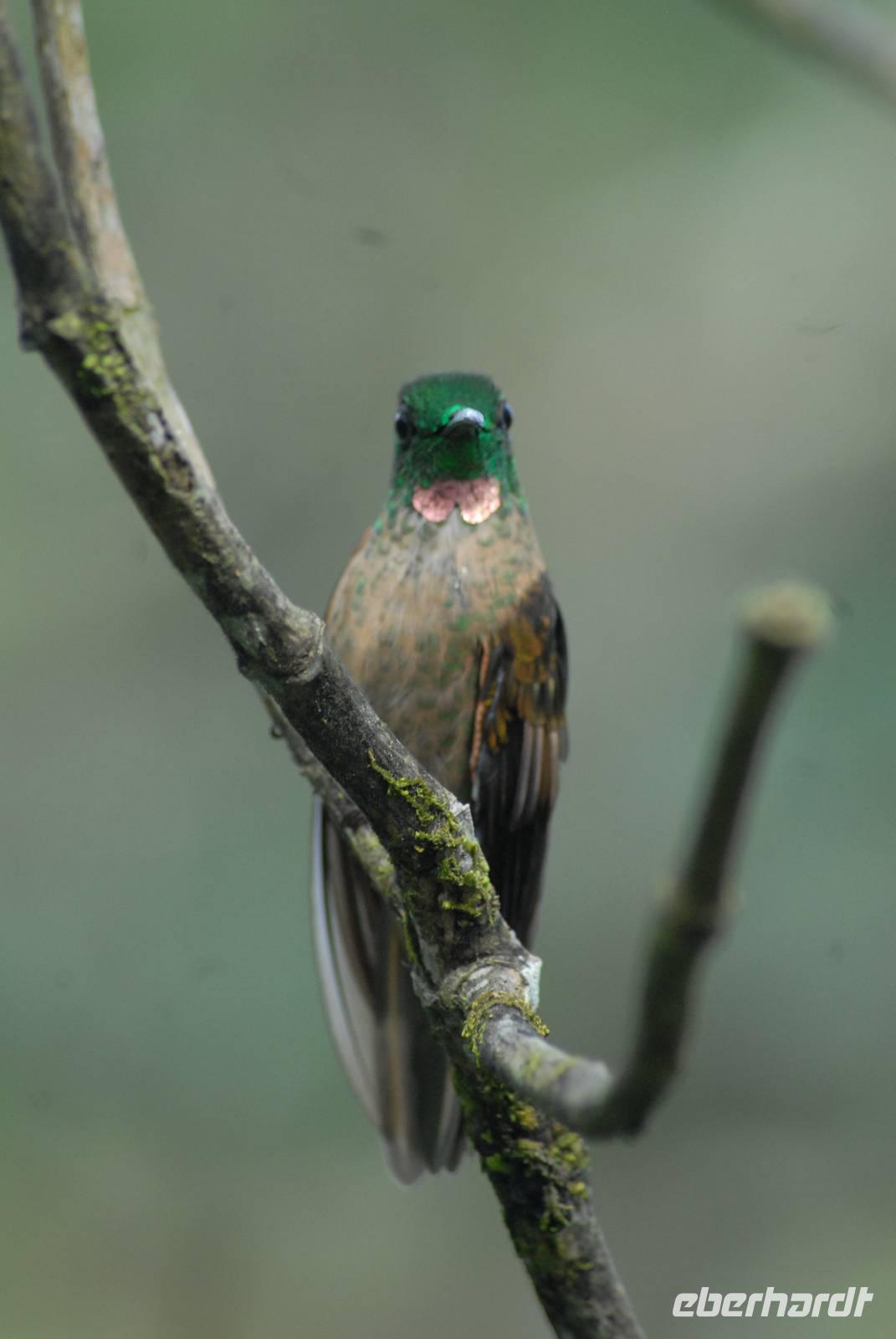 Um 6.15 Uhr findet die erste Vogelbeobachtungswanderung statt, wobei man da nicht viel wandern muss, denn die Vögel kommen in die Lodge, besonders die Kolibris. Aber daneben gab es eine Menge Arten, die wir gut beobachten konnten, auch die seltenen Andentukane. Nach dem späteren Frühstück gingen wir gleich wieder los auf anderen Wegen und fanden neben einem riesigen gut 1 m langen Riesenregenwurm auch viele weitere Vogelarten. Die „Ausbeute" war erstaunlich. Gekrönt wurde das Ganze nach dem Mittagessen: Mit dem Bus fuhren wir ca. 1.000 Höhenmeter tiefer und fanden eine komplett andere Avifauna vor - sehr beeindruckend! In dem „Kolibriparadies" waren es dann buchstäblich 13 neue Kolibriarten, die wir in kürzester Zeit sahen, dazu etliche Tangaren und Euphonias. Der Platz ist schon unglaublich und die Differenz in den Arten zum 1.000 m höher liegenden Bellavista sehr beeindruckend.
