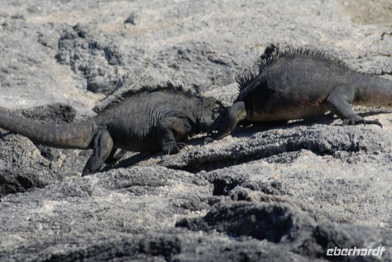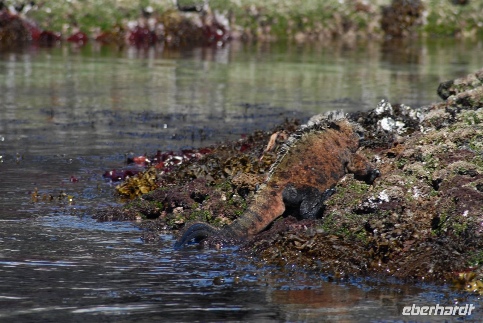 Auch hier hatten wir eine trockene Landung und standen dann vor hunderten von großen Meeresechsen und einer Schlange! Die Männchen der Meeresechsen zeigten uns ihre Kommentkämpfe und die Kormorane standen direkt vor uns auf ihren Nestern, ebenso wie ein Austernfischer. Punta Espinoza ist wirklich einer der besten Punkte im Archipel. Im Wasser um die Yacht waren jede Menge Seeschildkröten zu sehen.