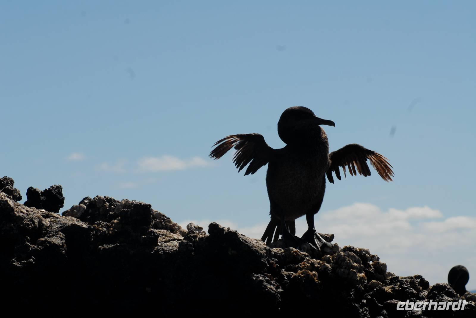 Sofort nach dem Einlaufen in die Tagusbucht gehen wir mit einer trockenen Landung von Bord und laufen den Trail hoch zum Darwinkrater. Es war heiß aber die Finken waren trotzdem schon unterwegs und die endemische Botanik bot so einiges. Nach Rückkehr machten wir sofort einen Pangaride entlang der Küste und kamen dicht an Pinguine, Pelikane und flugunfähige Kormorane heran. Danach erfolgte das Verholen nach Fernandina nach Punta Espinoza.