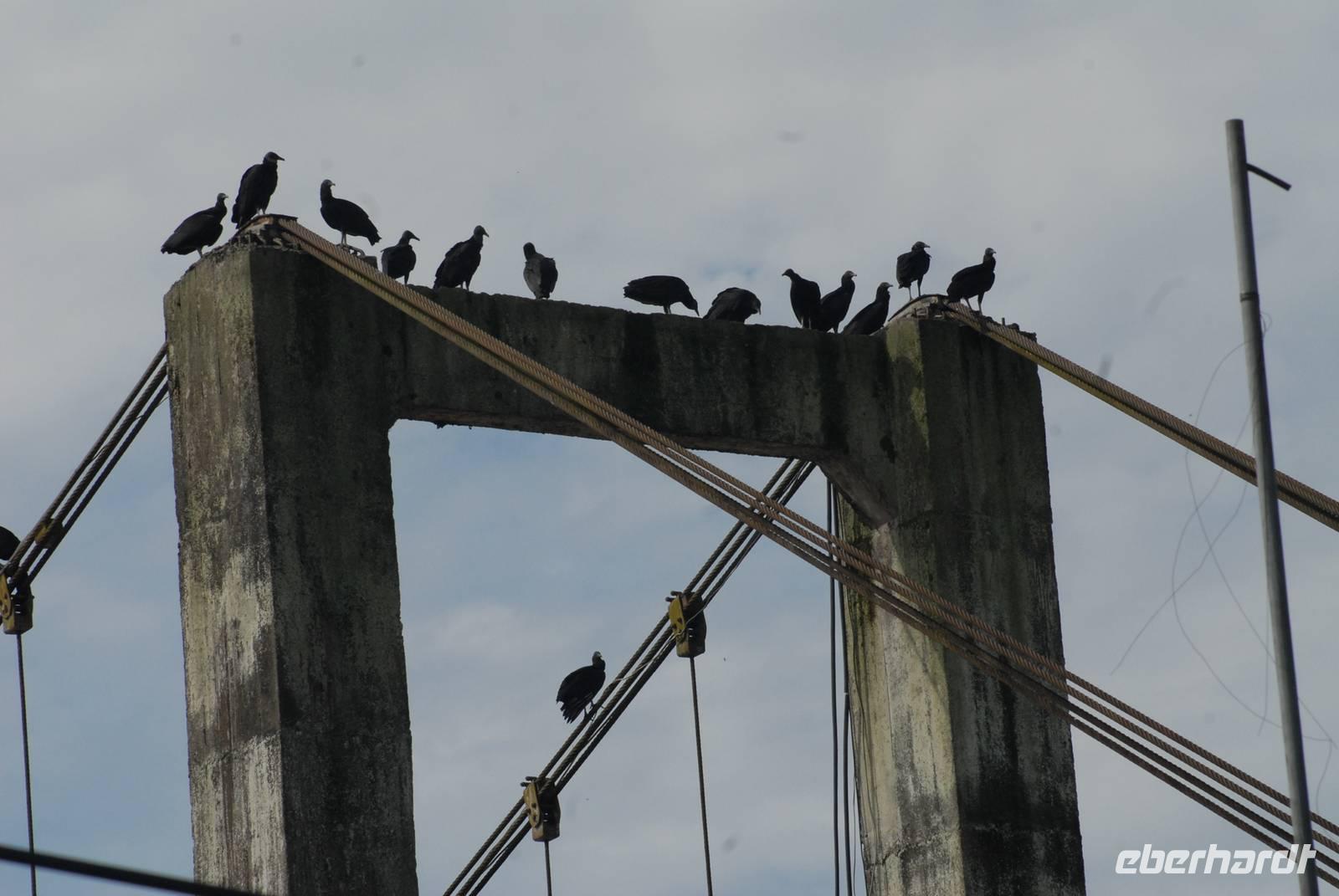 Nach dem Frühstück ging es Richtung Puyo, der „Balsa Hauptstadt" im Regenwald. Unterwegs gab es einige Photostops, unter anderem an den hängenden Nestern der Oropendulas und Caciquen. In Puyo stand natürlich Balsa und Balsaprodukte im Vordergrund. Nach einem kurzen Stop ging es dann ins sehr schöne Pastazatal, wobei auch das Wetter mitspielte. Weitete Photostops folgten. An der Teufelsschlucht stiegen wir bis ganz unten ab, fanden viele und große Orchideenarten blühend und standen dann vor dem Wasserfall: Beeindruckend. Weiter gings dann zu einer Seilfähre über den Pastaza, die allerdings in gut 300 m Höhe über dem Pastaza verlief. Einige fanden das so spannend, dass sie gleich zweimal über die Schlucht fuhren - andere blieben lieber auf festem Boden.