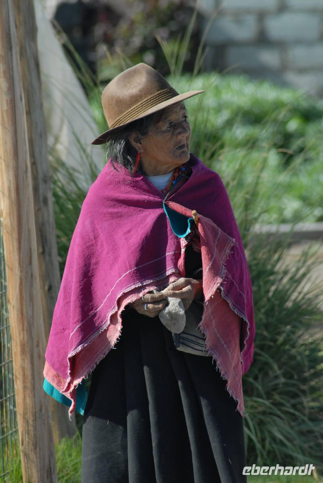 Um 08.00 Uhr checken wir aus dem Alameda aus und fahren nach Norden. Da am Tag zuvor Feiertag in Ecuador war, gefolgt von einem Brückentag, ist ein starker Verkehr auf der neuen Panamericana. Wir fahren daher streckenweise auf der alten, sehr kurvenreichen Panamericana nach Norden und genießen die Fahrt durch die kleinen Dörfer. Da das Wetter nicht gut aussieht, geht's erst zur Cuicocha Lagune, wo wir einen netten, stark botanisch orientierten Weg machen. Die Sicht trübt sich ein. Daher machen wir in Cotacachi eine Pause, essen dort auch zu Mittag. Danach gibt es etwas Freizeit für Einkäufe in der Lederstadt Cotacachi. Danach geht es direkt zur geschichtsträchtigen Hacienda Pinsaqui, wo es dann abends noch ein kleines Konzert mit den Waukis gibt. Danach gibt es Begrüßungsdrinks von EBERHARDT.