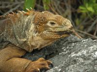 Am frühen Morgen verholt die Yacht nach Urvina/Westküste von Isabela. Wieder haben wir eine frühe nasse Landung. Drei Gäste gehen nur den kurzen Weg mit, die anderen den langen über das gehobene Riff. Fast sofort am Beginn des Trails finden wir die ersten Aldabra Riesenschildkröten, Jungtiere! Und wenig später sind auch die ersten Landleguane da. Der Landgang erweist sich bezogen auf diese beiden Arten als sehr erfolgreich. Immerhin 9 Riesenschildkröten, davon 3 wirklich große, finden wir, ebenso 13 Landleguane. Leider kam es im Felswatt bei einem der Gäste zu einem Sturz, der zum Glück außer Prellungen, einigen kleinen Verletzungen und einer ziemlichen Zerrung am Handgelenk ohne größere Blessuren abging.