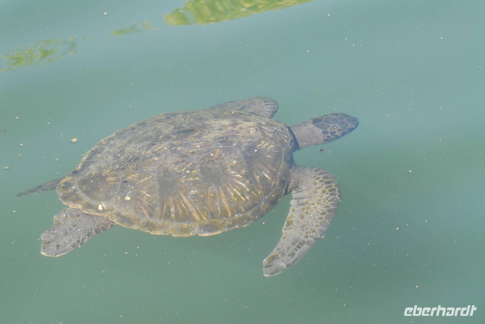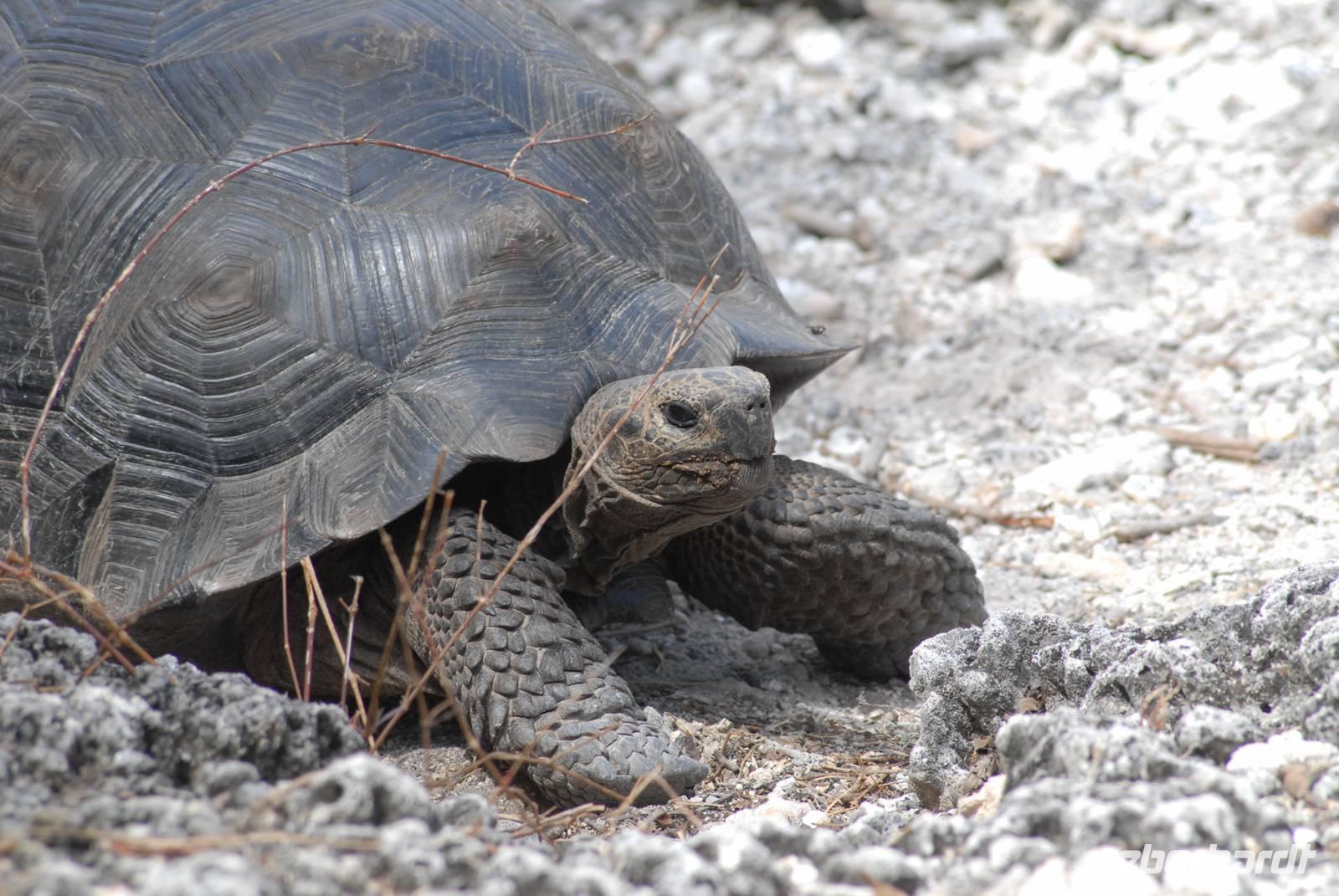 Nach kurzem Verholen sind wir vor Urbina. Die Landung erfolgt früh. Wir gehen durch dichte Vegetation und dann über ein herausgehobenes Riff. Der Lohn sind 10 (!) Landschildkröten, viele Landleguane und jede Menge Finken. Es war einfach toll. Zurück an Bord fährt die Yacht nach Süden zur Bahia Elizabeth. Dort machen wir am Nachmittag eine Rundfahrt mit den Pangas in den Mangroveteichen - mit unglaublich vielen Meeresschildkröten, Pinguinen und Reihern. Die Yacht verholt dann noch bis vor Punta Moreno, weil am kommenden Tag die lange Umfahrung von Isabela im Süden stattfinden wird.