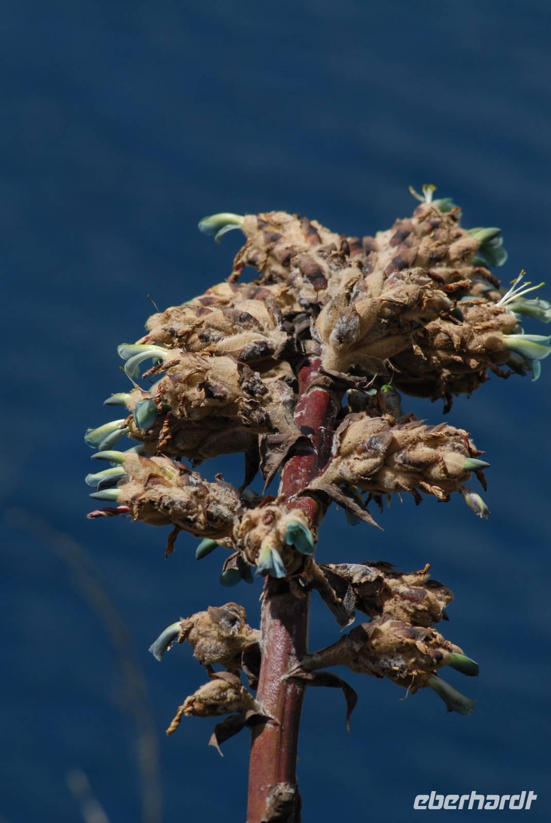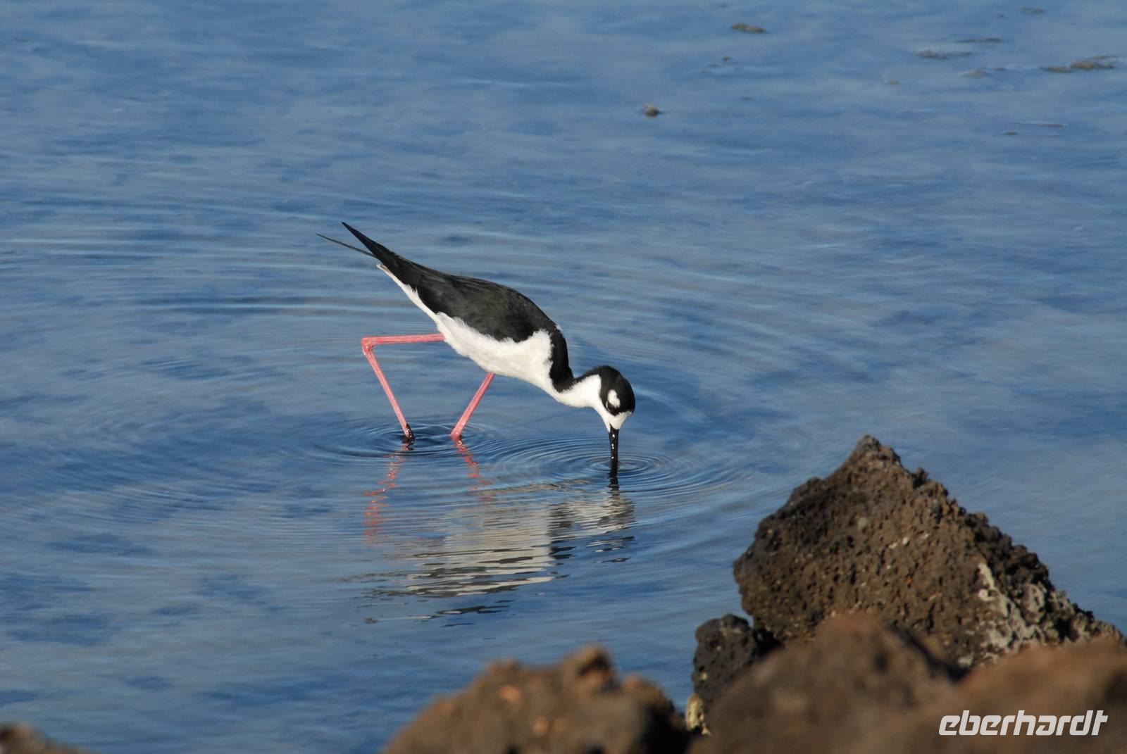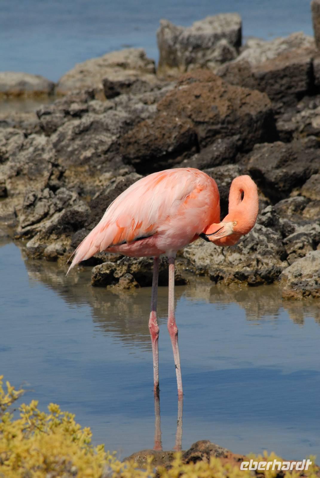 Nachts setzt die Yacht über nach Floreana, wo wir morgens sehr früh ausbooteten und an den Stachelrochenstrand gingen. In der Lagune waren über 20 Flamingos und die endemischen Pflanzenarten waren in Vollblüte - ein schöner, erfolgreicher Landgang. Nach Rückkehr erfolgte für die erfahrenen Schnorchler das Schnorcheln an der Teufelskrone, die anderen fuhren mit der „Angelito" um die Teufelskrone herum. Dann gings in die Postoffice Bucht mit einem Besuch der Posttonne, wo Postkarten eingelegt und andere mitgenommen wurden. Danach fuhren wir sofort nach Santa Cruz/Puerto Ayora. Unterwegs sahen wir an einer Stelle sehr viele Albatrosse beim Fischen.