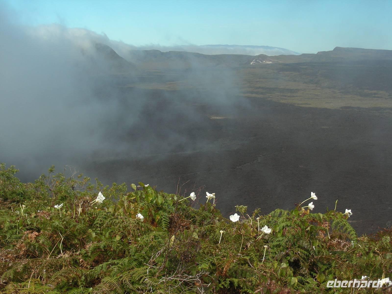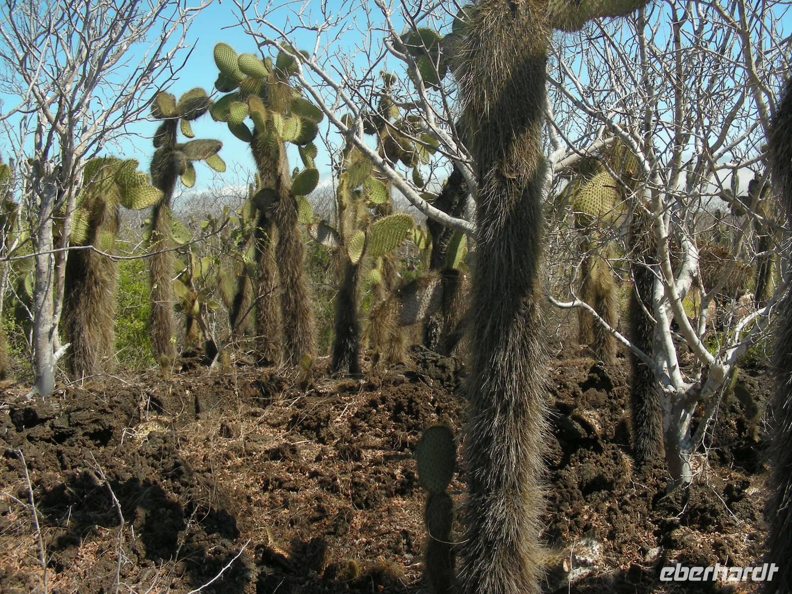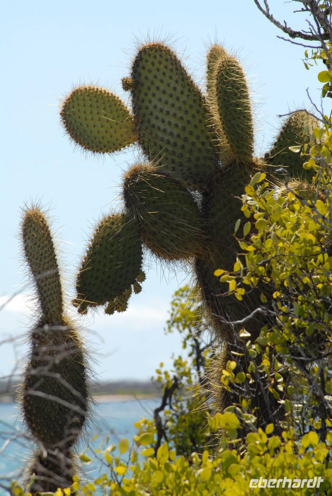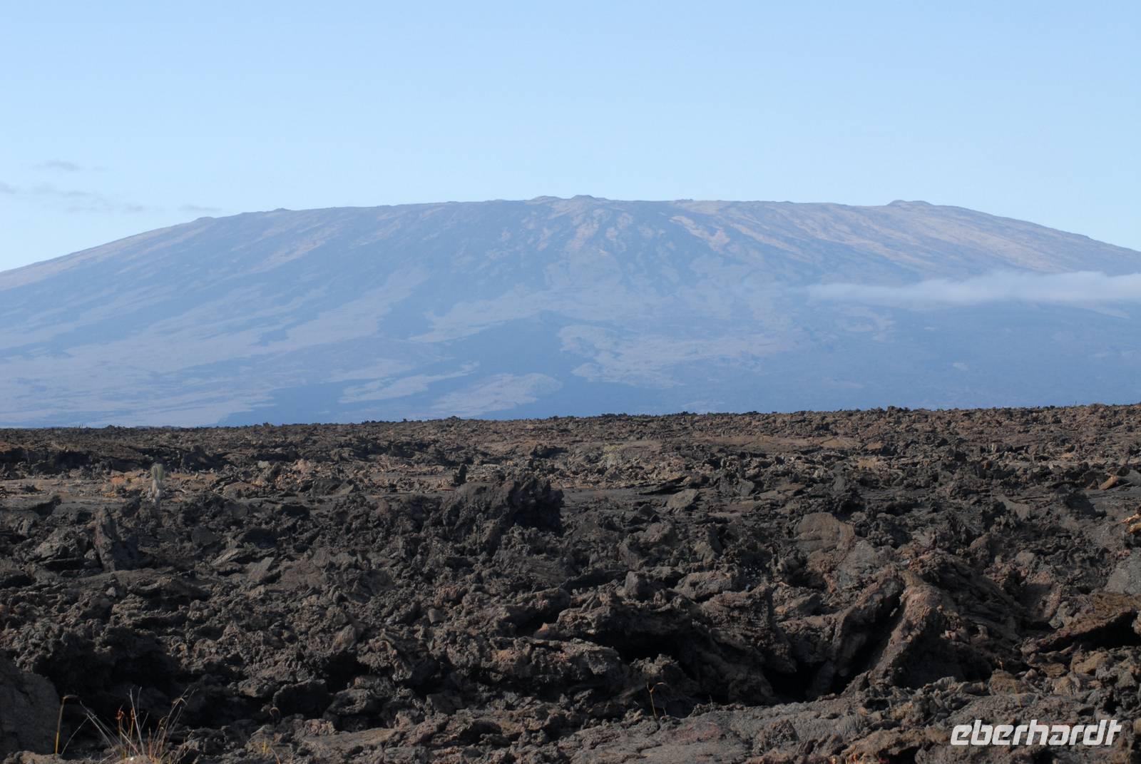 Noch vor dem Frühstück geht's mit Sonnenaufgang an Land. Wir laufen über die Lavafelder zu den Einbrüchen, in denen Wasser steht und daher Tiere und Pflanzen leben. Neben badenden Fregattvögeln und wieder Flamingos beschäftigen uns auch die Pflanzen auf dem Lavafeld. Im Einbruch an der Küsten finden wir dann noch mehrere Riffhaie und Meeresschildkröten. Als Abschluss fahren wir mit den Pangas zu den größten Meeresechsen von Galapagos, die hier fast 2 Meter lang werden. Danach umfahren wir die Südspitze von Isabela, haben aber unterwegs nur wenige Sichtungen von Meeresvögeln, also ein ruhiger Tag. Noch im Hellen sind wir im Hafen von Villamil.