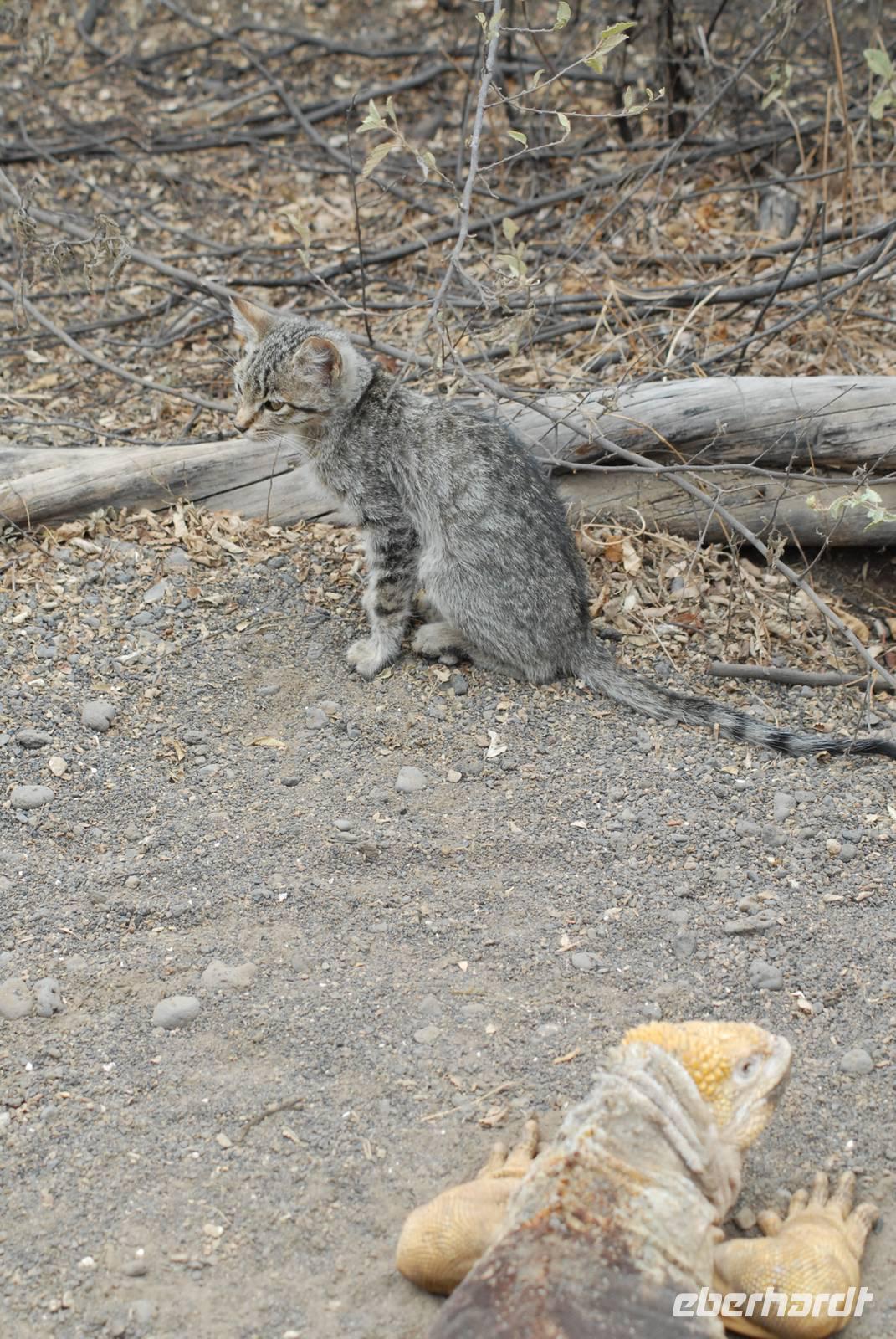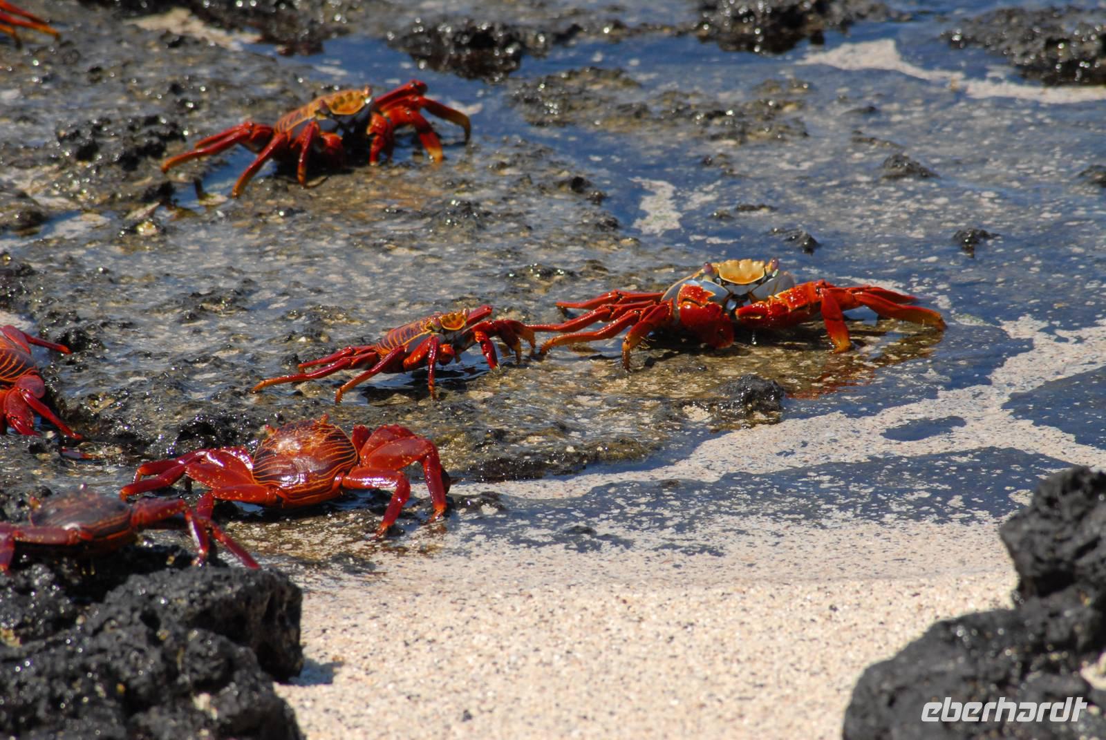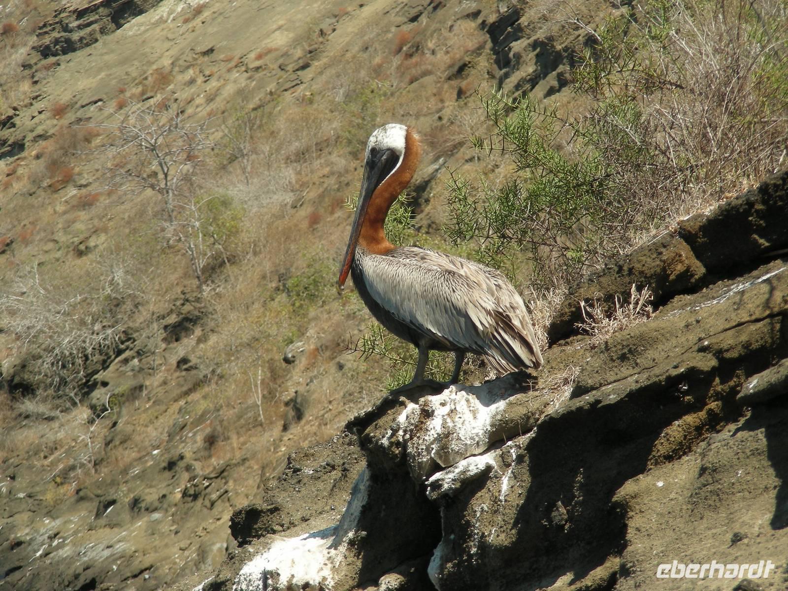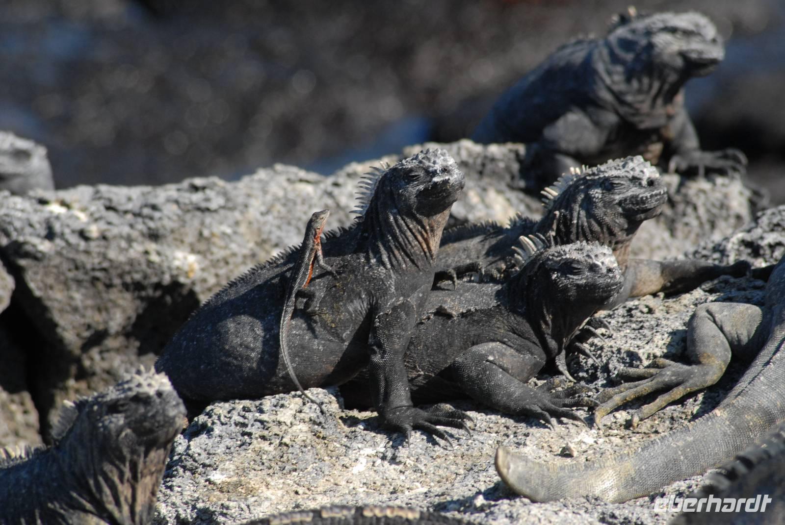 Früh am Nachmittag wird ausgebootet und wir suchen in der trockenen Vegetation von Cerro Dragon nach Landleguanen und finden auch etliche! Dazu kommen noch Finken, Spottdrosseln und in der Lagune erneut Flamingos und Limicolen - insgesamt ein sehr schöner Landgang. Wir sind gegen 16.30 uhr zurück an Bord und dann beginnt die lange Umfahrung von Isabela im Norden. Stop machen wir an der Insel Rabida, wo wir in Ruhe Abendessen können. Das ist auch nötig, denn der Seegang hat doch einige sehr beschäftigt.