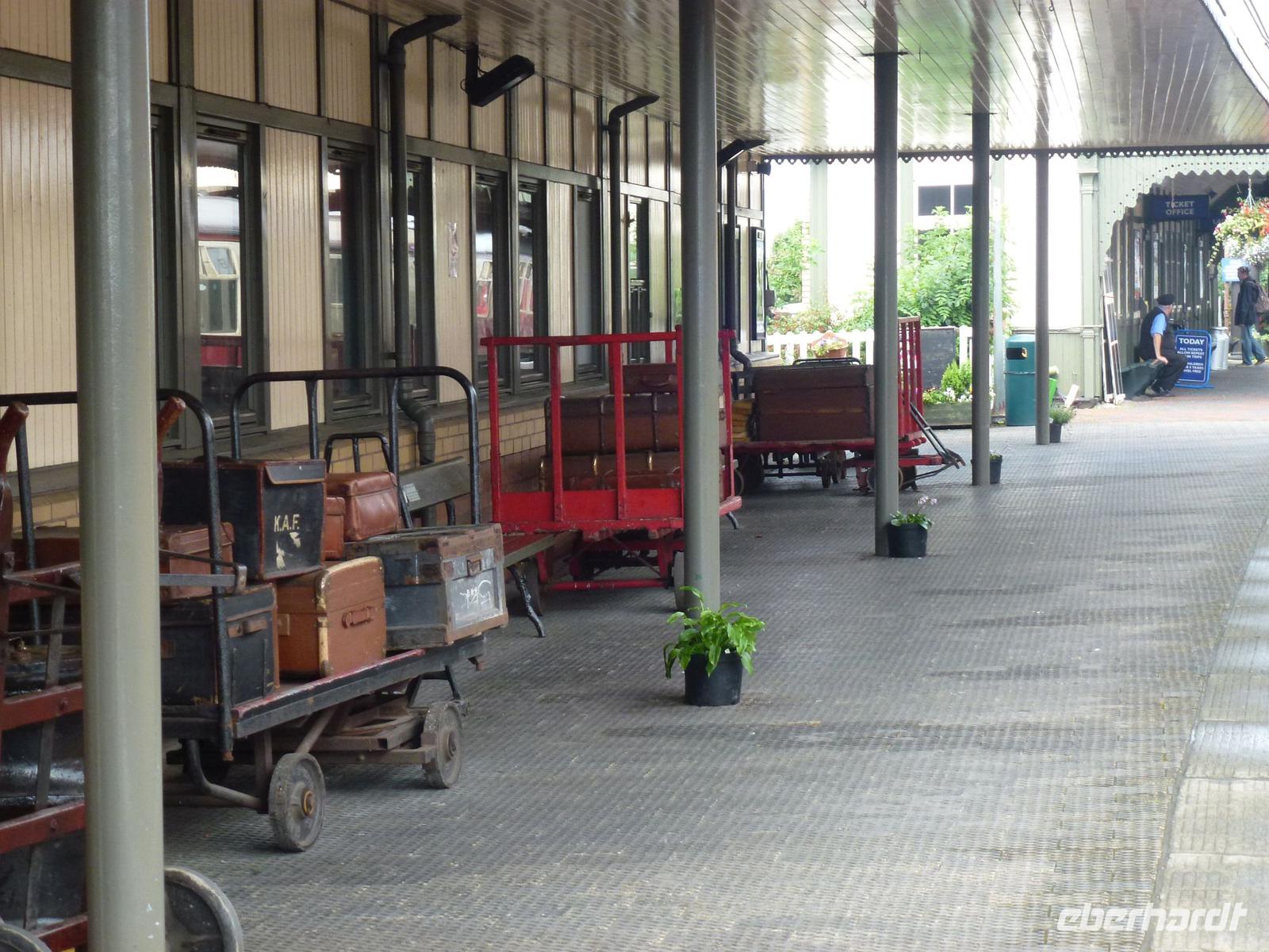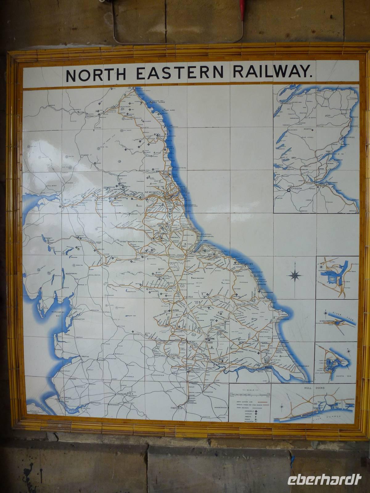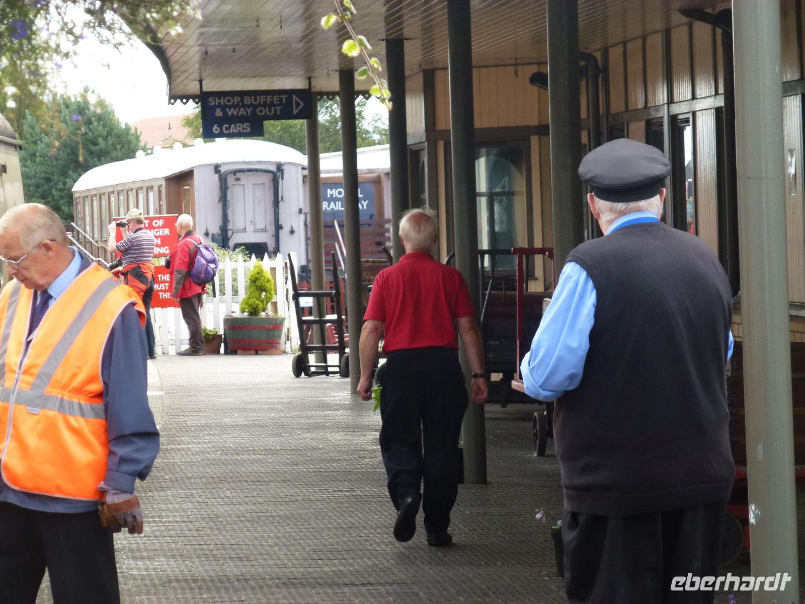 Eboracum, genannt auch York. Dort traf ich um 10:15 Uhr mit meiner Gruppe zusammen. Das erste Tagesziel, York erobern! Wenn die Römer das geschafft haben, werden wir das ganz bestimmt. Nach einer kleinen Geschichtsstunde am York Minster, nicht Münster, obwohl das die Partnerstadt von York ist, konnte sich jeder selber in der Stadt umschauen. Zum Glück konnte dort keiner verloren gehen. Das hat die Stadtmauer verhindert. Gegen 12:00 Uhr machten wir uns auf dem Weg zum Bahnhof. Die Zeit des Wartens versüßte ich meiner Gruppe mit einer kleinen Aufgabe. In ganz York und natürlich auch im Bahnhof tauchte immer wieder eine weiße Rose auf. Jetzt durfte die Gruppe rausfinden, was es damit auf sich hatte. Während man noch darüber nachdachte, fuhr der Scarborough Spa Express ein. Ein Bahnmitarbeiter hatte mir noch vorher gesagt, man könne ihn nicht überhören!. Und so war es dann auch. Hier gab es nicht den Spruch „Alle man einsteigen", sondern einen nicht zu überhörenden Pfiff. Und um 13:03 Uhr ging unsere erste Eisenbahnfahrt bei dieser Reise los. Die Fahrt dauerte knapp über eine Stunde. Und es ging vorbei, an schönen alten Bahnhöfen, die zum Teil jetzt Wohnhäuser sind, aber auch an einer alten Abtei-Ruine, einer alten Drehscheibe für Züge und an einem Privatbahnhof der zu einem herrschaftlichen Anwesen gehört. Und schon fuhren wir in Scarborough ein. Hier durfte sich jeder selber die Zeit vertreiben. Einige zog es an die Strandpromenade und die Stadt, andere machten sich auf zum Castle, was direkt über der Stadt trohnte. Aber wenn man einmal diese Anhöhe hinter sich gebracht hatte, hatte man einen fantastischen Blick auf die Umgebung und aufs Meer. Was es aber dort noch gab, eine Bergtram. Diese war schon richtig versteckt und die fuhr keine 150m weit. Die Fahrt dauerte gerade einmal um eine Minute und verband den Strand mit der Stadt. Noch mit echten Holzsitzen. Da kann man wahrhaftig von der „Holzklasse" sprechen. Um 16:30 Uhr trafen dann auch nach und nach meine Schäfchen am Bahnhof wieder ein, um sich auf die Rückfahrt vorzubereiten. Ja richtig gelesen: "Schäfchen". Dieses Wort sollte noch sehr oft fallen. Um 16:55 Uhr ging es dann wieder mit der Dampflok zurück nach York. Kaum in York angekommen, kam auch unser Bus und wir machten uns auf dem Weg zum Hotel. Dieses lag idyllisch ausserhalb von York. Nach dem Abendessen und angeregten Gesprächen wurde es langsam still im Hotel.