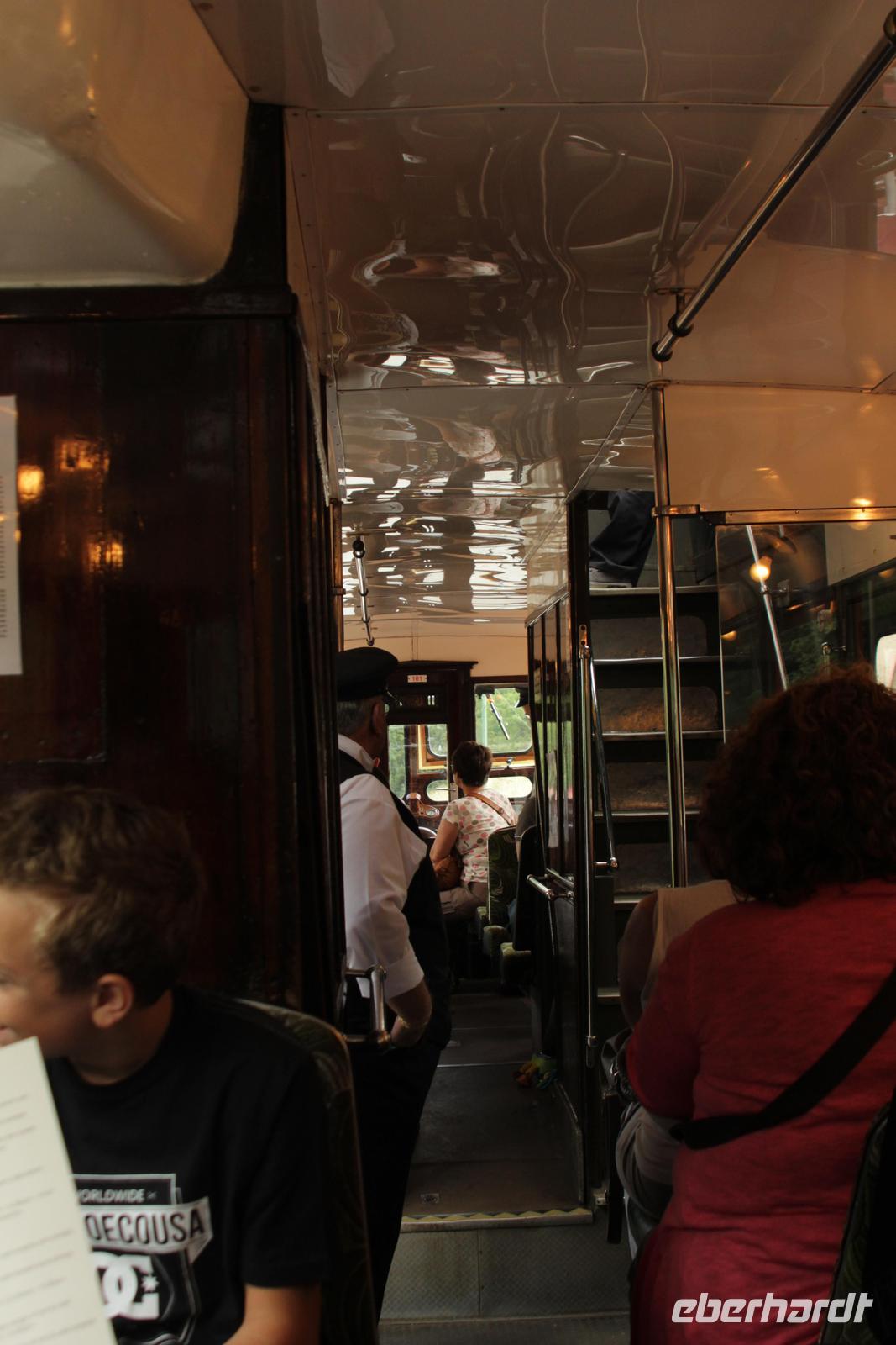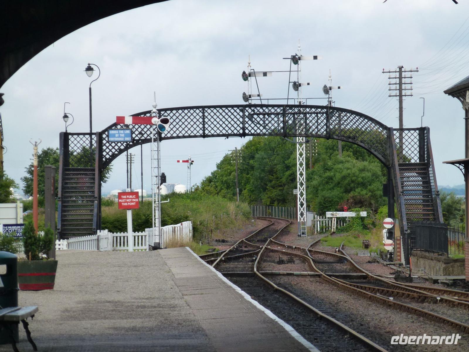 Sommer, Sonne, Sonnenschein... nein nicht ganz... unser Tag fing zwar mit einer kleinen Wolkendecke an, aber diese sollte sich in kürzester Zeit verflüchtigen und die Sonne unseren weiteren Tag begleiten. Nach einem reichhaltigen Frühstück, machten wir uns auf den Weg nach Pickering um den nächsten Dampfzug auf seine Tauglichkeit hin zu testen. Diesmal ging es mit der North Yorkshire Moors Railway Richtung Whitby. Vorbei an Landschaft und vielen kleinen Bahnhöfen im viktorianischen Stil. Die Fahrt dauerte auch hier etwas über eine Stunde. In dieser Zeit gab es für alle einen Crashkurs in Sachen Eisenbahngeschichte. Ist schon erstaunlich wann das eigentlich angefangen hat. Bereits bei den Griechen. In Whitby angekommen, ging es zurück nach York, um uns das National Railway Museum anzuschauen. Nur leider sollte an diesem Tag nicht alles so klappen wie geplant. Einige Kilometer vor York ereignetet sich ein Unfall, genau auf der Straße die wir befuhren. Und wir kamen nicht wie geplant um 12:30 Uhr an, sondern erst um 14:00 Uhr an. Dies bedeutete nur eine Stunde Museum da wir noch einige Kilometer bis zum nächsten Ziel hatten, und das lag schon weit oben in Schottland. Aber die Zeit des Staus nutzten wir um Mittag zu machen. Die Bordküche wurde angestellt und wir verwandelten die Straße in einen kleinen Imbiss. Trotz der kurzen Zeit im Museum, konnte man doch die herrliche Pracht der alten Dampfloks sehen. Der Privatwagen von Queen Viktoria. Die bis auf Hochglanz polierten Teile einer Dampflok. Die Monsterzüge aus China und die Entwicklung der Eisenbahn. Nach dieser Reise durch die Bahngeschichte machten wir uns auf Richtung Norden, und verließen somit die flachen Ebenen Großbritanniens. Unsere Fahrt führte uns über Scotch Corner zu Carters Bar. Der Grenzübergang Schottland - England. Mit einen fantastischen Blick auf Schottland und England fuhren wir weiter Richtung Peebles, wo uns unser Hotel erwartete. Nach einem leckeren Abendessen zogen sich alle nach und nach auf ihre Zimmer zurück um für den nächsten Tag Kraft zu sammeln.