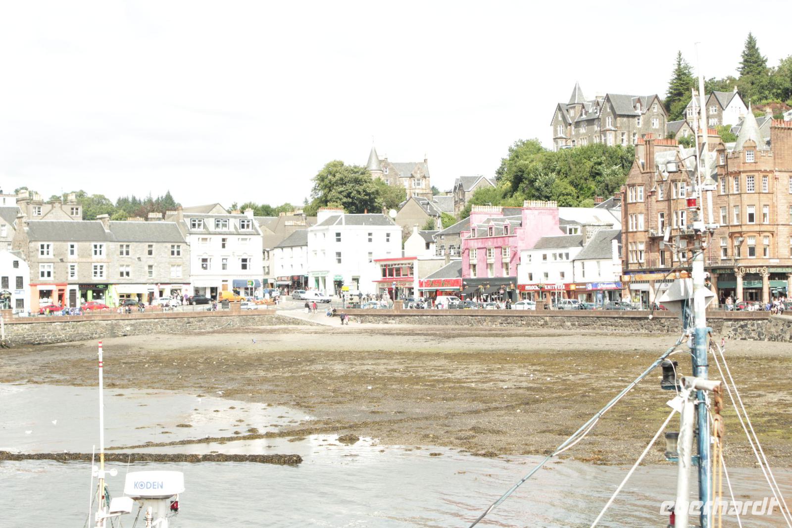 Unsere Gruppe wurde in zwei Führungen eingeteilt. Bei der ersten Gruppe hatte man eine deutschsprachige Führerin und bei der zweiten Gruppe übernahm ich den Part des dolmetschen. Nach der sehr interessanten Führung in einer der ältesten Destillen Schottlands, musste natürlich auch das „uisage beatha" (Lebenswasser) probiert werden. Hier wurde uns noch einmal der Unterschied zwischen einen Whisky und einen „Breakfast-Whisky" erklärt. Anschließend ging es ins Hotel. Die restliche Zeit bis zum Abendessen wurde genutzt um sich noch einmal Oban, McCaig's Tower, die einheimischen Geschäfte oder die Ruinen des Dunollie Castles anzuschauen. Oder einfach nur an der Strandpromenade entlang zu wandeln. Nach einem sehr leckeren Abendessen traf man sich anschließend noch an der Hotelbar um den Abend ausklingen zu lassen.