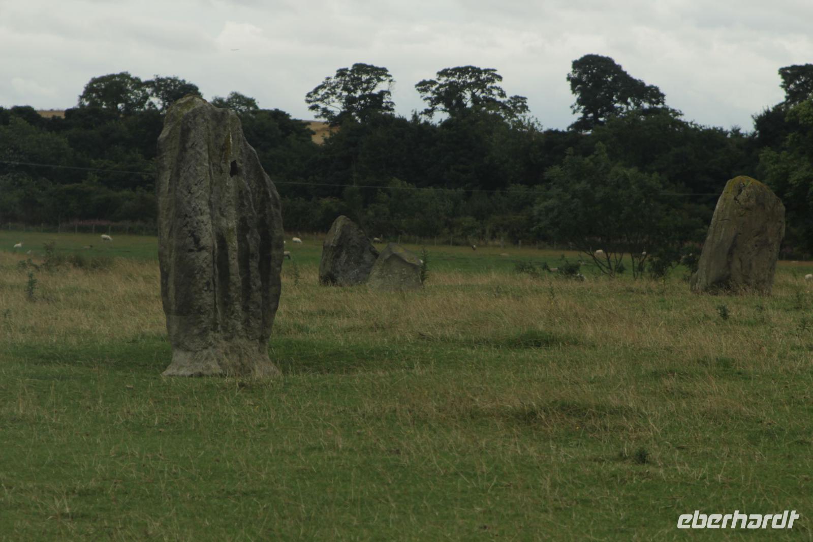 Das Wetter war diesmal typisch schottisch. Ein bisschen Regen und Sonnenschein. Nach unserem schottischen Frühstück, machten wir uns erneut auf den Weg, um mit einer Dampfbahn zu fahren. Diesmal war es die The Bo'ness & Kinneil Railway. Um 10:45 Uhr vernahmen wir das schon sehr bekannte pfeifen des Schaffners. Die Fahrt bis nach Manuel und zurück war zwar nicht lang, aber lustig. Was richtig toll war, wir haben diese alten Fahrkarten aus Pappe bekommen, damit diese dann auch stilecht vom Schaffner gelocht werden konnten. Anschließend war dann noch das gleich am Bahnhof liegende Museum zu begutachten. Dort konnte man auch wieder super schön restaurierte Dampfzüge, aber auch Arbeitszüge und alles rund um einen Bahnhof begutachten. Nach der Zeit im Museum ging es weiter Richtung ...? Keiner der Gäste wusste wo wir heute noch so alles hin fahren, ausser Lutz, unserem Coachdriver und ich. Linlithgow Castle ist die Geburtsstätte von Maria Stuart, Queen of Scots. Nicht nur das, bereits im 11 Jhd. stand dort eine Residenz die dann von David I, zum Palast umgebaut wurden ist. Und alle schottischen Könige nach ihm, immer wieder neue Bauten zugefügt haben. Leider wurde der Palast im 18. Jhd. von einem Feuer zerstört und nie wieder aufgebaut. Aber trotzdem sehr schön anzuschauen, da man die Treppenaufgänge benutzen kann, und somit viele Räume, die zwar kein Dach und keine Möbel mehr haben, anschauen konnte Nach dieser Reise durch die Zeit, machten wir uns auf, noch mehr zu bestaunen. Unser nächstes Ziel waren die Firth of Forth Bridges. Erst im Jahre 1964 wurde die Firth Road Bridge eröffnet. Zuvor gab es einen Fährbetrieb der North Queensferry mit South Queensferry verbunden hat, und das sage und schreibe 900 Jahre! Die Firth Railroad Bridge gilt nicht umsonst als 8. Weltwunder und wurde im Jahre 1890 eingeweiht. Nach tollen Fotoaufnahmen, fuhren wir auch über die Firth Road Bridge um durch Dunfermline zu fahren. Wo nicht nur Andrew Carnegie geboren wurde (Ja genau! der Namensgeber der Carnegie-Hall in NYC), sondern wo neben 20 Königen und Königinnen der wohl bekannteste unter ihnen beerdigt ist: KING ROBERT THE BRUCE! Der das Werk von William Wallace weiter geführt und die Engländer aus Schottland vertrieben hat. Und dann gab es auf unseren Weg zum nächsten Ziel eine kleine Sensation. Denn wer meint nur auf den Inseln und im Norden finden sich noch Steinkreise, der irrt. Meine Schäfchen können dies bestätigen.